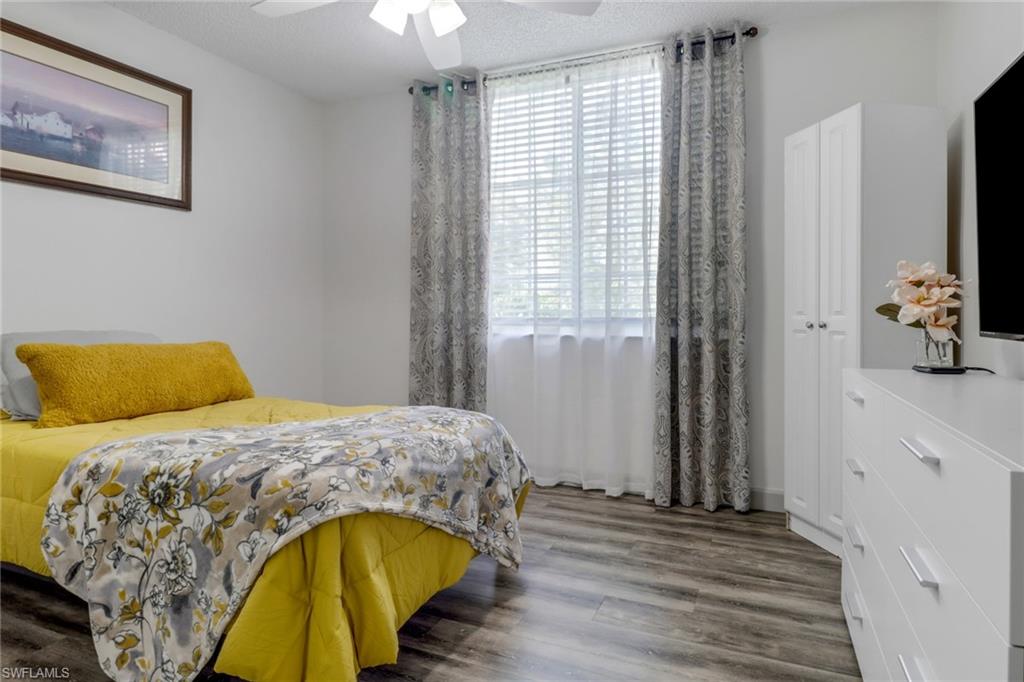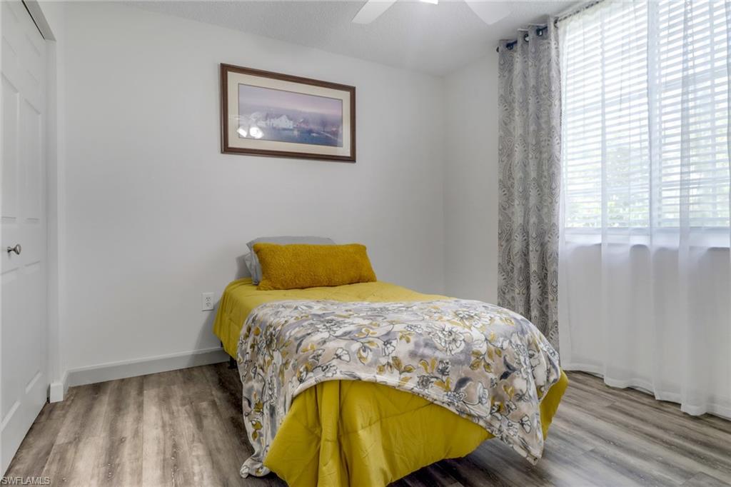 Beautifully maintained first-floor end unit overlooking serene green space in the gated Wildwood Lakes community. Enjoy privacy and tranquility while being just 10 minutes from Naples’ renowned Gulf beaches, 5th Avenue, and Naples Pier. For family fun and activities, Great Wolf Lodge and Paradise Sports Complex are only 5 miles away. This meticulously cared-for 2-bedroom, 1-bathroom condo is perfect for families, first-time buyers, or investors seeking strong rental potential. The unit features newer A/C and water heater (2020), waterproof vinyl plank flooring throughout, and updated stainless steel appliances—including a brand-new washer (July 2025) and a recent dishwasher (2024). A covered carport and private lanai overlooking the peaceful green space enhance the living experience, while an alarm system provides added security. Furnishings are negotiable. Residents of Wildwood Lakes enjoy resort-style amenities such as a recently renovated pool and spa, clubhouse, tennis and pickleball courts, fitness center, indoor racquetball, billiards, a dog park, and a BBQ area, all with low HOA fees. The community is pet-friendly and offers flexible leasing options, making this condo a versatile opportunity for full-time living, seasonal use, or investment. This one’s a rare find — clean, updated, and ready for the next lucky owner. Don’t wait, make it yours today!