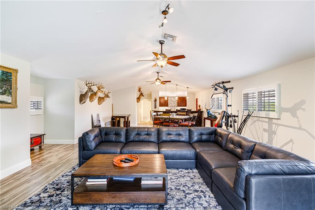 Rare oversized 4 plus car garage, Could fit 8 Mid sized cars - 60 x 30 feet deep! Huge Circular Driveway and wide driveway. RARE Metal roof 50 year life span, No flood/ water damage from Ian, property is high and dry. Welcome to Riverbrooke at West Bay Club, where this exceptional custom-built estate blends refined luxury with a true Southwest Florida lifestyle. Designed for both grand-scale entertaining and everyday comfort, this home offers 4,382 square feet of thoughtfully designed air-conditioned living space, paired with incredible outdoor areas that make the most of our year-round sunshine. The open-concept main level features four spacious bedrooms plus a dedicated den/office with built-in desk and cabinetry—perfect for working from home or managing household business. At the heart of the home is a stunning double-island kitchen with a 6-burner gas cooktop, double ovens, granite countertops, and a huge butler’s pantry complete with a library ladder. Whether you’re preparing an intimate dinner or hosting a crowd, this kitchen is as functional as it is beautiful. Upstairs, a versatile loft with a half bath, wet bar, beverage refrigerator, and dishwasher provides an ideal space for game nights, movie marathons, or visiting guests. Step through sliding glass doors to your private resort-style lanai, where outdoor living takes center stage. Here, a custom, gas heated infinity-edge pool and spa invite you to relax against the backdrop of a sparkling lake, fountain, and nature preserve. Multiple covered and open-air seating areas, a fully equipped outdoor kitchen, and a west-facing view make this the perfect setting for sunset cocktails, alfresco dinners, or simply unwinding after a day on the golf course or at the beach. Peace of mind comes built in, with hurricane impact windows and doors, Kevlar screens, electric shutters, an emergency generator, a newer roof (2023), a newer pool cage (2024), and a brand-new well installed in 2025 for irrigation savings—while still having city water service for the home. The oversized 4-car garage is the perfect finishing touch, featuring a heavy epoxy coating and two 30-foot-deep bays ideal for boat or trailer storage, a workshop, or extra storage space for all your Florida toys. Living in West Bay Club means enjoying world-class amenities: a private Beach Club on the Gulf of Mexico with full food and beverage service, championship golf, Har-Tru tennis courts, pickleball, a boat ramp with direct Gulf access, a resort-style pool and spa, a state-of-the-art fitness center, and a clubhouse with both fine and casual dining. Ideally situated east of US-41, you’re just minutes from Coconut Point, Miromar Outlets, Hertz Arena, and 20 minutes from Southwest Florida International Airport. This is more than a home—it’s an entertainer’s dream and a luxurious retreat, all in one of the most sought-after communities in Southwest Florida.