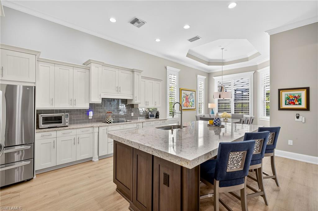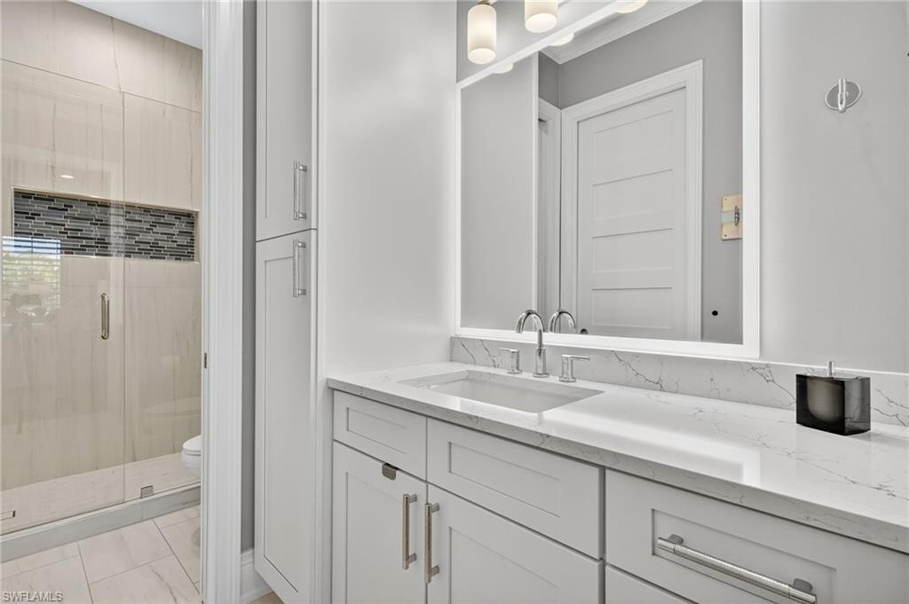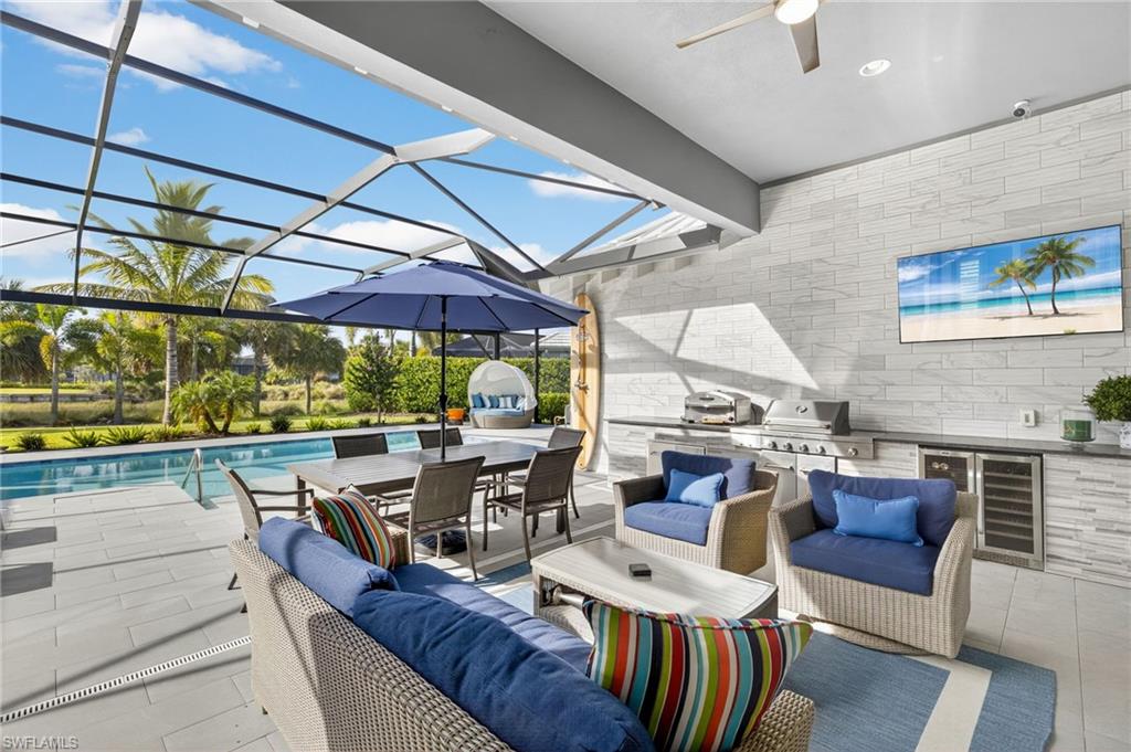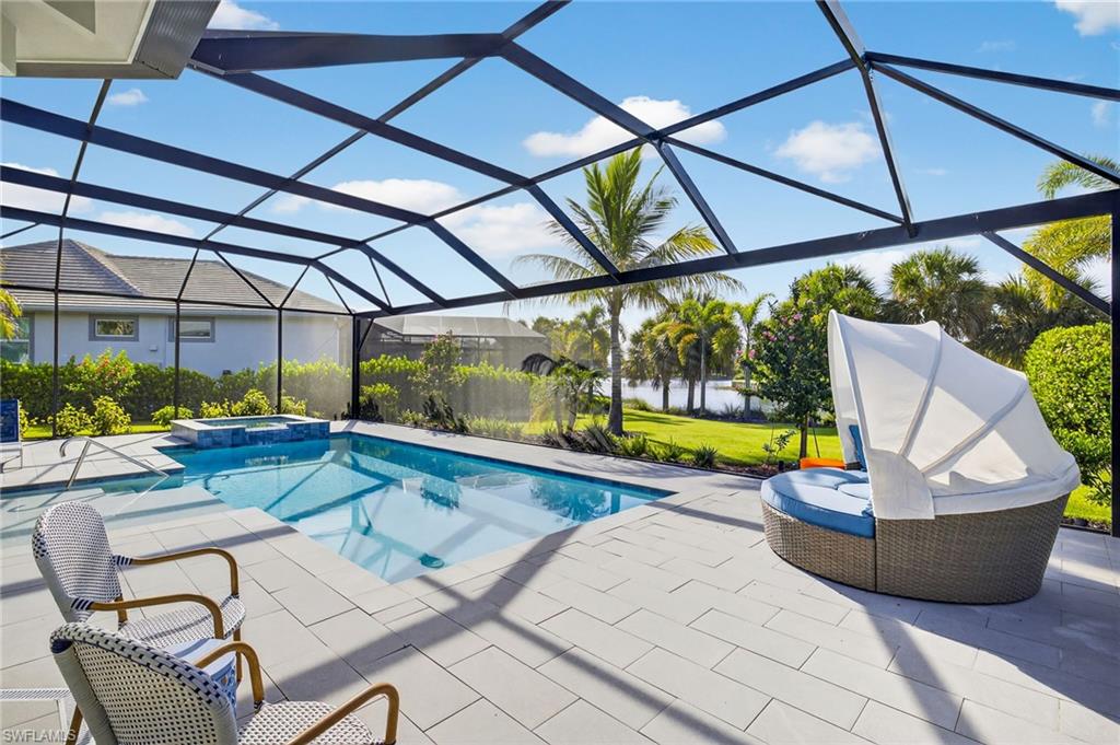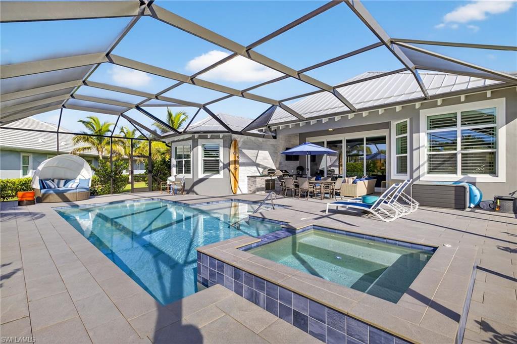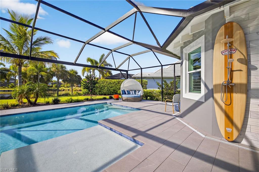 RARE OVERSIZED 1/2 ACRE LOT WITH DESIREABLE REAR SOUTHEASTERN EXPOSURE! This impeccable Minto built ‘Pimento’ home in The Isles of Collier Preserve is ideally situated on a premier, oversized, ½ acre pie shaped lot featuring desirable southeast rear exposure. This generous lot provides the option for the new owner to add onto the home, if desired! This beautifully customized property is a showcase of coastal luxury, thoughtful design, and modern convenience. The light-filled open-concept floor plan features luxury vinyl plank flooring, plantation shutters, custom lighting and fans, and soaring ceilings throughout. A chef-inspired kitchen boasts quartz countertops, soft-close shaker cabinetry with built-in spice racks, ‘Shelf Genie’ pull-out drawers, a new refrigerator & garbage disposal (2023), and Bosch dishwasher (2025). The living area includes a custom built-in entertainment center with electric fireplace, while motorized privacy shades add function and comfort. Both bathrooms were fully remodeled in 2025, offering spa-like finishes including frameless glass showers, custom vanities with storage, and custom storage niches. Upgrades in the 3-car garage include professionally installed overhead motorized storage, epoxy floors, custom built-ins, slat walls, epoxy flooring and an A/C, mini-split. Additional upgrades include a new hot water heater (2024), and Electrolux washer and dryer on pedestals (2023). Custom closets are found throughout the home—including dual walk-ins in the primary suite. Enjoy true indoor-outdoor living on the expansive lanai featuring a brand-new saltwater pool and spa, travertine pavers, custom outdoor kitchen featuring a gas grill, beverage fridge, dramatic tile backsplash, and outdoor shower (2023) —perfect for entertaining or relaxing in privacy. Professionally installed landscape & lighting includes 30 mature palm trees, calusia privacy hedging, custom up-lighting, and refreshed garden beds front and back (2025). Additional peace of mind comes with a metal roof, impact-resistant windows and doors, retractable screen front entry, and a freshly painted interior and exterior. Isles of Collier Preserve, residents enjoy resort-style amenities including a clubhouse, fitness center, resort and lap pools, 6 tennis courts, 14 pickleball courts, kayaking, scenic nature trails, and the waterfront Overlook Bar & Grill. Just minutes to downtown Naples, 5th Avenue, and white sand beaches. This move-in ready home is a rare opportunity to enjoy luxury living in one of Naples' most desirable communities.