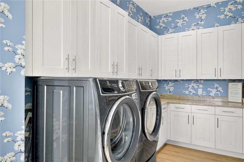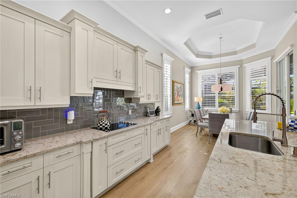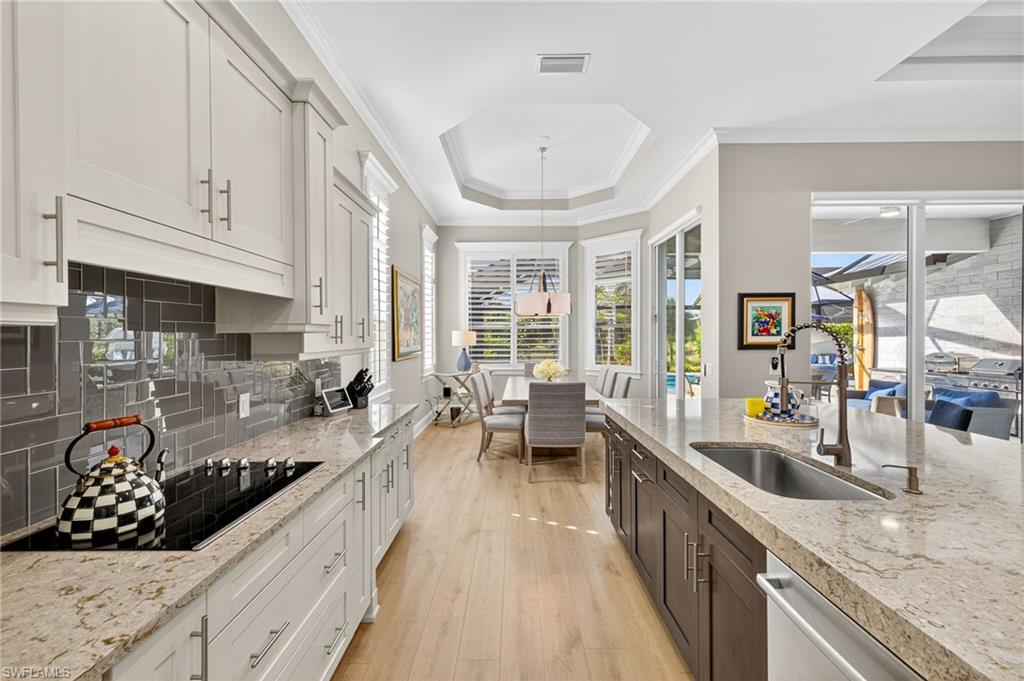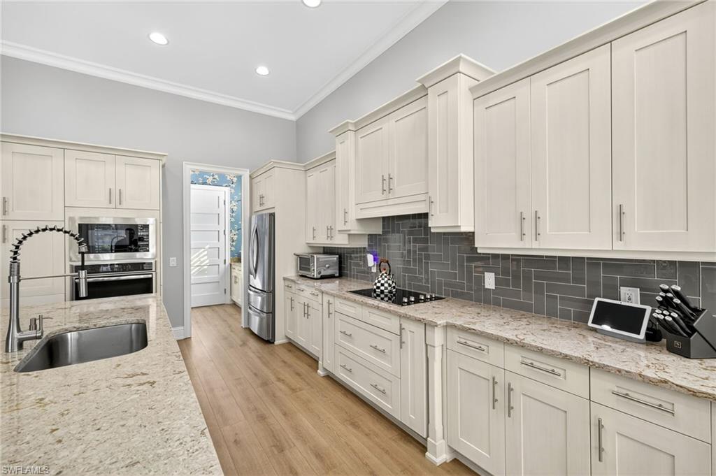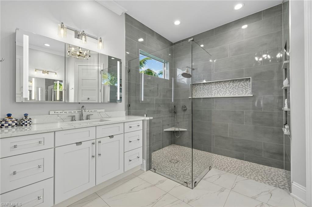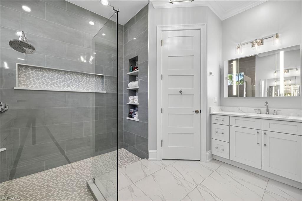 RARE OVERSIZED 1/2 ACRE LOT WITH DESIREABLE REAR SOUTHEASTERN EXPOSURE! This impeccable Minto built ‘Pimento’ home in The Isles of Collier Preserve is ideally situated on a premier, oversized, ½ acre pie shaped lot featuring desirable southeast rear exposure. This generous lot provides the option for the new owner to add onto the home, if desired! This beautifully customized property is a showcase of coastal luxury, thoughtful design, and modern convenience. The light-filled open-concept floor plan features luxury vinyl plank flooring, plantation shutters, custom lighting and fans, and soaring ceilings throughout. A chef-inspired kitchen boasts quartz countertops, soft-close shaker cabinetry with built-in spice racks, ‘Shelf Genie’ pull-out drawers, a new refrigerator & garbage disposal (2023), and Bosch dishwasher (2025). The living area includes a custom built-in entertainment center with electric fireplace, while motorized privacy shades add function and comfort. Both bathrooms were fully remodeled in 2025, offering spa-like finishes including frameless glass showers, custom vanities with storage, and custom storage niches. Upgrades in the 3-car garage include professionally installed overhead motorized storage, epoxy floors, custom built-ins, slat walls, epoxy flooring and an A/C, mini-split. Additional upgrades include a new hot water heater (2024), and Electrolux washer and dryer on pedestals (2023). Custom closets are found throughout the home—including dual walk-ins in the primary suite. Enjoy true indoor-outdoor living on the expansive lanai featuring a brand-new saltwater pool and spa, travertine pavers, custom outdoor kitchen featuring a gas grill, beverage fridge, dramatic tile backsplash, and outdoor shower (2023) —perfect for entertaining or relaxing in privacy. Professionally installed landscape & lighting includes 30 mature palm trees, calusia privacy hedging, custom up-lighting, and refreshed garden beds front and back (2025). Additional peace of mind comes with a metal roof, impact-resistant windows and doors, retractable screen front entry, and a freshly painted interior and exterior. Isles of Collier Preserve, residents enjoy resort-style amenities including a clubhouse, fitness center, resort and lap pools, 6 tennis courts, 14 pickleball courts, kayaking, scenic nature trails, and the waterfront Overlook Bar & Grill. Just minutes to downtown Naples, 5th Avenue, and white sand beaches. This move-in ready home is a rare opportunity to enjoy luxury living in one of Naples' most desirable communities.