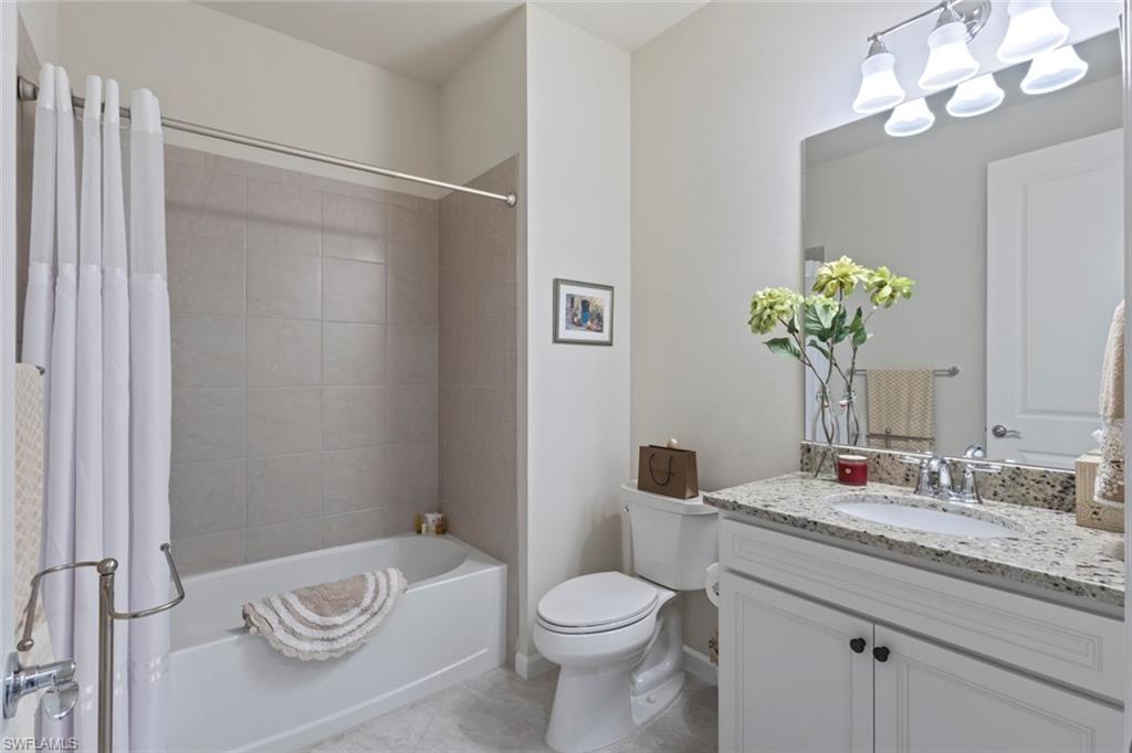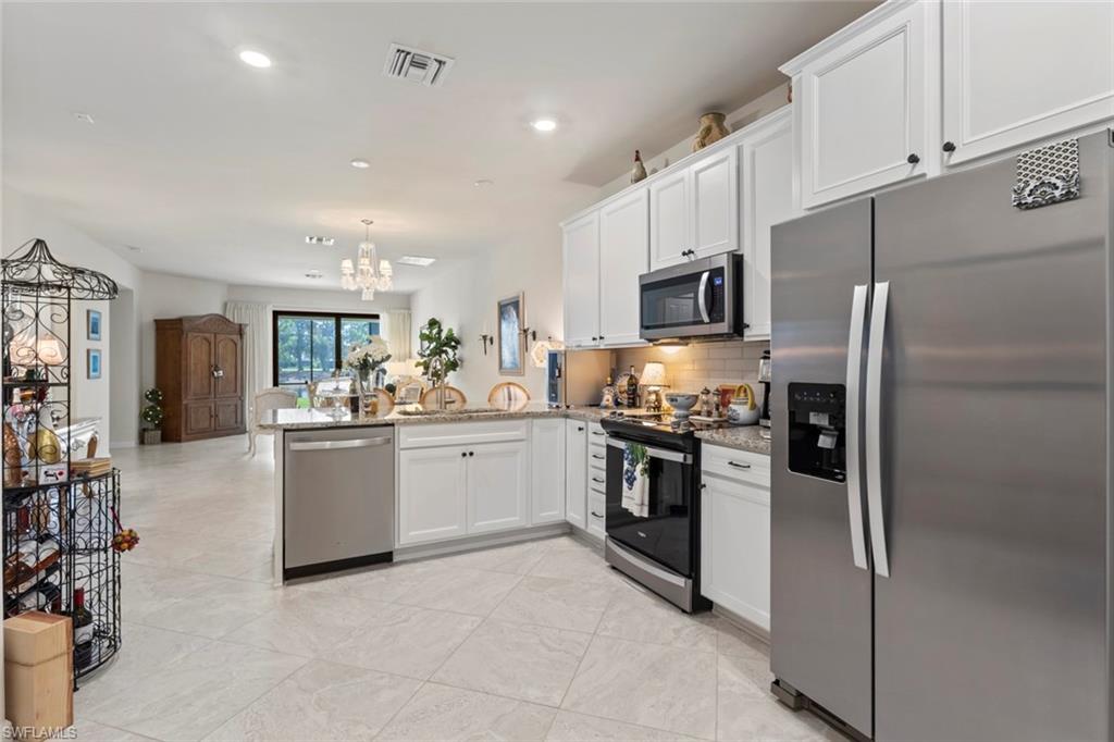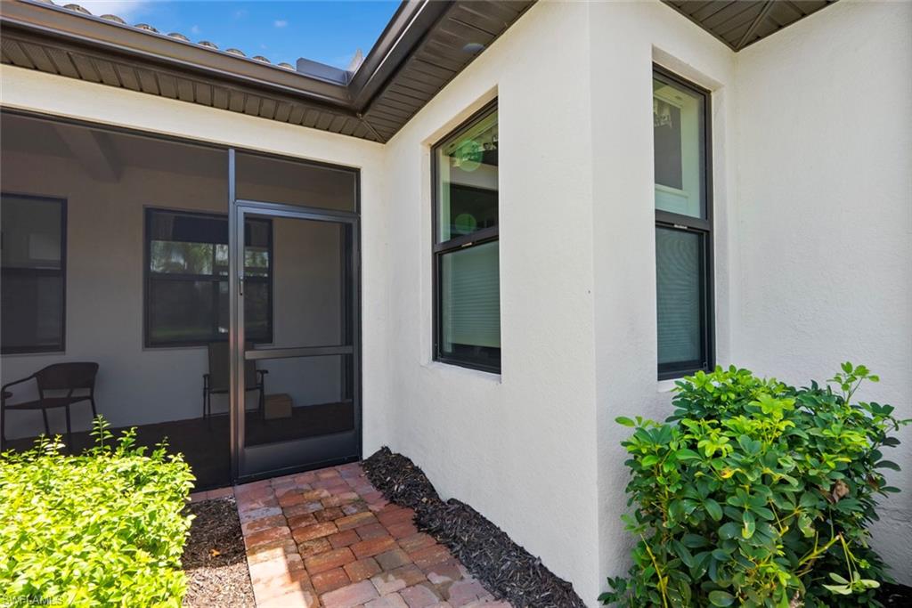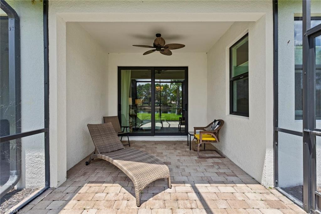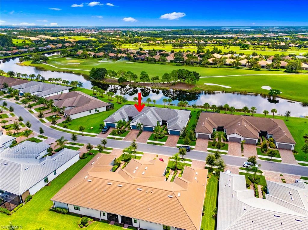 Welcome to your Florida dream home! Perfectly positioned on a PREMIUM LOT in the highly desirable 55+ Del Webb Naples community, this impeccably maintained SEAGROVE floor plan villa showcases breathtaking views of both the lake and the 2nd fairway of Panther Run Golf Course—all from the comfort of your EXTENDED SCREENED LANAI. This 2-bedroom plus den, 2-bath home is thoughtfully designed for comfort and style, featuring TILE FLOORING laid on the diagonal throughout the main living areas, CUSTOM WINDOW TREATMENTS, and a well-appointed kitchen with GRANITE COUNTERTOPS and UPGRADED CABINETRY. Ceiling fans and custom lighting create a warm, inviting ambiance throughout the home. The spacious PRIMARY SUITE is a serene retreat, complete with dual vanities, a walk-in shower enclosure, and generous closet space for added convenience. Experience peace of mind and reliable storm protection with IMPACT RESISTANT WINDOWS throughout the home. GOLF LOVERS — Panther Run Golf Club offers optional MEMBERSHIPS with premium golf experiences just steps from your backyard. As a proud resident of Del Webb Naples, you’ll enjoy WORLD-CLASS AMENITIES that rival luxury resorts: dine at the Rusty Putter Restaurant, soak in the RESORT-STYLE or LAP POOLS, break a sweat in the state-of-the-art FITNESS CENTER, and play your way through PICKLEBALL, TENNIS, bocce, billiards—even a top-tier GOLF SIMULATOR! Need groceries, church, or a bite to eat? Just hop in your golf cart and cruise into town—Publix and the heart of Ave Maria are just minutes away. This isn’t just a home—it’s a LIFESTYLE UPGRADE in one of Southwest Florida’s most vibrant 55+ communities. Don’t miss your chance to live where fun, fitness, and friendships flourish year-round!