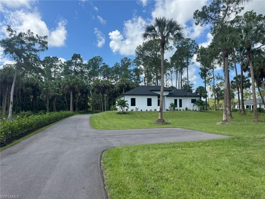 Amazing home built in a 2.5 acres lot, in the area of Golden Gate Estates, features 3 bedrooms + Den, 2.5 bath, & 2 car garage! Living area of 1,900 sq.ft and a grand total of 2,627 sq.ft. Upgrades include wood plank porcelain tile throughout, crown molding, quartz countertops, stainless steel appliances, and solid wood cabinets! The living room and master suite boast tray ceilings. Master wing features an oversized bedroom, 2 spacious Closets, double vanity, and glass door enclosed shower. The outside of this home will not disappoint either with a Summer Kitchen and a beautiful landscape, auto sprinkler system, and a large lanai. Impact resistant windows/doors! *Photos are from a previous same model home.