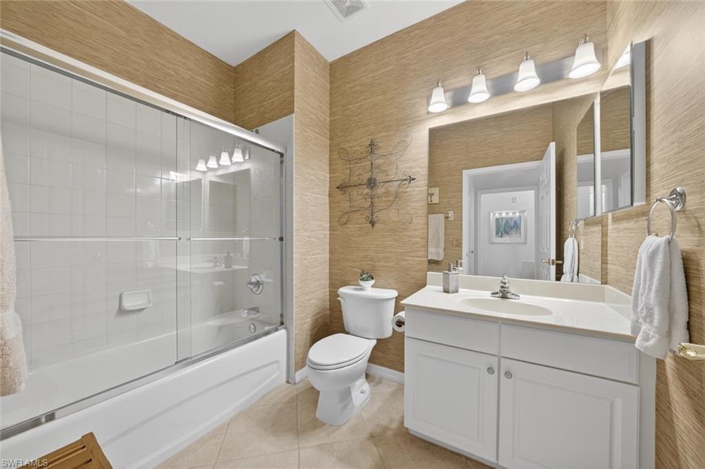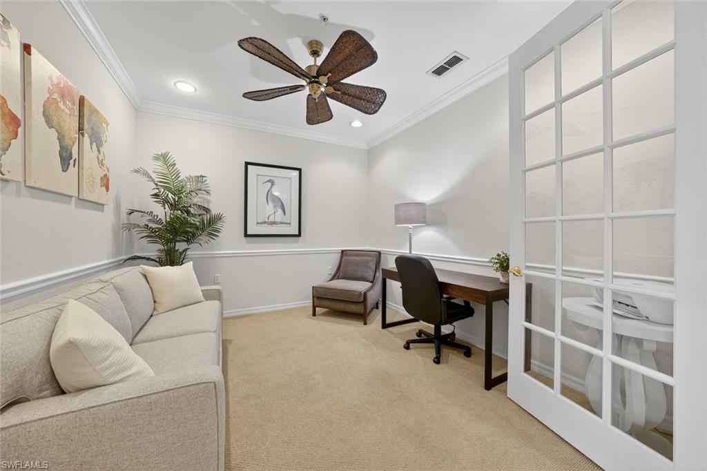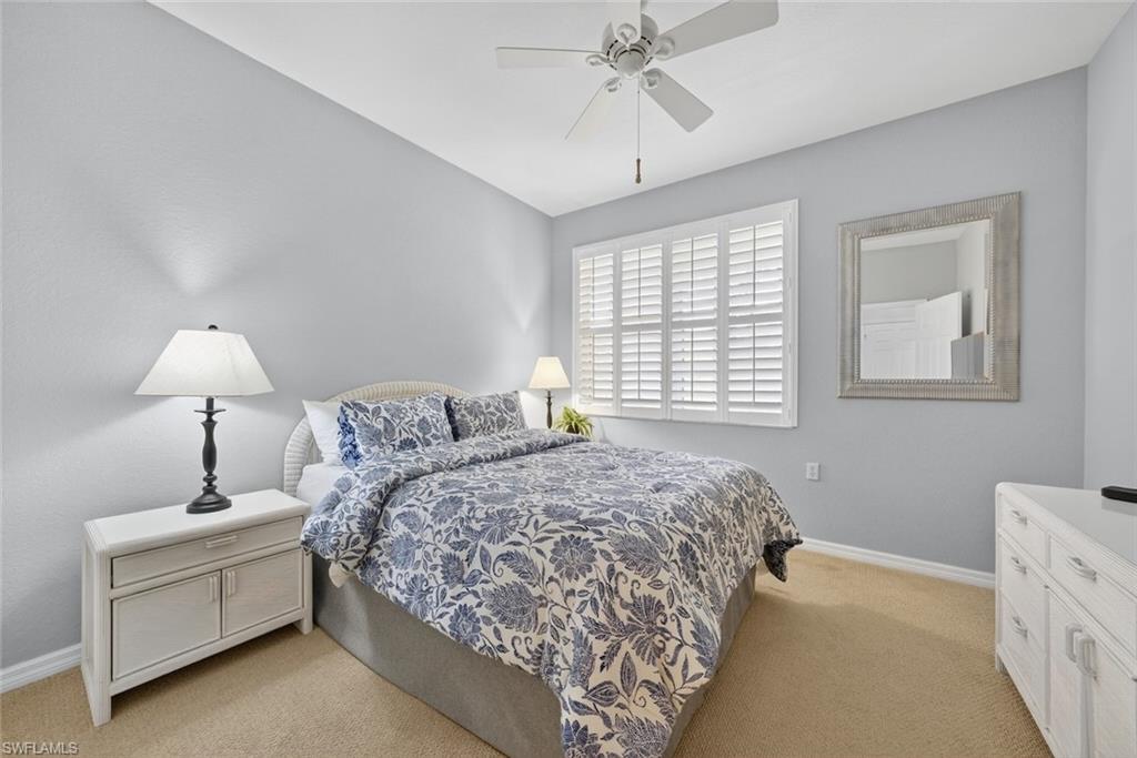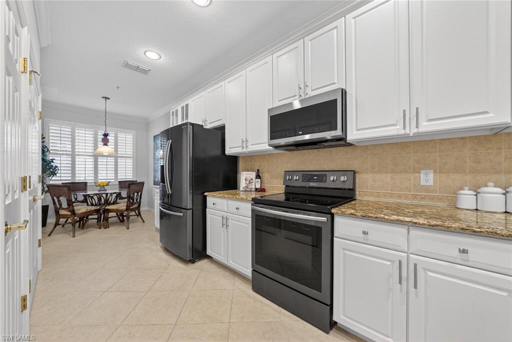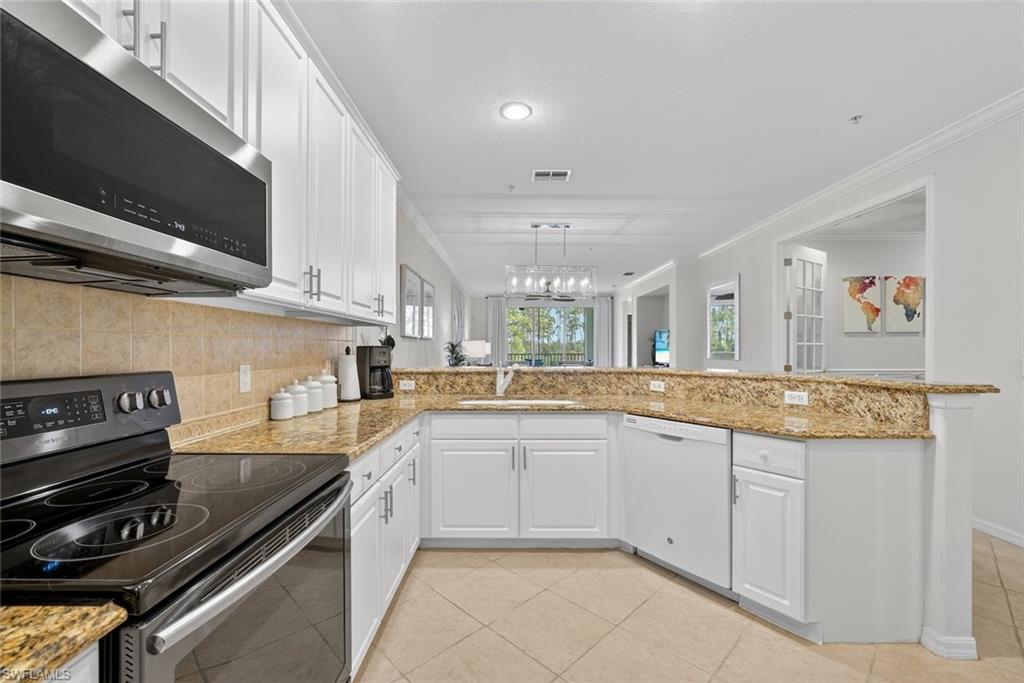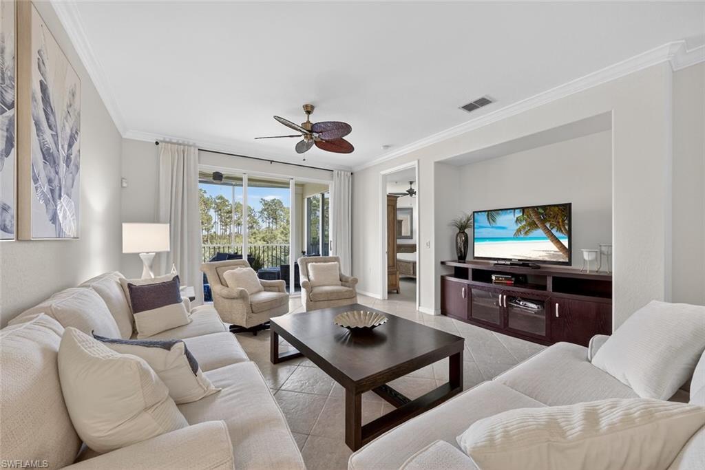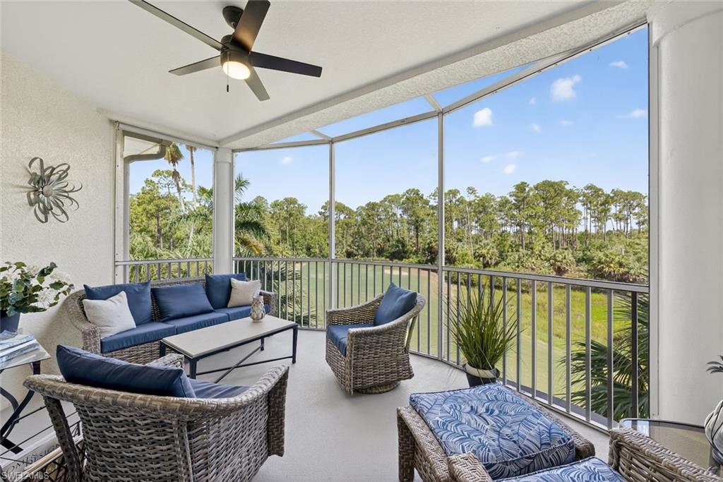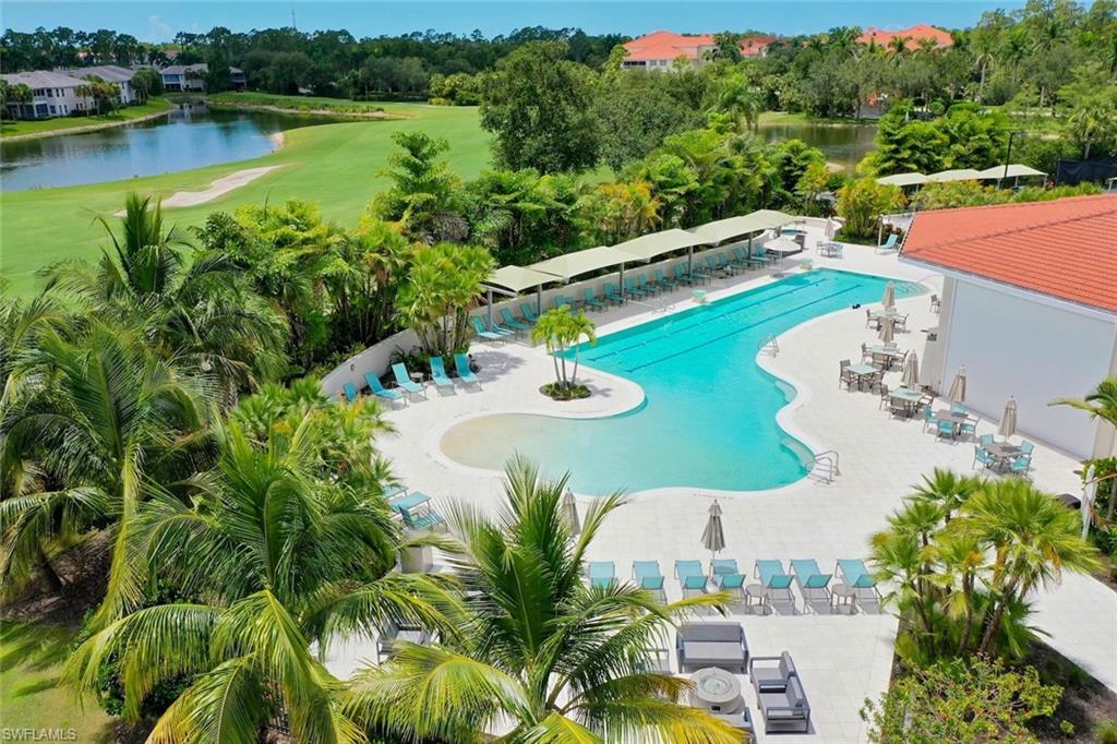 Live the Naples golf dream with IMMEDIATE MEMBERSHIP at Naples Lakes Country Club! The SPECIAL ASSESSEMENT IS PAID IN FULL AND SELLERS WILL PAY $13,000 TRANSFER FEE, offering you a seamless start to resort-style living. This beautifully maintained 2-bedroom plus den, 2-bath condo overlooks the 15th green of the Arnold Palmer Signature Golf Course, providing spectacular sunsets from your private lanai. Offered turnkey furnished, the home combines comfort and elegance with granite countertops, stainless steel appliances, and a pantry in the spacious kitchen—ideal for both casual nights in and entertaining. Plantation shutters, crown molding, and tile flooring in the main living areas add timeless charm, while a brand-new water heater (2025) provides peace of mind. The TWO CAR GARAGE offers plenty of storage, including space for you to OWN YOUR OWN GOLF CART, which you can drive directly onto the course with the purchase of a trail fee. Step outside to enjoy a host of world-class amenities. A newly completed pool and cabana bar create the perfect spot to unwind after a round of golf, while tennis courts, bocce ball, and a state-of-the-art fitness center keep you active. The vibrant clubhouse offers both formal and casual dining, along with an active social calendar designed to bring neighbors together. Best of all, this bundled golf community includes a full membership, so you can immediately take advantage of Naples Lakes’ exceptional lifestyle. Located just 8 miles from 5th Avenue South and the Gulf’s white-sand beaches, this home offers the perfect balance of relaxation, recreation, and convenience. Whether you’re a passionate golfer, social enthusiast, or simply seeking sunshine and tranquility, this residence delivers the very best of Naples living.