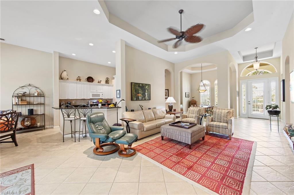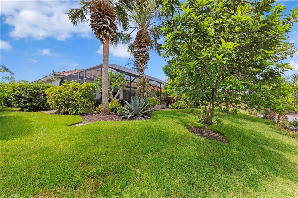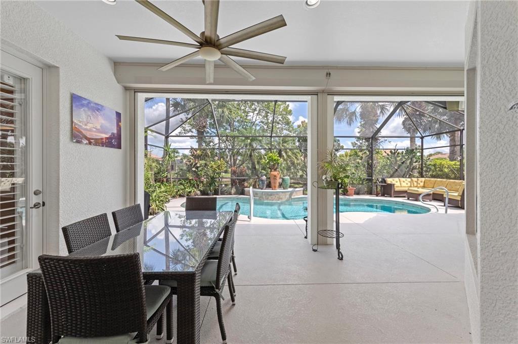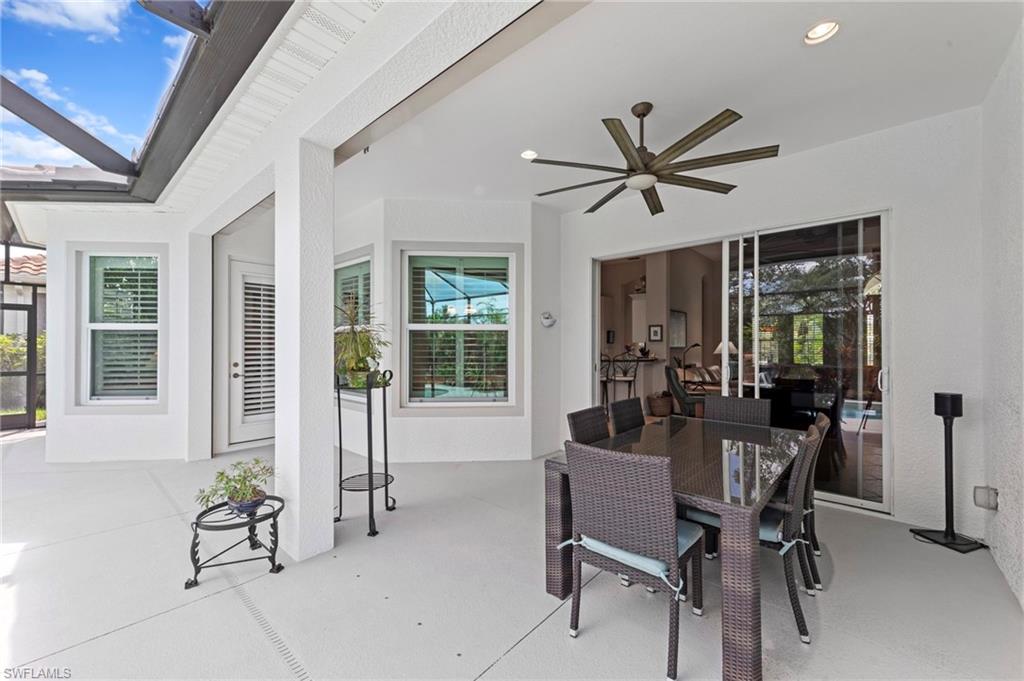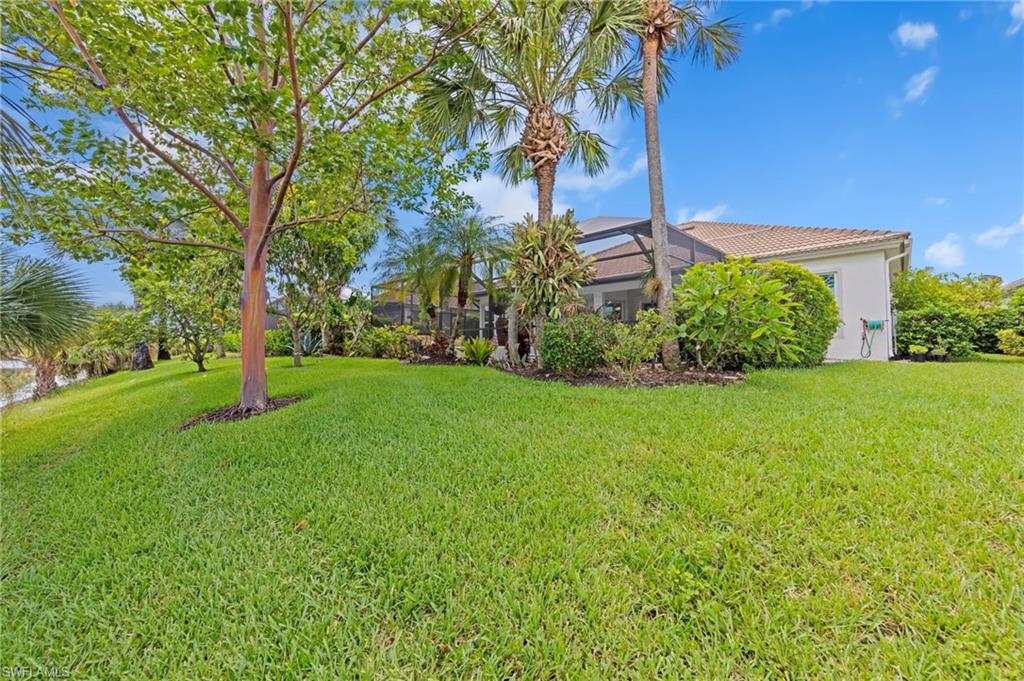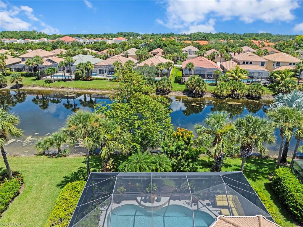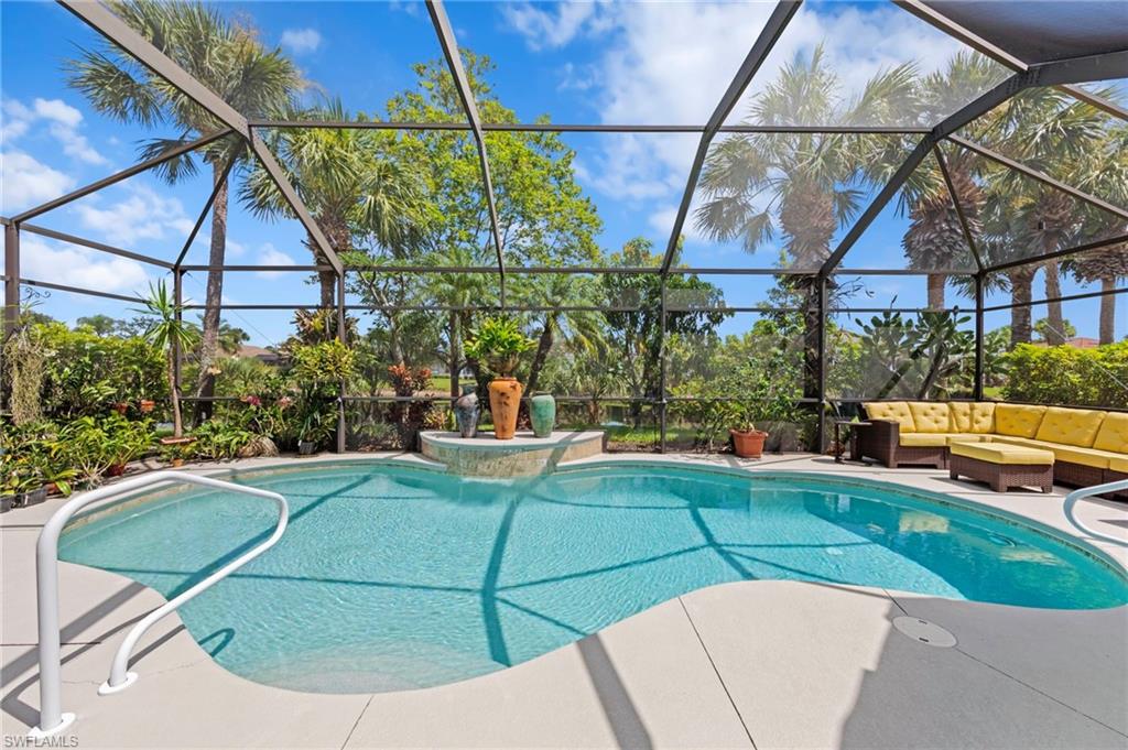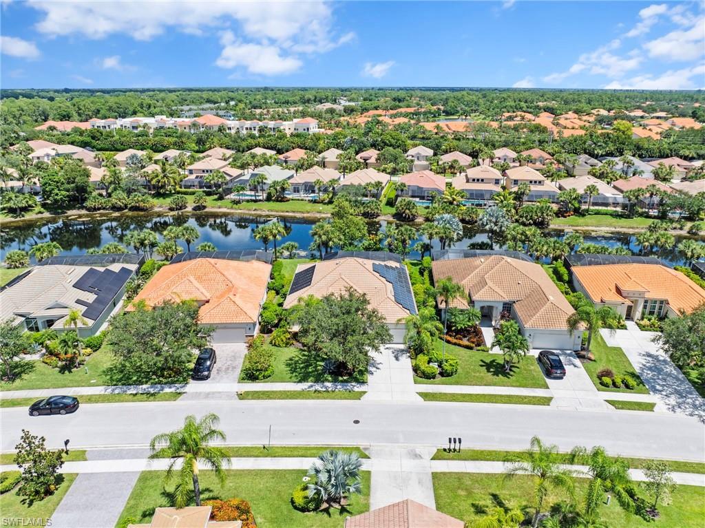 Introducing the remarkable Revere Model nestled in the Madison Park community, this exquisite residence boasts 3 spacious bedrooms, 3.5 baths, and an additional den, perfect for versatile living. The home showcases an expansive and luminous great room floor plan that invites abundant natural light, creating a warm and inviting atmosphere throughout. Among its many notable features, this property is equipped with a full home solar power system, impact-resistant windows, and elegant plantation shutters that add a touch of sophistication. The custom-designed primary closet offers ample storage, while smart home capabilities ensure modern convenience at your fingertips. Recent renovations include a newly updated pool cage and a freshly painted exterior, complemented by landscape lighting that highlights the stunning array of rare and exotic foliage surrounding the home. Inside, diagonal tile flooring flows seamlessly through the main living areas, while the bedrooms and den are adorned with beautiful hardwood floors, adding a touch of luxury. Unique architectural elements, such as arched doorways, decorative plant ledges, and soaring volume ceilings, contribute to the home's distinct character. The eat-in kitchen is a chef's delight, featuring granite countertops paired with white raised wood panel cabinetry, providing both functionality and style. The thoughtfully designed split-bedroom layout includes a convenient pool bath, ensuring privacy and comfort for guests. The expansive primary suite is a true retreat, complete with high-quality cabinetry, dual sinks in the master bath, a Jacuzzi bathtub, and a walk-in shower for a spa-like experience. Step outside to your private screened lanai, where you'll find a captivating pool set against a serene lake view, perfect for relaxation and entertaining. LOW HOA includes lawn care and up to one gig WIFI. Madison Park is ideally located, offering easy access to world-class dining, shopping, medical facilities, and the vibrant downtown Naples area, not to mention the famous white sugar sand beaches that Naples is renowned for. This exquisite property truly embodies the perfect blend of luxury and convenience, making it a must-see for discerning buyers.