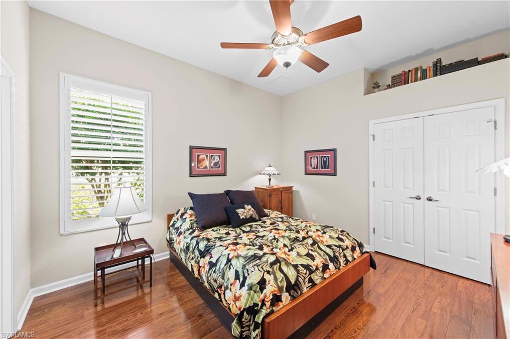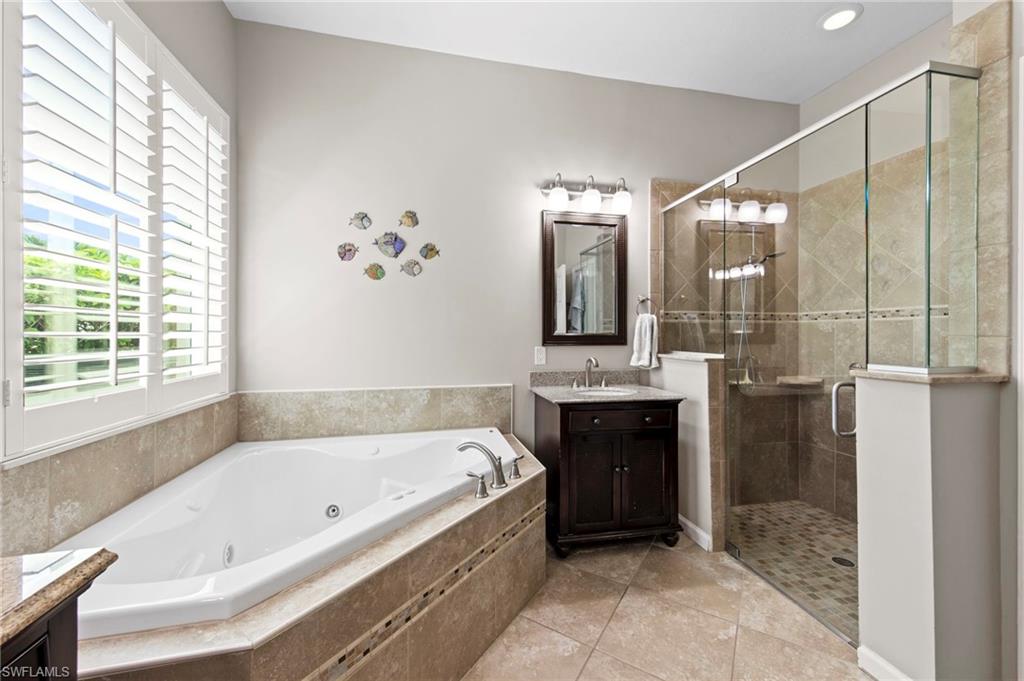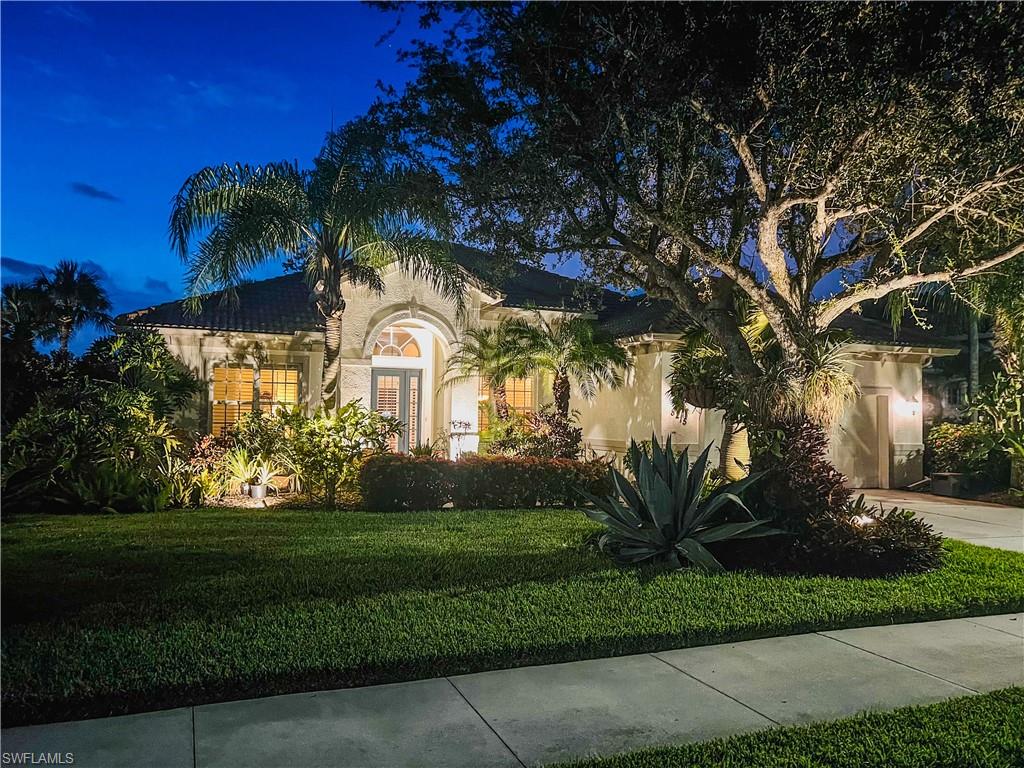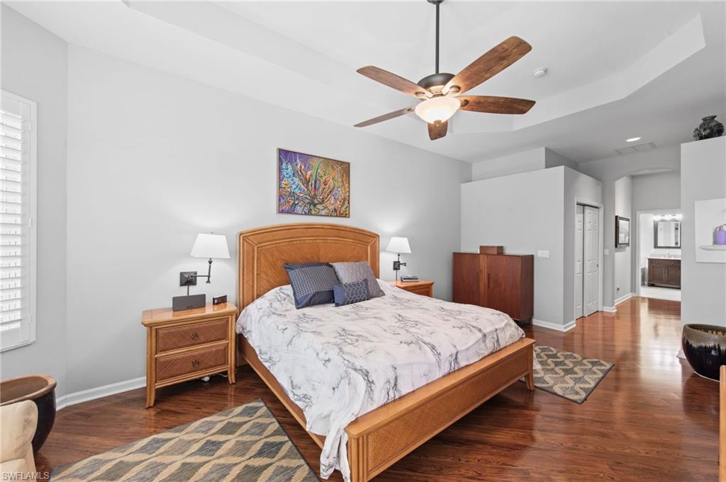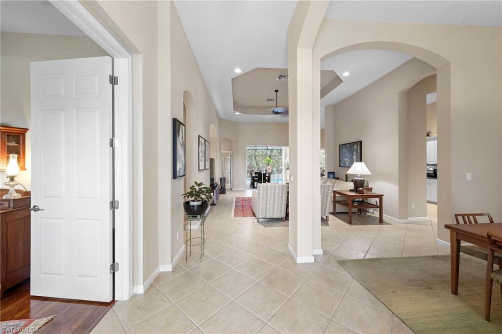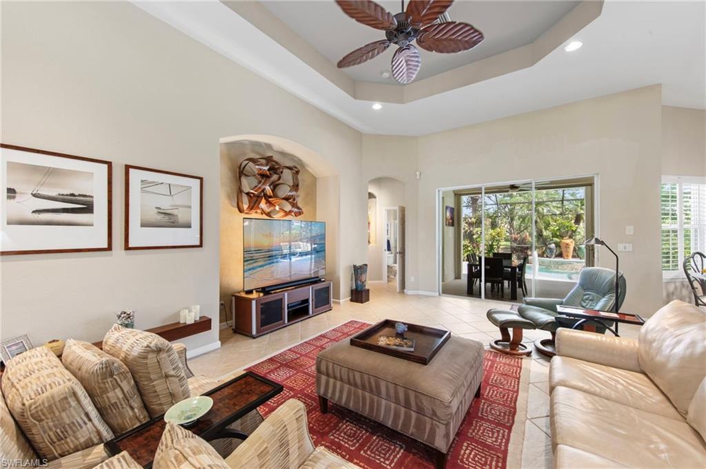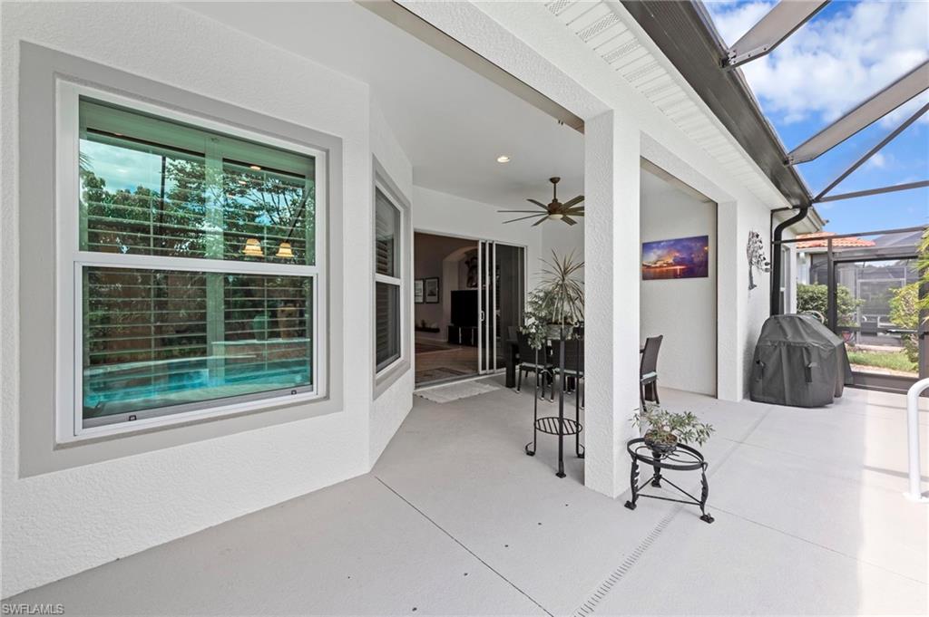 Introducing the remarkable Revere Model nestled in the Madison Park community, this exquisite residence boasts 3 spacious bedrooms, 3.5 baths, and an additional den, perfect for versatile living. The home showcases an expansive and luminous great room floor plan that invites abundant natural light, creating a warm and inviting atmosphere throughout. Among its many notable features, this property is equipped with a full home solar power system, impact-resistant windows, and elegant plantation shutters that add a touch of sophistication. The custom-designed primary closet offers ample storage, while smart home capabilities ensure modern convenience at your fingertips. Recent renovations include a newly updated pool cage and a freshly painted exterior, complemented by landscape lighting that highlights the stunning array of rare and exotic foliage surrounding the home. Inside, diagonal tile flooring flows seamlessly through the main living areas, while the bedrooms and den are adorned with beautiful hardwood floors, adding a touch of luxury. Unique architectural elements, such as arched doorways, decorative plant ledges, and soaring volume ceilings, contribute to the home's distinct character. The eat-in kitchen is a chef's delight, featuring granite countertops paired with white raised wood panel cabinetry, providing both functionality and style. The thoughtfully designed split-bedroom layout includes a convenient pool bath, ensuring privacy and comfort for guests. The expansive primary suite is a true retreat, complete with high-quality cabinetry, dual sinks in the master bath, a Jacuzzi bathtub, and a walk-in shower for a spa-like experience. Step outside to your private screened lanai, where you'll find a captivating pool set against a serene lake view, perfect for relaxation and entertaining. LOW HOA includes lawn care and up to one gig WIFI. Madison Park is ideally located, offering easy access to world-class dining, shopping, medical facilities, and the vibrant downtown Naples area, not to mention the famous white sugar sand beaches that Naples is renowned for. This exquisite property truly embodies the perfect blend of luxury and convenience, making it a must-see for discerning buyers.