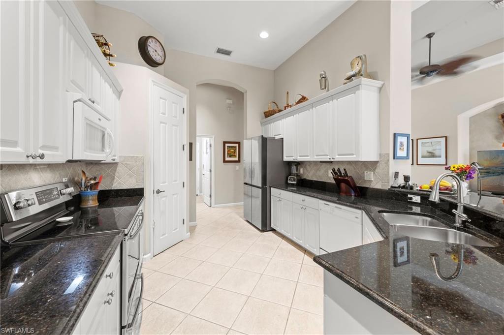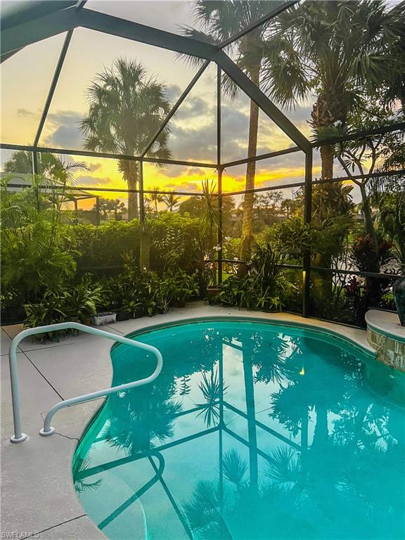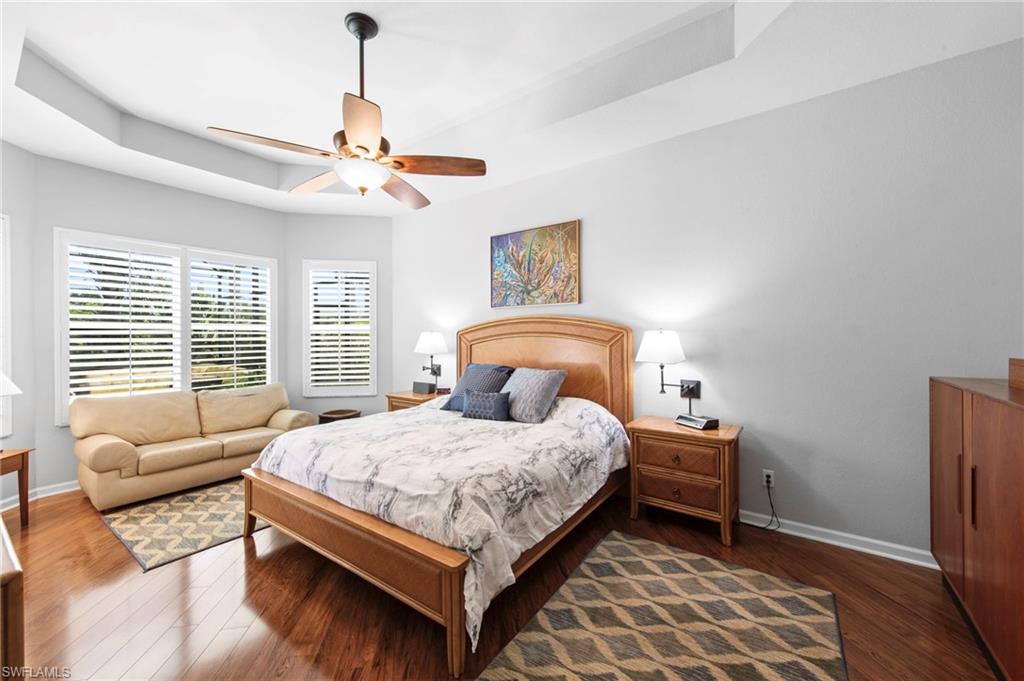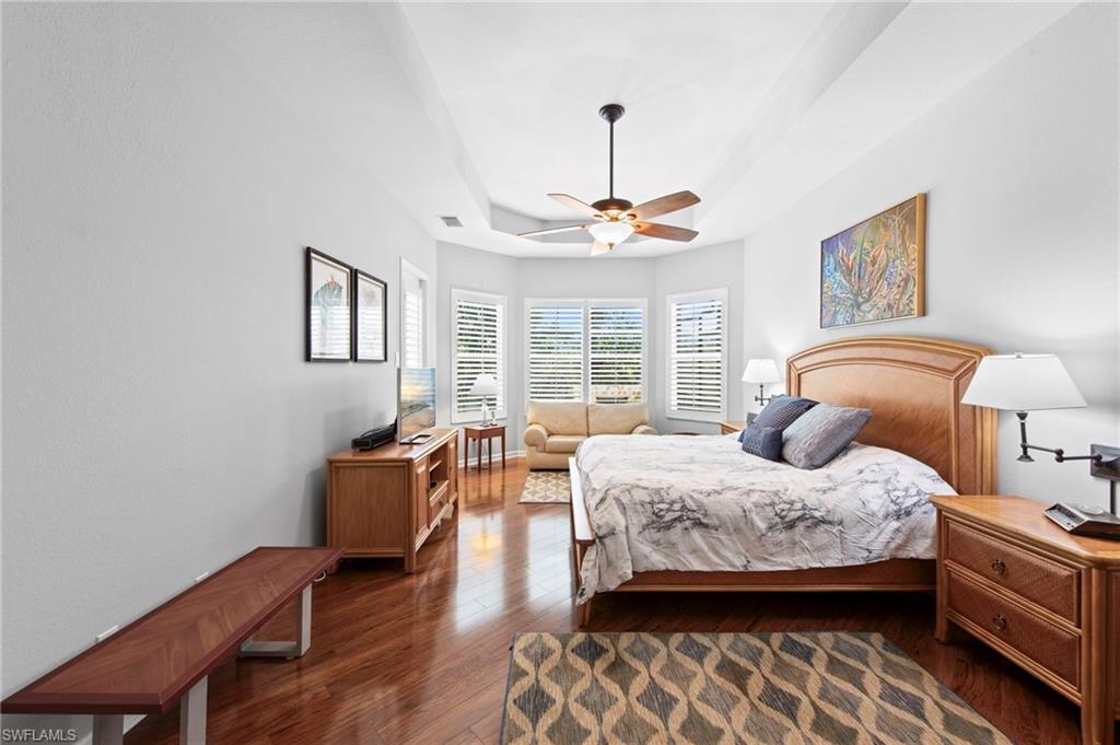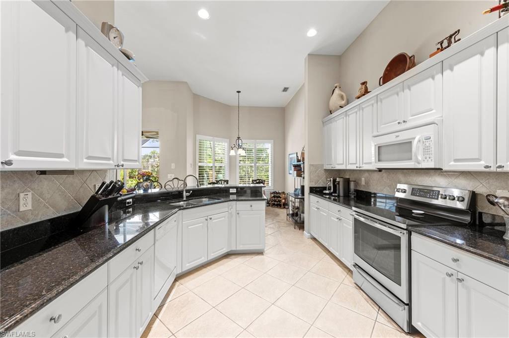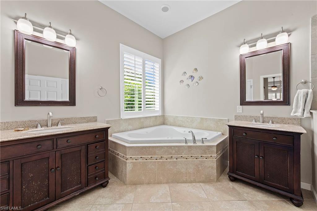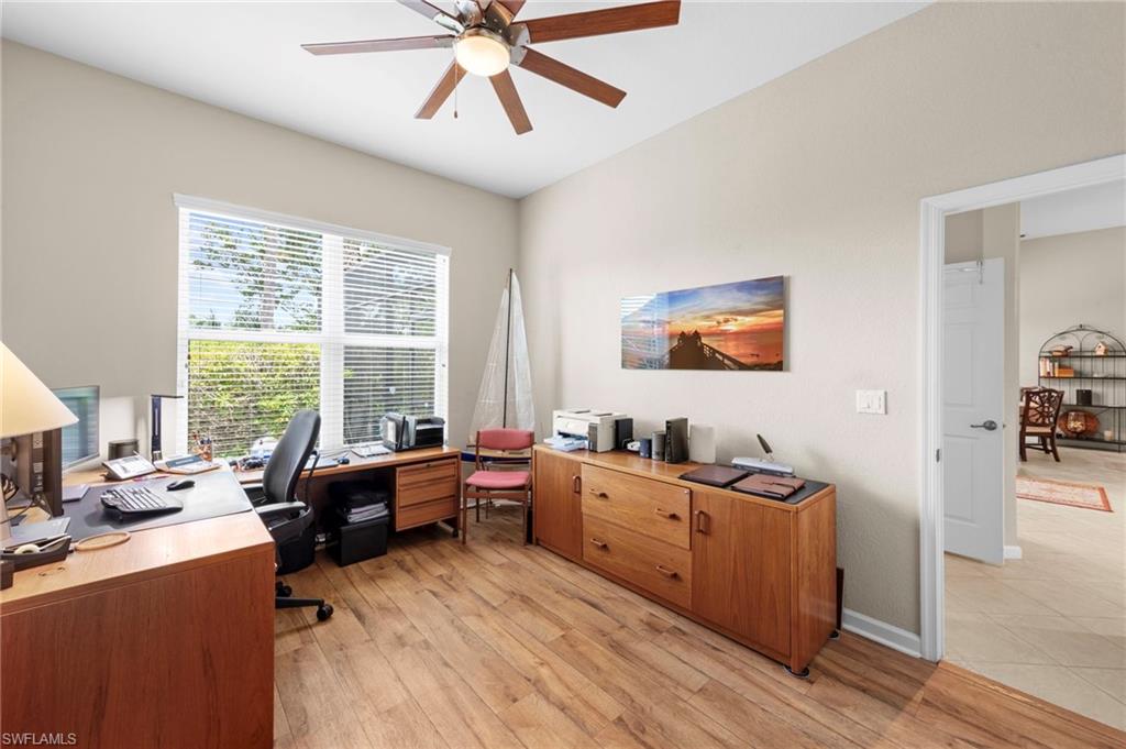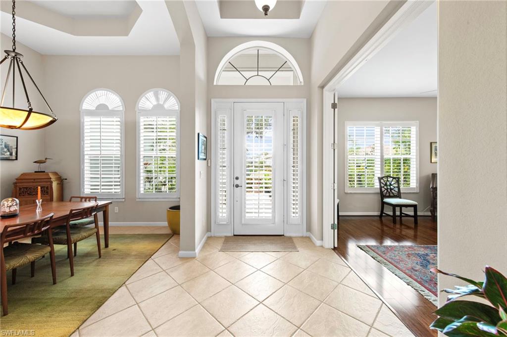 Introducing the remarkable Revere Model nestled in the Madison Park community, this exquisite residence boasts 3 spacious bedrooms, 3.5 baths, and an additional den, perfect for versatile living. The home showcases an expansive and luminous great room floor plan that invites abundant natural light, creating a warm and inviting atmosphere throughout. Among its many notable features, this property is equipped with a full home solar power system, impact-resistant windows, and elegant plantation shutters that add a touch of sophistication. The custom-designed primary closet offers ample storage, while smart home capabilities ensure modern convenience at your fingertips. Recent renovations include a newly updated pool cage and a freshly painted exterior, complemented by landscape lighting that highlights the stunning array of rare and exotic foliage surrounding the home. Inside, diagonal tile flooring flows seamlessly through the main living areas, while the bedrooms and den are adorned with beautiful hardwood floors, adding a touch of luxury. Unique architectural elements, such as arched doorways, decorative plant ledges, and soaring volume ceilings, contribute to the home's distinct character. The eat-in kitchen is a chef's delight, featuring granite countertops paired with white raised wood panel cabinetry, providing both functionality and style. The thoughtfully designed split-bedroom layout includes a convenient pool bath, ensuring privacy and comfort for guests. The expansive primary suite is a true retreat, complete with high-quality cabinetry, dual sinks in the master bath, a Jacuzzi bathtub, and a walk-in shower for a spa-like experience. Step outside to your private screened lanai, where you'll find a captivating pool set against a serene lake view, perfect for relaxation and entertaining. LOW HOA includes lawn care and up to one gig WIFI. Madison Park is ideally located, offering easy access to world-class dining, shopping, medical facilities, and the vibrant downtown Naples area, not to mention the famous white sugar sand beaches that Naples is renowned for. This exquisite property truly embodies the perfect blend of luxury and convenience, making it a must-see for discerning buyers.