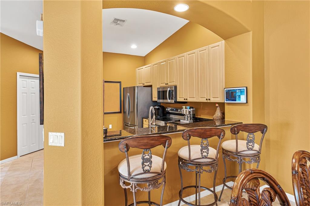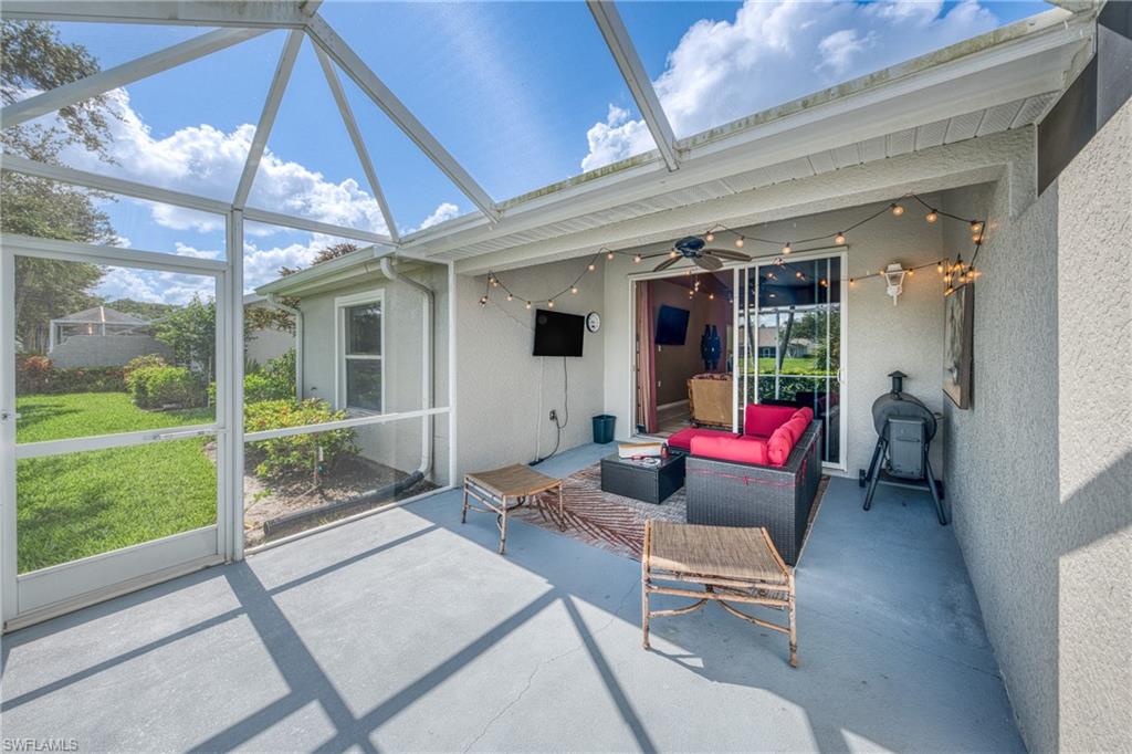This rare find in the most desired gated community of Mandalay with LOW HOA fees off Rattlesnake Hammock Road awaits you but WILL NOT LAST LONG! Be where the action is with this prime location with Santa Barbara Blvd and US 41 just mere moments away, top rated schools, the dining and shopping options are ENDLESS. Naples pier is just a cool 8 mile drive from your front door. This gorgeous FULLY FURNISHED, upgraded attached villa is loaded with upgrades from the beautiful kitchen with stainless steel appliances, granite counters, and the breakfast bar provides a casual dining option. Entertaining is easy with seamless flow from the dining area, living area, and out to the enclosed lanai with expansive lake views. The living room is designed for comfort and style, featuring high ceilings, large windows, & elegant luxury vinyl flooring that ties the space together. The enclosed lanai is a real treat with gorgeous lakeviews, a sizable overhang to enjoy the outdoors in the elements, and access to the backyard from the lanai as well. The primary bedroom is a true retreat, boasting a generous size, walk-in closet, a dual vanity, & a walk-in shower. The room is designed to be a sanctuary, offering ample space for a king-sized bed & add furniture, as well as large windows that let in plenty of natural light. The en-suite bathroom is luxurious, with modern fixtures & finishes that create a spa-like atmosphere. The two additional bedrooms are also large in size with double closets, perfect for your out-of-town guests or for use as a home office or hobby room. Each room offers plenty of space & natural light, ensuring that everyone has their own comfortable space. These bedrooms share a well-appointed bathroom, featuring a combination shower & tub, & a stylish vanity with plenty of storage. Peace of mind is enhanced with a NEW ROOF installed in 2023, NEW AC installed in 2023 and a NEW HOT WATER heater that was installed in 2024. The property also includes a two-car garage, providing ample space for vehicles & additional storage. Laundry in residence adds to the convenience, making household chores easier. Mandalay doesn’t just enjoy its prime location; this community enjoys the community pool / spa, and cabana!