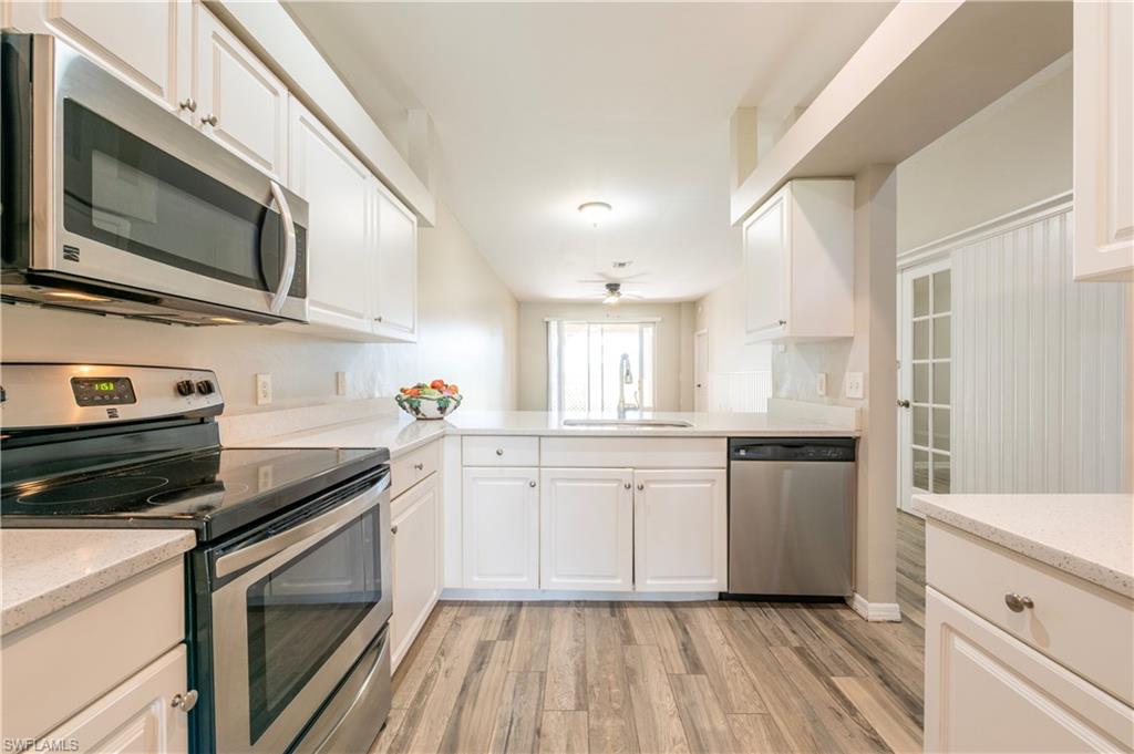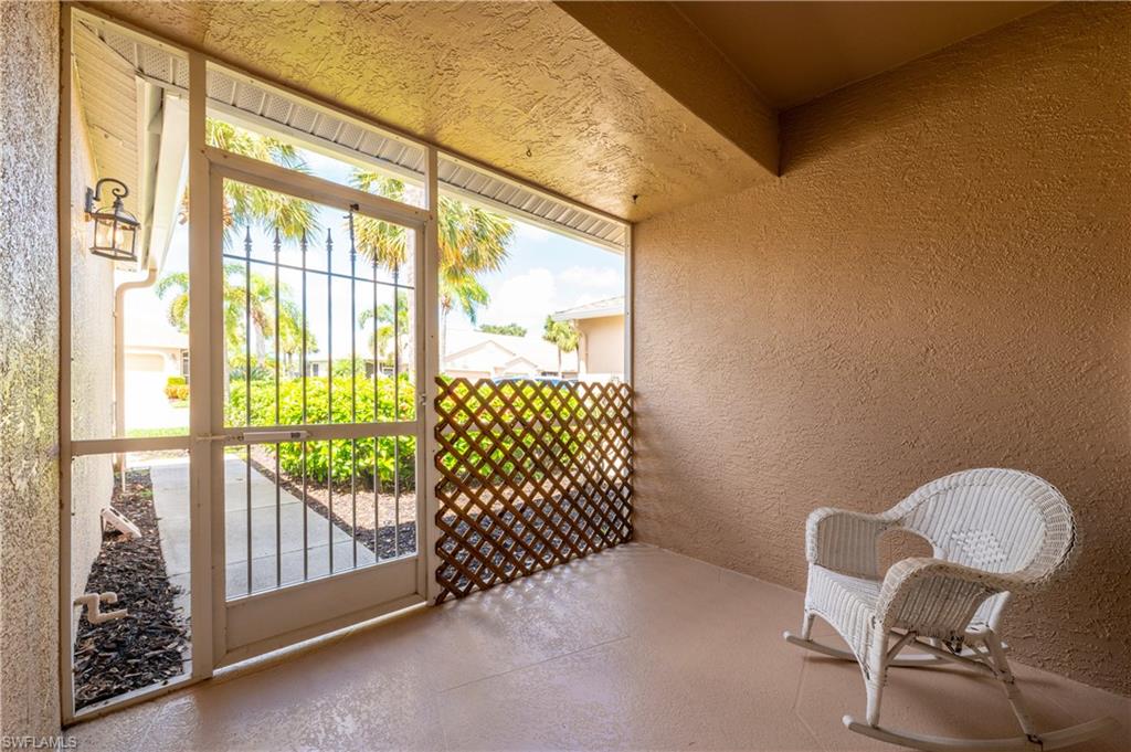 Welcome to this beautifully maintained 2-bedroom + den, 2-bathroom home nestled in a highly sought-after public golf course community. The kitchen boasts sparkling quartz countertops and soft-close shaker cabinets, combining elegance with functionality for a truly modern culinary space. The bathrooms feature updated vanities and sleek quartz countertops, offering a fresh, modern feel throughout. Enjoy breathtaking sunrises from the lanai in your backyard, and unwind with beautiful sunset views from the screened-in front porch — the perfect spots for morning coffee or evening relaxation. Situated in a no flood zone, this home provides peace of mind along with low HOA fees and access to a wide range of community amenities. You'll love the close proximity to shopping, dining, and everyday conveniences, making errands and entertainment a breeze. Whether you're a golf enthusiast or simply seeking a serene and friendly community, this home offers the ideal blend of comfort, lifestyle, and location.