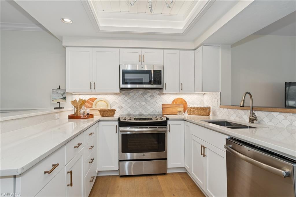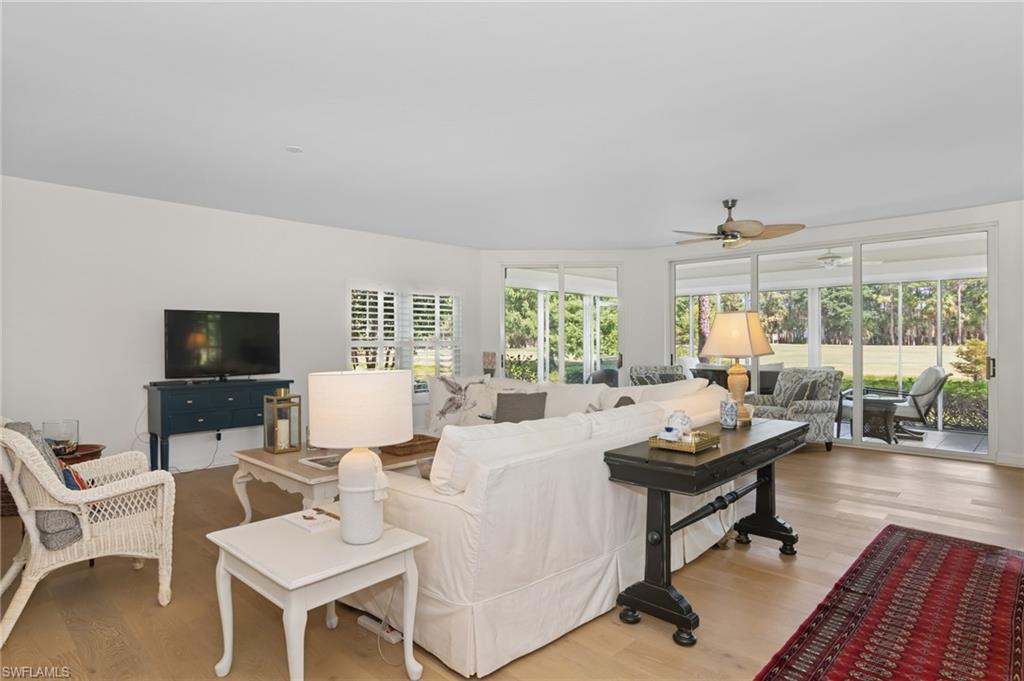 Beautifully remodeled light bright lake front property. Totally furnished & (turnkey) with sharp , new, current, modern, fresh, open and stylish design ...... Remodeled baths , showers and vanities with lovely fixtures . New kitchen, quartz counters, SS appliances, light bright space. ..... Great views of Wyndemere's golf and lakes. Spacious screened lanai , wood -look plank flooring throughout the living area. Safe & secure with electronic shutters for storms while away..... This lives like a home with all the work done for you..... Just move right in & enjoy Naples.