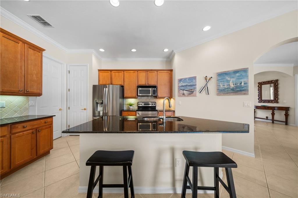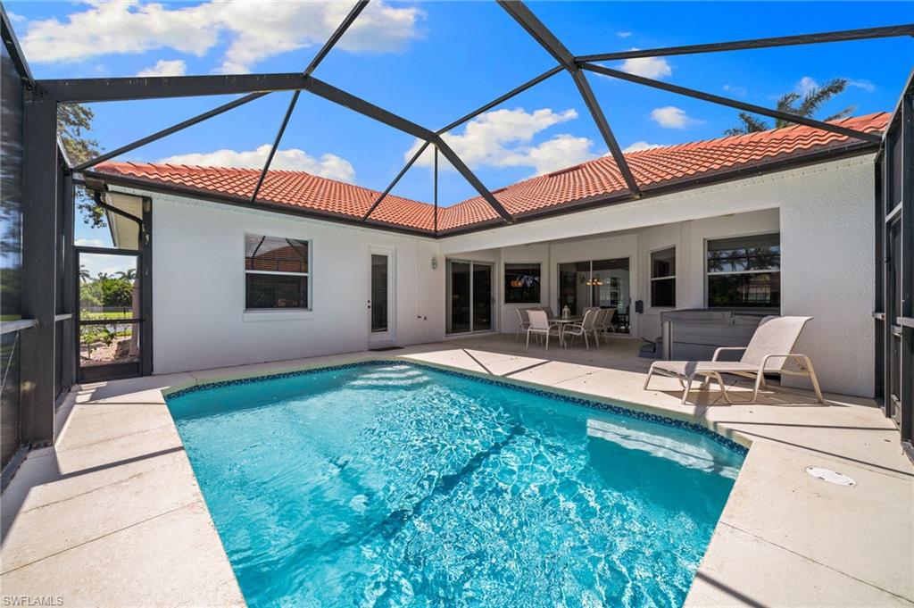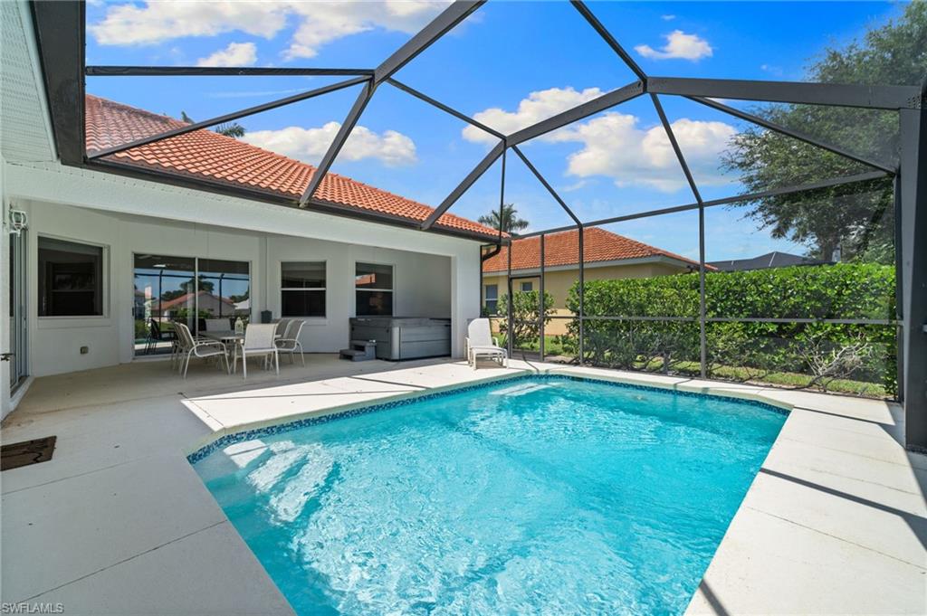 Why compromise on size, views, or comfort in your next home—when this property offers it all? Welcome to 5014 Old Pond Drive, the largest home currently available in Moon Lake by square footage, number of bedrooms and bathrooms, garage space, and lot size—and yes, it comes with an expansive lakefront view. This beautifully updated 4-bedroom, 3-bath, 3-car garage residence spans 2,287 square feet and sits on an oversized lot, offering the kind of space and lifestyle flexibility that’s hard to find in this desirable Naples community. Whether you're a snowbird looking for the perfect seasonal retreat or a full-time family seeking comfort and functionality, this home checks every box. The layout flows effortlessly with high ceilings, neutral tile flooring, and an open-concept design that invites ample gathering space while allowing for privacy when you need it. The kitchen is designed for everyday living and entertaining, featuring a large island, extensive cabinetry, and plenty of workspace. The primary suite offers a peaceful retreat with walk-in closets and a spa-like en-suite bath, while three additional bedrooms provide ample space for guests, family, or a home office. Step outside and you’ll find your own private oasis: a refinished pool, 2024 pool pump, high-end hot tub, and freshly repainted exterior, all overlooking serene lake views. The backyard is ideal for both relaxing and entertaining in true Florida style. With a location that’s just 10 minutes from the Bayshore Art District, 15 minutes to Downtown Naples, and mere minutes to Publix, Starbucks, pet stores, and more—you’ll have everything you need right at your fingertips. 5014 Old Pond Drive is a rare opportunity to own the most spacious, well-appointed home in Moon Lake—where size, style, and serenity come together in one perfect package.