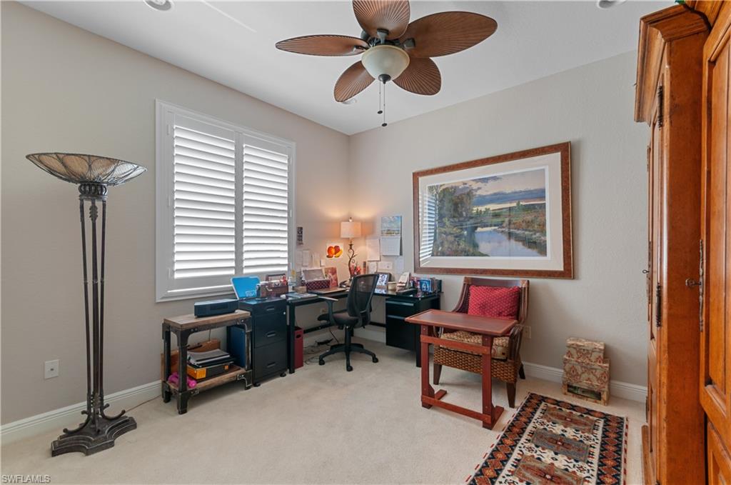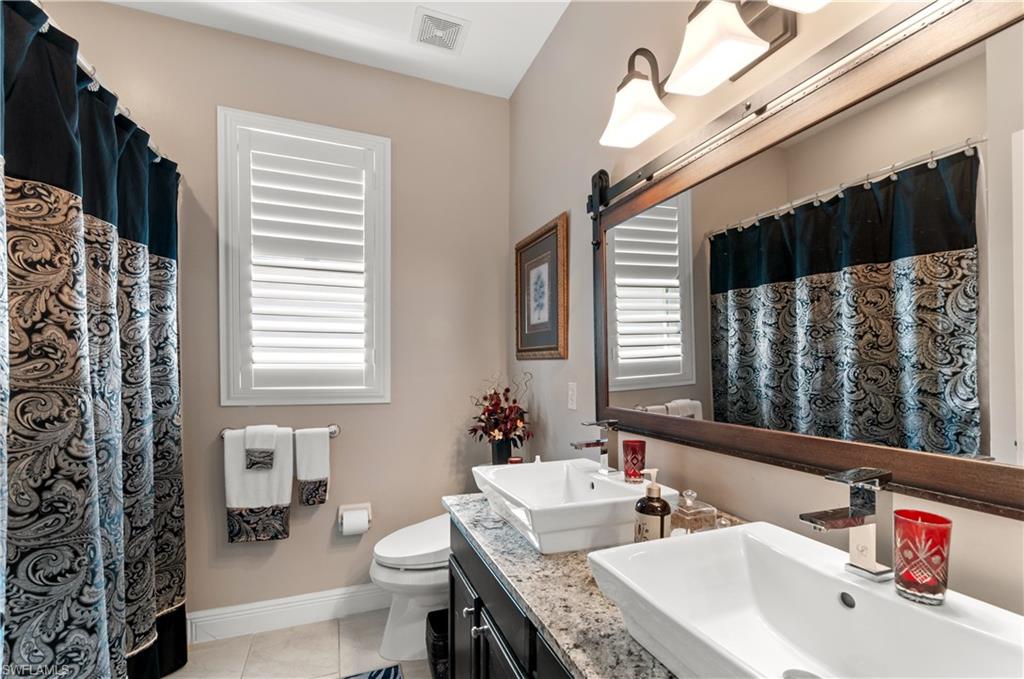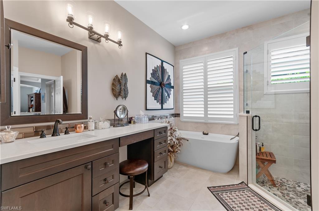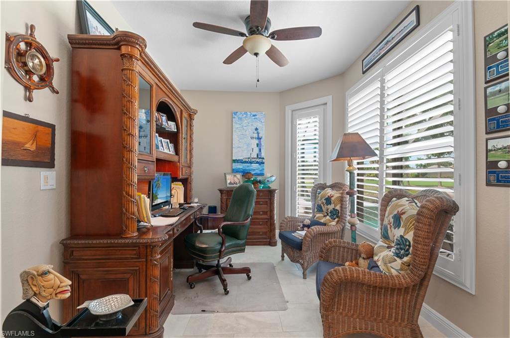 WOW! Full golf membership INCLUDED in an Arnold Palmer Signature golf course community. This beautiful home is the most desired Saranac Model(2676 sq.ft.)3bedrooms, den and 3 and a half baths. Fully updated with a new roof, floors, quartzite, plantation shutters, appliances, fans and light fixtures. Completely remodeled master bath and half bath, updated guest bath. The lanai has a preferred southern exposure and brand-new travertine tiles. The cage has a large picture window screen to view a 600+ unobstructed view of the golf course and lakes. Also, a new AC system and new pool and spa equipment. The Naples Lakes Country Club has new, modern community pool and cabana for casual outdoor dining. Bocce lanes are just a few steps away. Tennis, pickleball and fitness centers are staffed by pros. There is also a very active social program and many member events catered by our excellent chef. Short Drive to 5th Avenue, Marco Island and beaches. Southeast Naples location is safe from coastal hurricanes. Come live and golf in the FREE STATE OF FLORIDA!!!!
