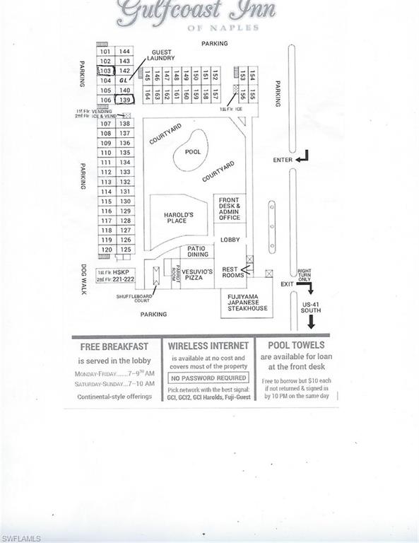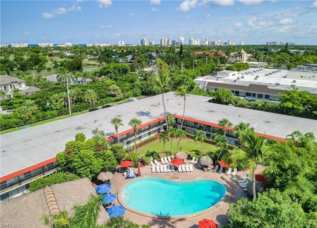 THE BEST UNIT HERE! Best New Price! END UNIT. Excellent location west of US41 in the highly desirable Moorings area of Naples. This light and bright condo is available as a great affordable get-a-way or as an investment property. Features Plantation Shutters, remodeled bath/shower. Popcorn ceilings removed. Convenient FIRST FLOOR end unit with a landscaped view unit facies the Pool and Bar/Restaurant…only 1 Mile to the white sandy beaches of the Gulf of AMERICA and just minutes to Old Naples with its many shopping, dining and entertainment options. Money-making Condo/Hotel unit offers everything you need to enjoy paradise as an investment property, with or without tenants. No minimum or maximum stay. Just pack your toothbrush and bathing suit. This very nice unit has all Tile flooring, new TV along with an updated Kitchen and Bath which includes a new Refrigerator and Microwave. There's also a new built-in wardrobe as well as new cabinets, sink, hardware and granite counters. It is tastefully decorated and sold turnkey along 2 QUEEN BEDS. You can enjoy the resort-style pool, great restaurants on-site including the legendary poolside Harold's Place (BEST BURGER IN NAPLES!) Fujyiama Steak and Seafood House and Vesuvio Pizza and Bar. Convenient laundry facilities on the property. On-site Property Management is also available. You can manage your own Rentals or place in the Rental Pool. ALL UTILITIES ARE INCLUDED IN MONTLY FEE INCLUDING CABLE & INTERNET