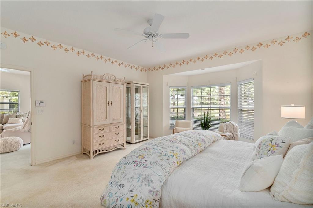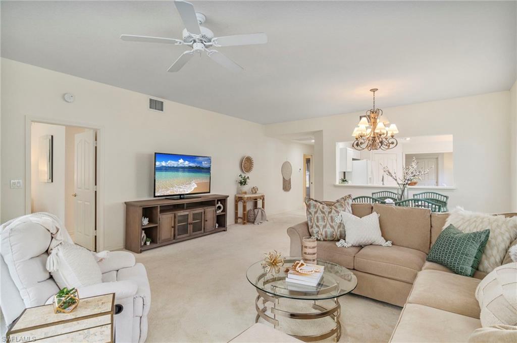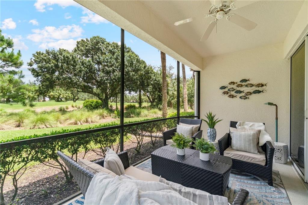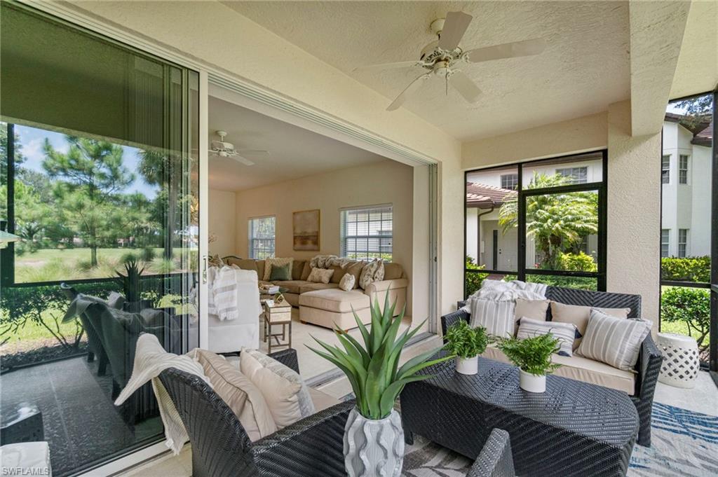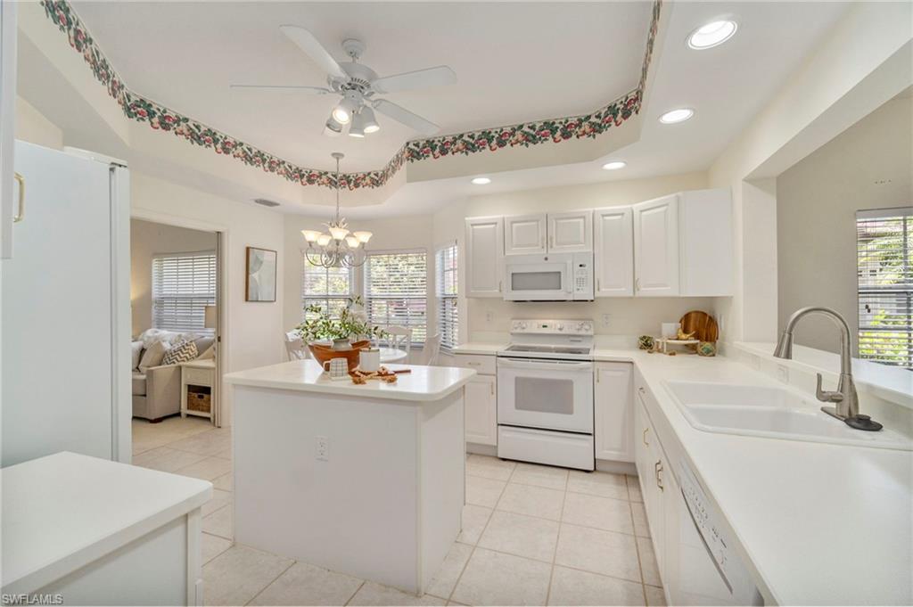 Welcome to Kensington—a gated, centrally located Naples community offering convenient access to world-class beaches, fine dining, shopping, and entertainment. This beautifully maintained coach home is nestled on a quiet cul-de-sac with peaceful views of the #15 hole on Kensington’s prestigious golf course—just steps from the community pool and clubhouse. From the moment you enter, you're greeted by abundant natural light that flows throughout the open-concept layout, creating a warm and inviting atmosphere. The spacious great room features pocketing sliders that seamlessly connect to the screened lanai, framing serene golf course views and allowing light to pour in. The bright kitchen is perfect for entertaining, offering generous counter space, a walk-in pantry, and an airy layout designed to enjoy the sunshine from every angle. The light-filled primary suite includes a cozy sitting area, two closets (including a walk-in), and a luxurious bath with dual vanities, a soaking tub, and a separate shower. A second bedroom and bath can be enclosed with pocket doors to create a private guest retreat, while the third bedroom—with closet—offers flexible use as a den or office. Additional features include a large air-conditioned storage room and an attached two-car garage. Kensington Golf & Country Club offers a vibrant, resort-style lifestyle with optional membership levels—social, sport, or golf. Enjoy tennis, pickleball, bocce, a resort-style pool, full-service dining, and a full calendar of social events. Pet-friendly and close to everything Naples has to offer—this sunlit sanctuary is Florida living at its finest!