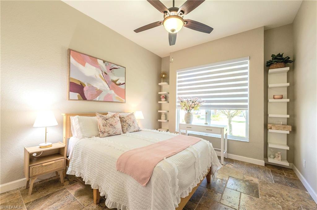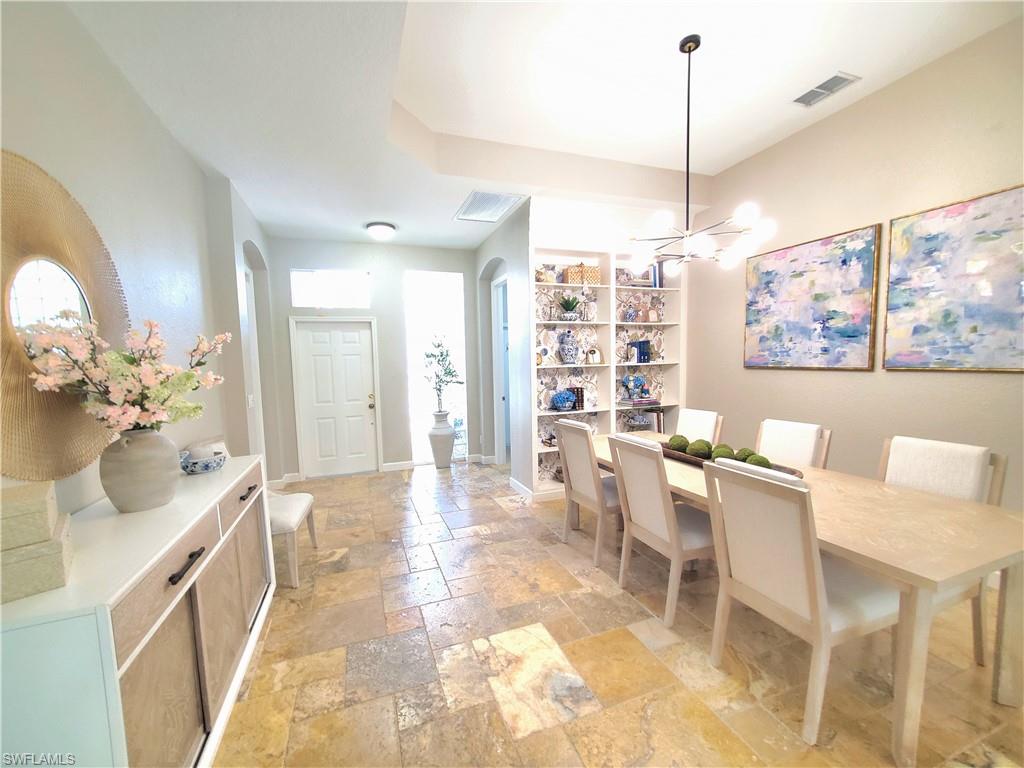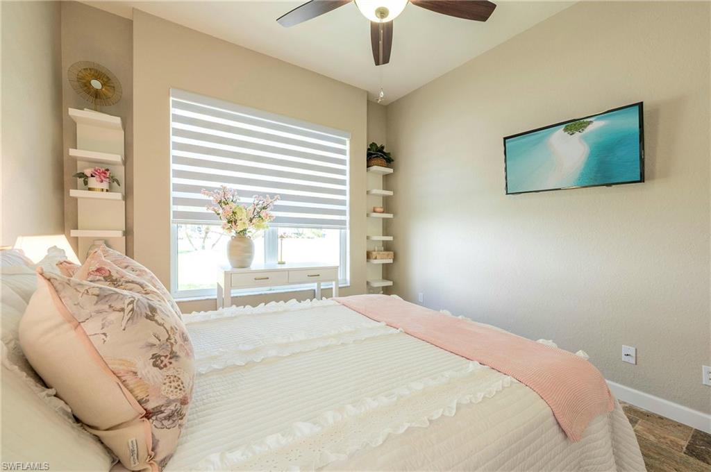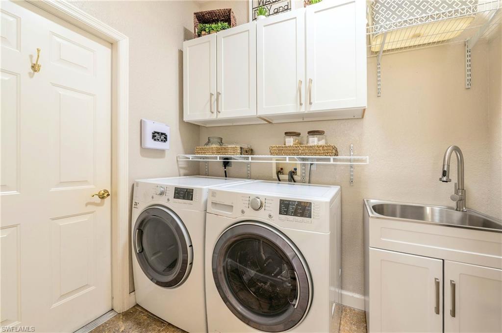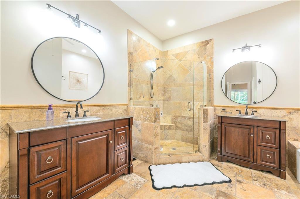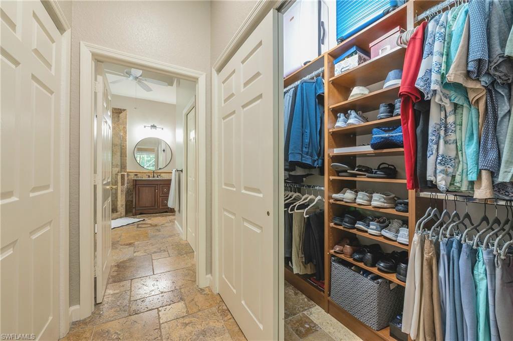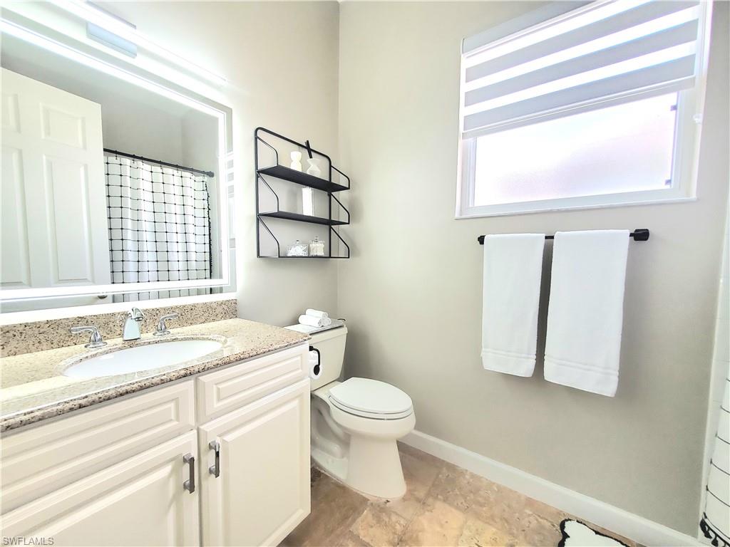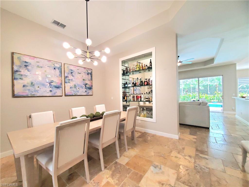 Live life Large in Naples, FL ! One of the most stunning, this updated 3 Bedroom villa Pool home is a largest floor plan at 1857 sqft under AC, set on a cul-de-sac with preferred Southern exposure and no flood insurance required. Here you embrace a lifestyle of Clubhouse amenities designed for relaxation, recreation, and connection. Screened entry leads into a foyer with soaring high ceilings. Imagine spending your days relaxing and sunning at your pool -- notably larger, with rare 12 foot deep end, in an oversized lanai, with lush plantings and private serene setting. New pool pump just installed. Extended under-roof area is ideal for Florida indoor-outdoor living and entertaining. Collapsing sliders lead to the eat-in kitchen with stainless steel appliances, large windows with pool views and island open to the living areas. Extra spacious primary bedroom has sliders pool access. Stunning main bathroom features new two-sink vanity, step-in shower, soaking tub, and separate water closet. Two super large walk-in closets have custom built-in shelving for your clothes and shoes. A split bedroom floor plan features another 2 bedrooms and bathroom up front that uniquely closes off with a door for an en-suite with ultimate privacy for you and your guests. All designer $39k travertine tile floors throughout and custom blinds on large windows for lots of natural light. The long paver driveway has ample parking for you and guests - and yard for fur babies in this pet friendly community. Storm shutters and Electric upgraded for generator Plug -in used for whole-house Standby power. Maintenance free living with lawn, mulch, trimming, painting, pest control all done for you. Enjoy rich amenities that come with your social membership in this gated community with lower costs and cable and internet included. No need to pay the extra golf fees but play iMay to Nov. Head to Clubhouse for dining, bar, golf similator, har-tru lit tennis courts, ping pong, billiards, library, card rooms, fire pit, events and much more. The Divot features a full fitness center, bocci, breakfast, lunch, bar, music and events. All conveniences are minutes out the front or back gates. Located just 4 miles from downtown Naples, beaches, shopping, and dining. Strong rental potential. Schedule showing or request Matterport virtual tour