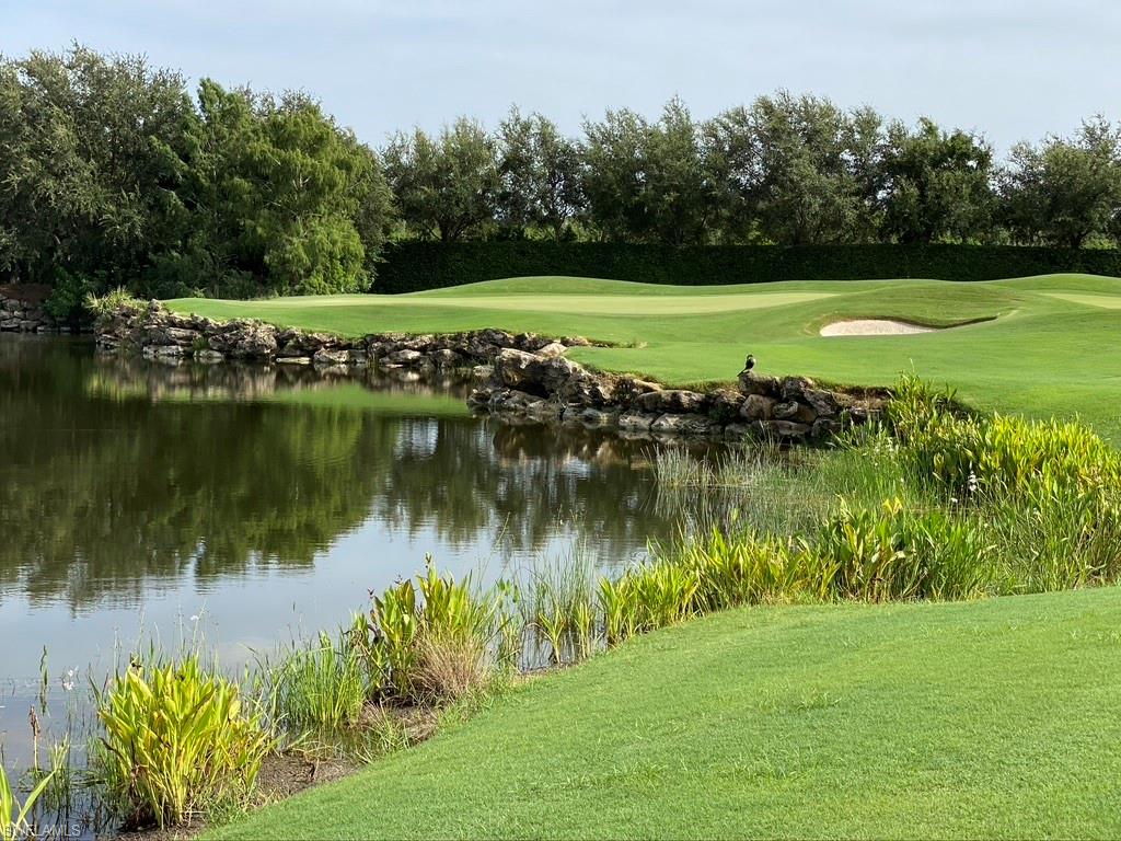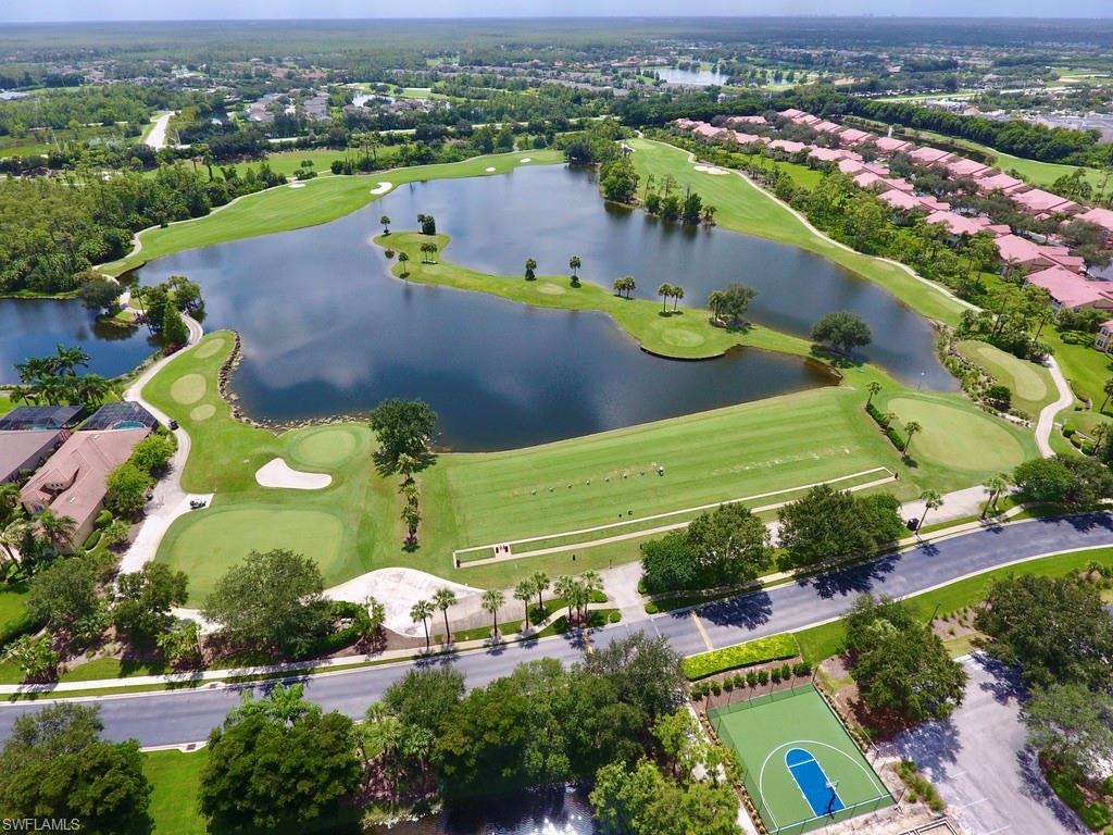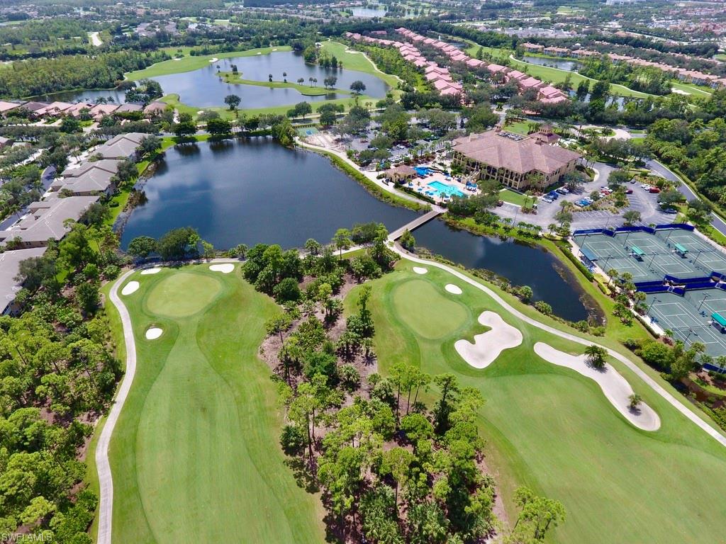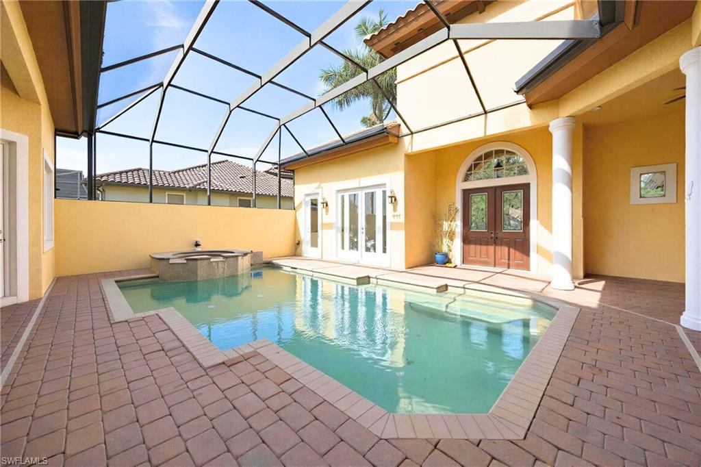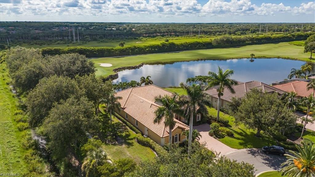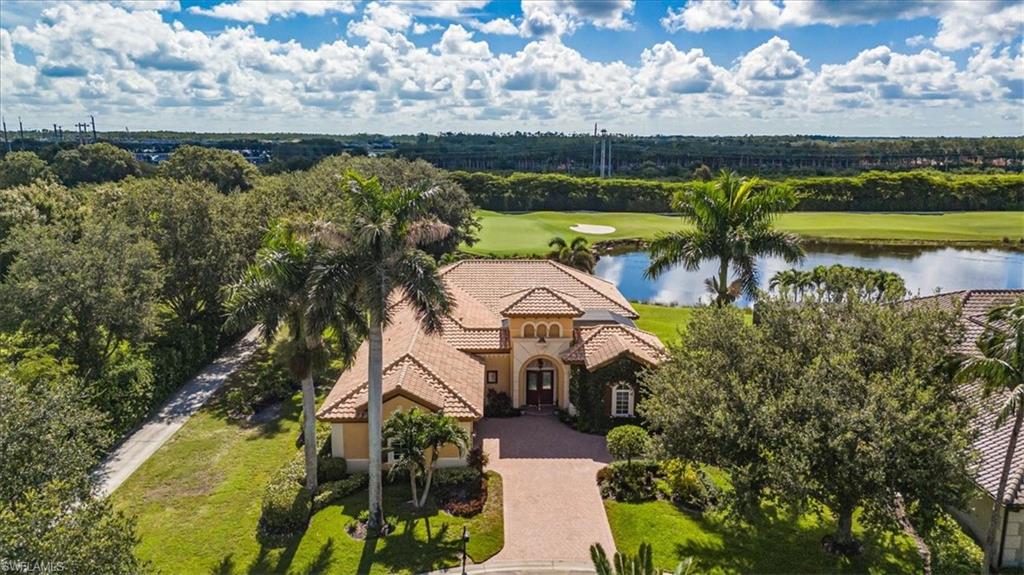This is the Florida home you've been dreaming of! Listed at a Terrific price for this “Pinehurst” style courtyard home by Stock Development in the Grande Estates. This 4 + den/3 car garage estate courtyard home literally brings paradise into your home, making the pool area feel like part of your living space. The gorgeous lake and golf course view, coffered ceilings, disappearing edge sliders, wood flooring in the den, brick pavered pool lanai, beautifully landscaped, stylish stone backsplash in the kitchen and quiet cul-de-sac location make this highly desirable home one that will be sought after and sold quickly. Enjoy an active year-round social community, with private golf, not mandatory to join, & shopping, restaurants, FGCU, the airport & more nearby. Make an appointment for a private viewing today!