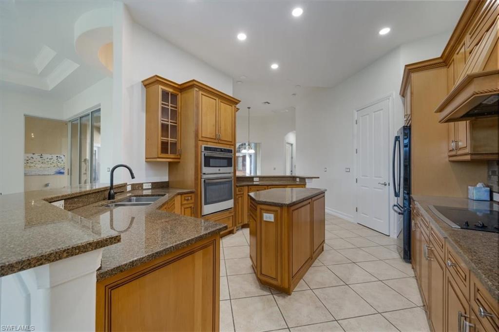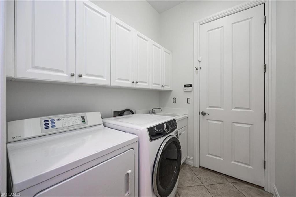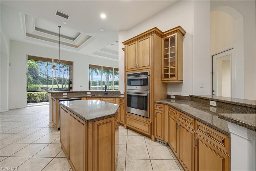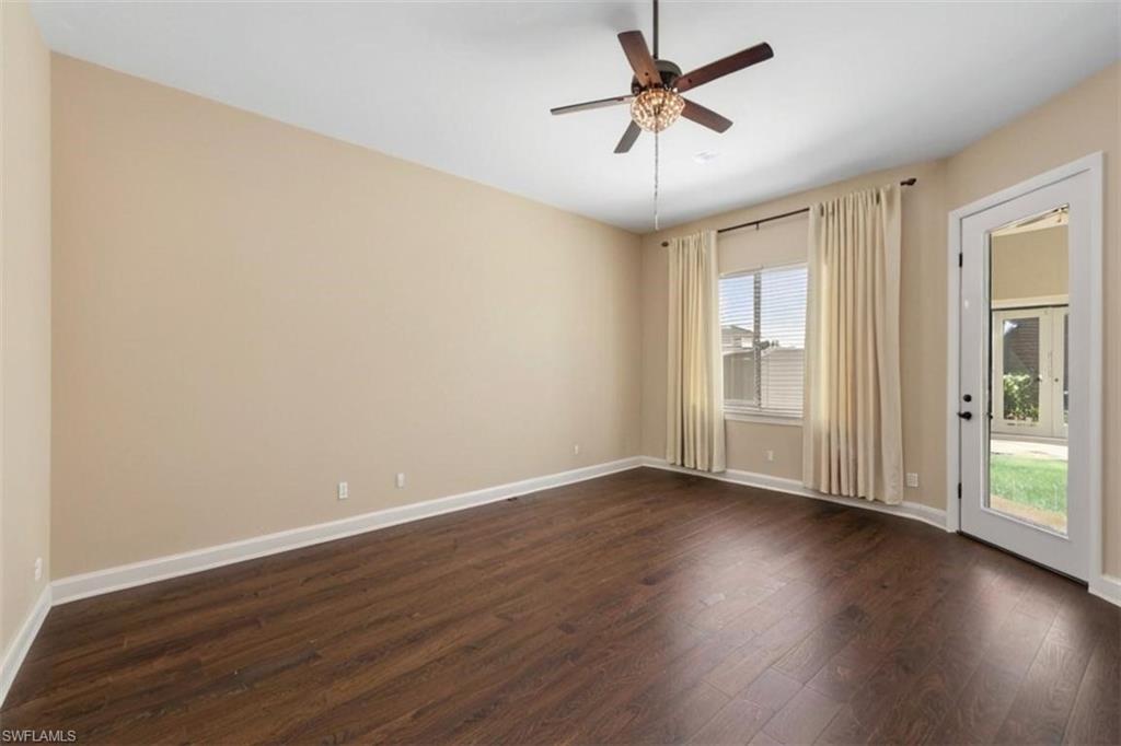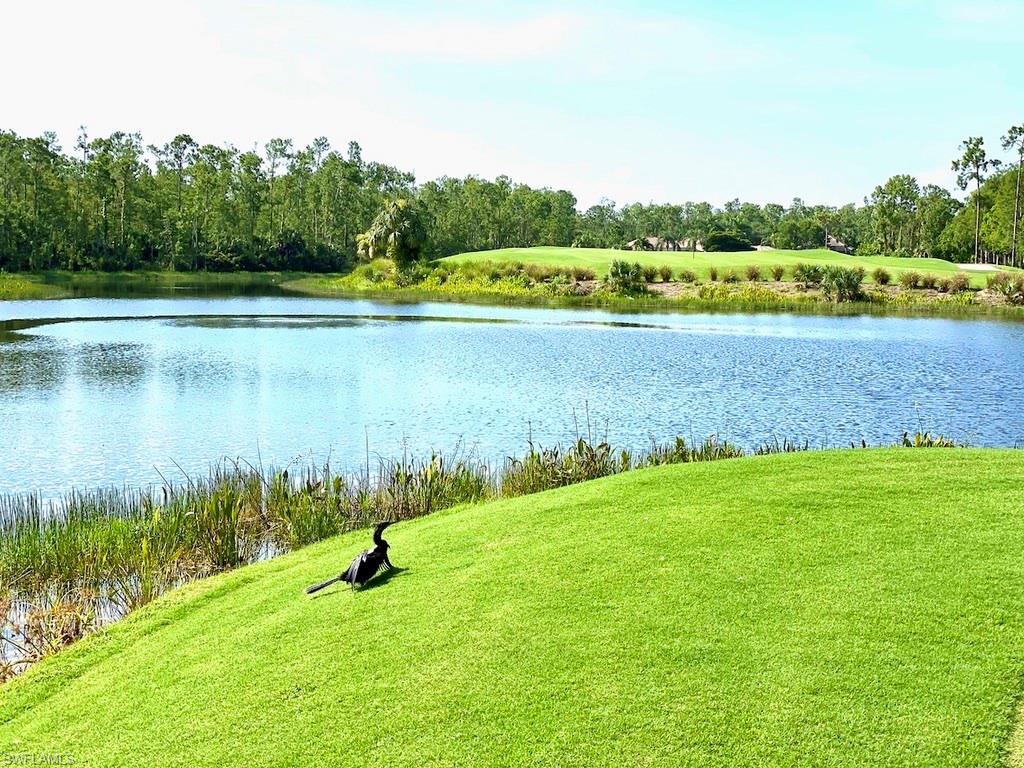 This is the Florida home you've been dreaming of! Listed at a Terrific price for this “Pinehurst” style courtyard home by Stock Development in the Grande Estates. This 4 + den/3 car garage estate courtyard home literally brings paradise into your home, making the pool area feel like part of your living space. The gorgeous lake and golf course view, coffered ceilings, disappearing edge sliders, wood flooring in the den, brick pavered pool lanai, beautifully landscaped, stylish stone backsplash in the kitchen and quiet cul-de-sac location make this highly desirable home one that will be sought after and sold quickly. Enjoy an active year-round social community, with private golf, not mandatory to join, & shopping, restaurants, FGCU, the airport & more nearby. Make an appointment for a private viewing today!