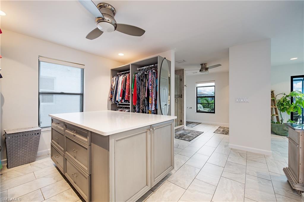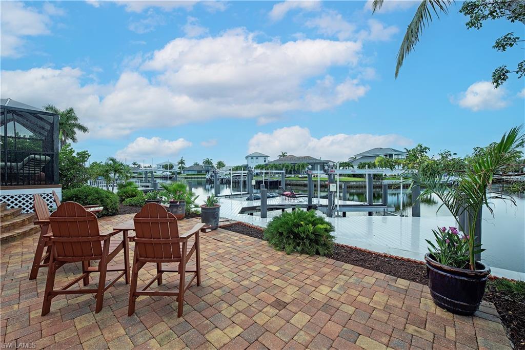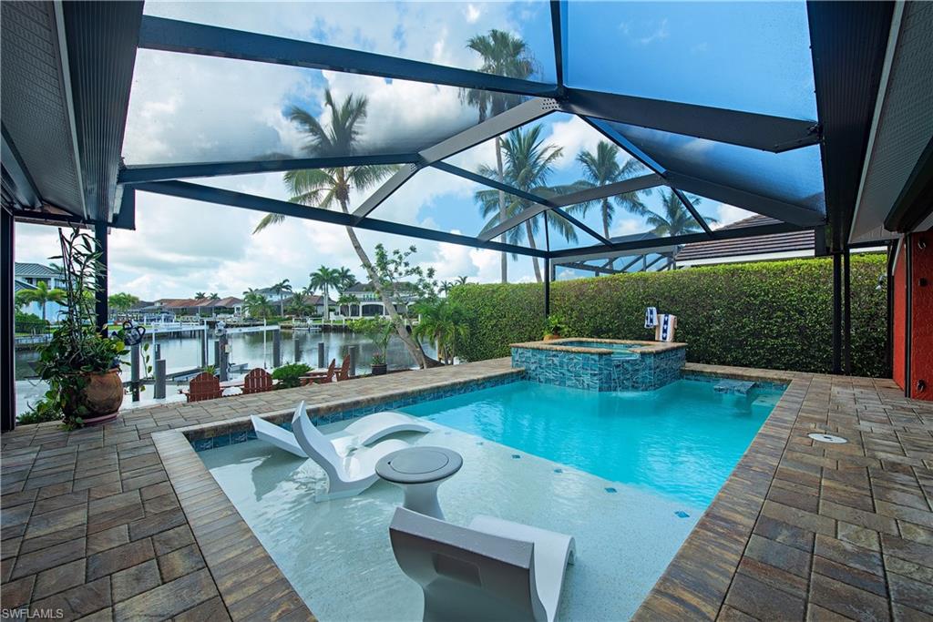Welcome home to one of Marco Island's best-kept secrets — a sun-soaked, move-in-ready waterfront retreat offering the perfect blend of comfort, privacy, and island charm. This lovingly remodeled (2015) 2-bedroom + flex space, 3-bath home is ready just in time for seasonal living or year-round enjoyment. With its southern exposure, wide-water views at the convergence of canals, and dolphins and manatees as your daily neighbors, this home invites you to slow down and savor the natural beauty of coastal life. Tucked on a quiet street just 2 miles from the beach and walking distance to restaurants, shops, parks, and the seasonal weekly farmers market, the location offers a welcoming entry into a tight-knit, no-HOA community where friendliness is the local currency and every sunset feels like a private show. Inside, the home features a freshly painted interior (ceilings, walls, and trim) and a light-filled open-concept layout designed for effortless living and entertaining. The kitchen includes a breakfast bar that flows into the spacious great room, perfect for morning coffee or evening wine with friends. You'll find: • A private guest suite with its own ensuite bath • A flex space ideal for a home office or 3rd sleeping space • A full pool bath/laundry room that's also connected to the owner's suite The primary bedroom includes a custom walk-in closet with a built-in island (8 full-size drawers + 4 smaller drawers), making dressers optional. The ensuite bath features a bidet and walk-in shower for spa-like ease. Outdoors, this home is a true oasis: Heated pool + spa with multi-color LED lighting controlled via aqualink, 3-piece in-pool Ledge Lounger furniture included, New picture window lanai screens + 15' x 30' covered space, Separate room off lanai for storing pool and fishing gear, 20' x 30' paved patio overlooking the water for dining, lounging, or stargazing, Private dock with 2 remote-control lifts: • 14,000 lb boat lift • 7,000 lb jet ski/kayak lift, 80-foot seawall, underwater lights, and your own artificial reef. The home is equipped with high-end upgrades to make life easy and secure: • Whole-home generator (500-gallon propane tank, full at closing) • Metal roof and Storm Smart screen for lanai protection • Ring cameras front and back • 2-car garage with app controlled garage door opener, epoxy floors, auto-lift storage, and adjustable shelving, • Circular driveway for easy guest access Personal touches add charm: • Mango and fig trees ready for harvest • A rare staghorn fern, a living sculpture that thrives without soil • Unique mailbox and turtle yard art that bring a bit of whimsy to your curb appeal. Whether you're seeking a full-time residence, seasonal retreat, or a luxury rental opportunity, this home is ready to welcome you — just in time for the coming season.