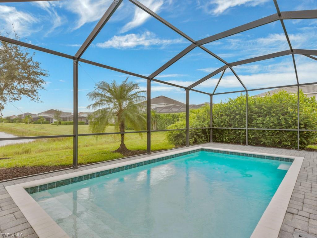 Price Improvement!! Beautiful single family pool home located on a peaceful corner of this family-friendly neighborhood. Perfectly placed to take advantage of southern long lake views from both inside your home and screened lanai. Great open living space with a white bright Kitchen, featuring quartz island, quartz countertops, tile backsplash, walk in pantry, stainless steel appliances with newly upgraded (2024) stove, oven and dishwasher. The spacious Master Bedroom suite enjoys his & her walk in closets ( 1 with custom built-ins) Master Bath with dual sinks and an extra large walk in shower. This home has 3 Bedrooms, 3 Full Baths and a Den - Home Office featuring glass french doors. Laundry Room with extra storage. Better than new, freshly painted and recently converted Salt Water Pool. A large 2 car Garage with painted floors, added overhead storage and pre-wired for an electric vehicle charger completes the picture on this 2021 built home. Discover all the amenities in this low HOA, gated access community including two Resort- Style Pools and two Spas (one adult only and one family-friendly children's pool) with Poolside Cabanas. A large Clubhouse, Gym, Pickleball and Tennis courts, Basketball, Bocce, two Playgrounds, Picnic areas, Fishing Pier and more. Nearby schools and a new grocery store coming soon makes living here easy!