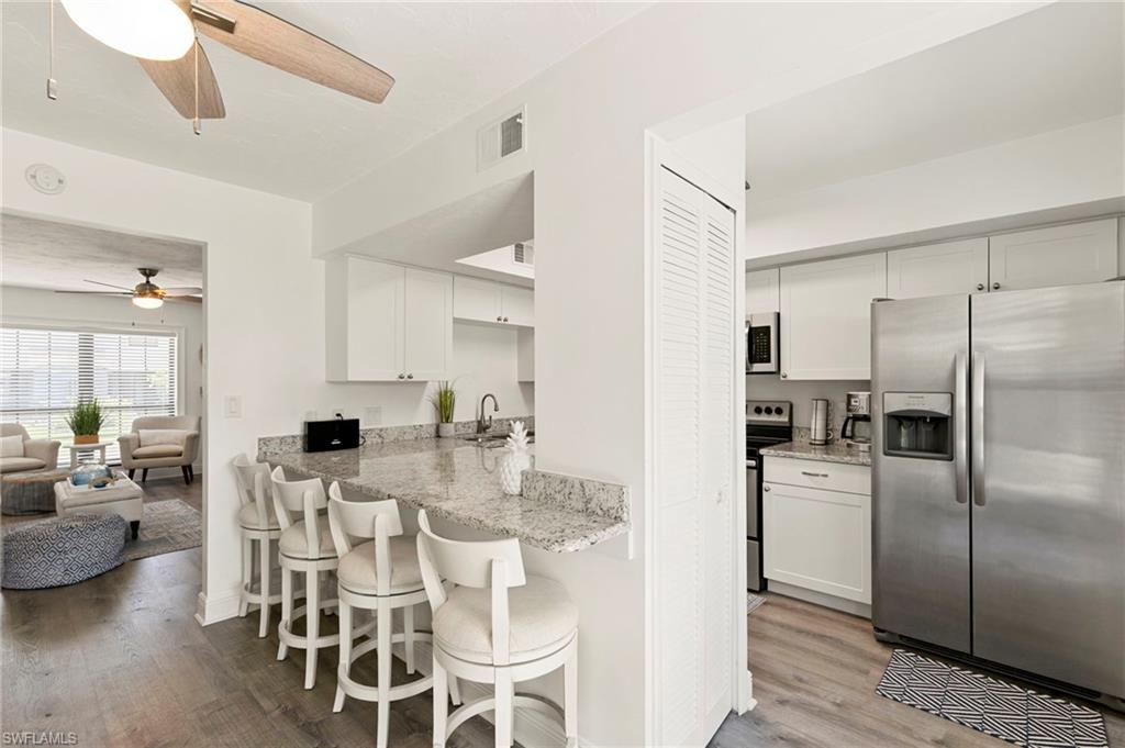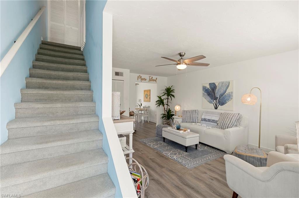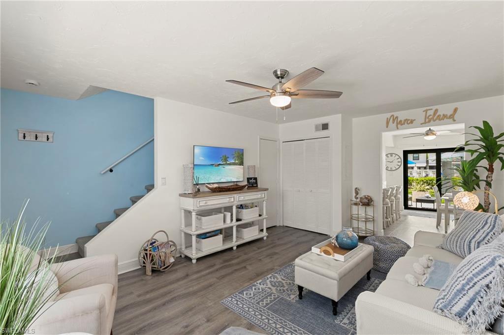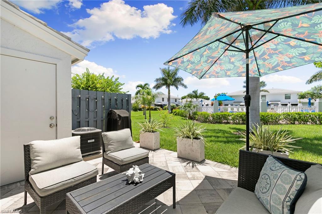 Step into the perfect blend of comfort, convenience, beautifully appointed 2-story condo in the heart of Marco Island. Whether you're looking for a full-time residence, seasonal getaway, or investment opportunity, this property checks all the boxes. The interior boasts a thoughtfully updated kitchen with all newer appliances, a spacious pantry, all impact-resistant windows and doors for added security and peace of mind. Additional features include ample storage, two assigned parking spaces, and a newer AC and hot water heater. Sold turnkey furnished, this home is move-in ready and with high elevation, making ownership stress-free from day one. Step outside to your private paver patio—ideal for sunset dinners bathing the space in golden light. Just steps away, the community pool invites you to relax and enjoy the Florida lifestyle. Centrally located, you’ll love the proximity to pickleball and tennis courts, the library, museum, YMCA, top-rated dining, shopping, and more. And when beach time calls, simply hop on your bike—coastal living doesn’t get more effortless.