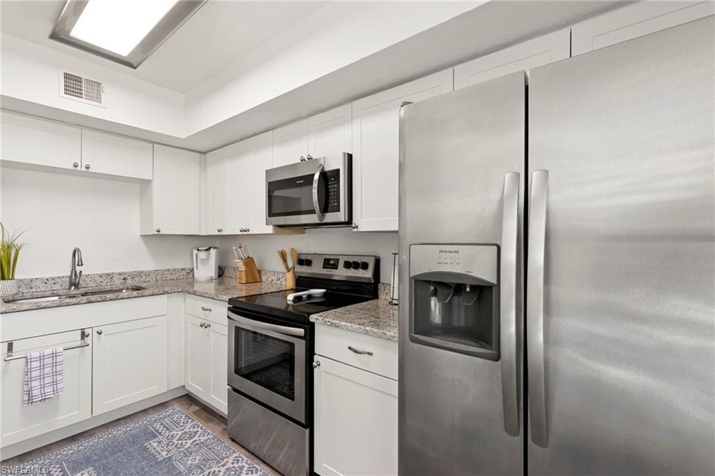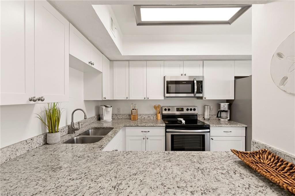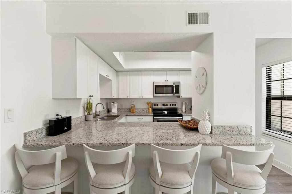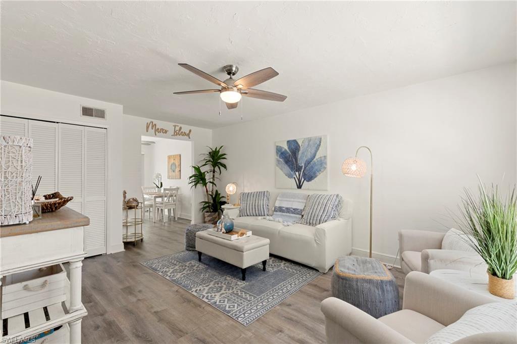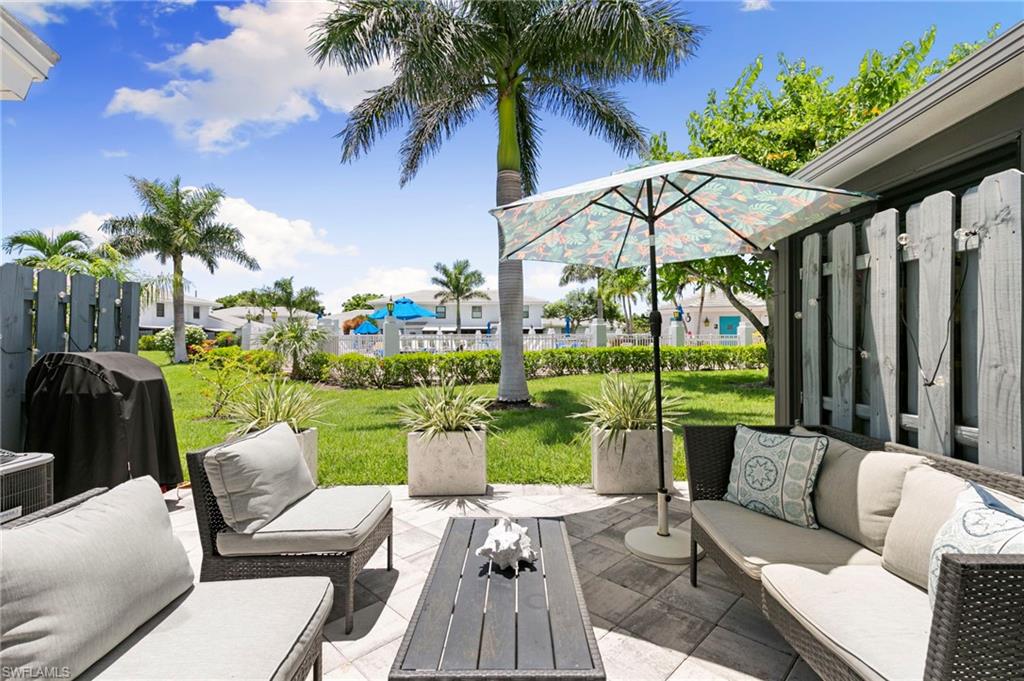 Step into the perfect blend of comfort, convenience, beautifully appointed 2-story condo in the heart of Marco Island. Whether you're looking for a full-time residence, seasonal getaway, or investment opportunity, this property checks all the boxes. The interior boasts a thoughtfully updated kitchen with all newer appliances, a spacious pantry, all impact-resistant windows and doors for added security and peace of mind. Additional features include ample storage, two assigned parking spaces, and a newer AC and hot water heater. Sold turnkey furnished, this home is move-in ready and with high elevation, making ownership stress-free from day one. Step outside to your private paver patio—ideal for sunset dinners bathing the space in golden light. Just steps away, the community pool invites you to relax and enjoy the Florida lifestyle. Centrally located, you’ll love the proximity to pickleball and tennis courts, the library, museum, YMCA, top-rated dining, shopping, and more. And when beach time calls, simply hop on your bike—coastal living doesn’t get more effortless.