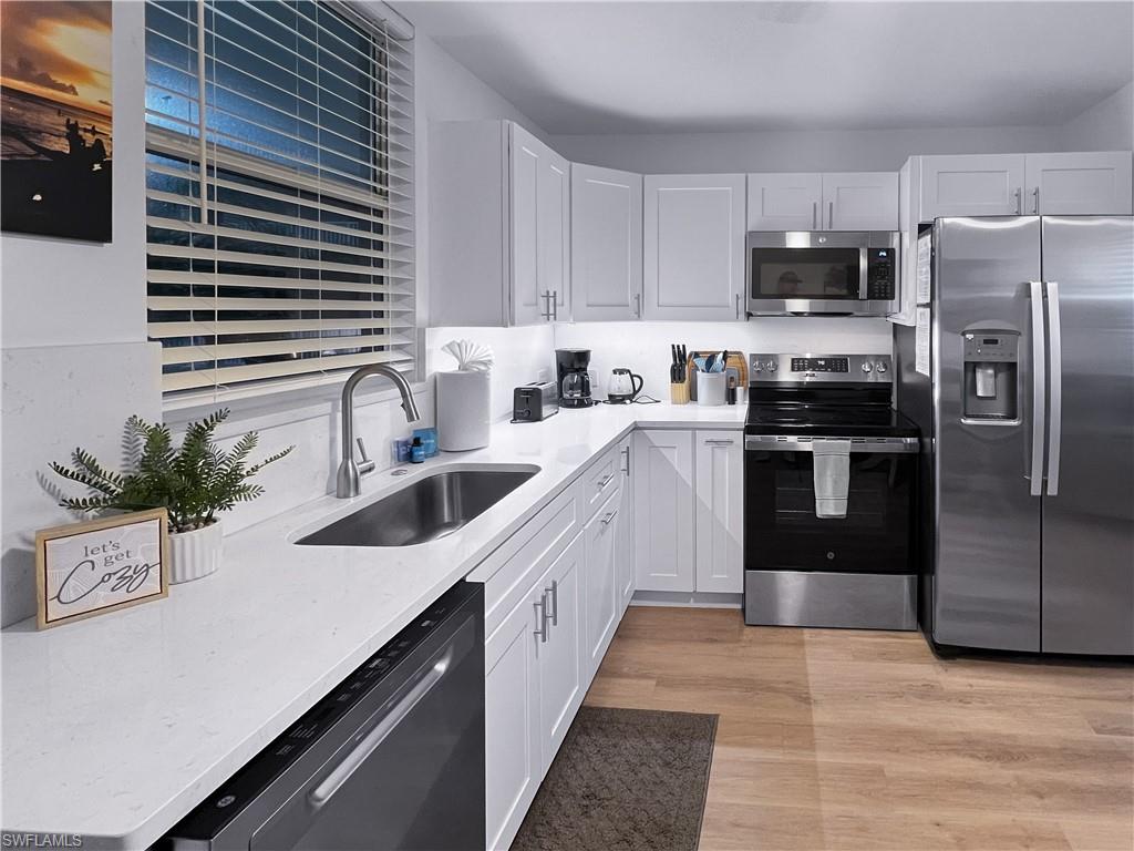 This beautifully renovated condo puts you right in the heart of Bonita’s coastal lifestyle, just steps from the sand and across the street from iconic local favorites like Doc’s Beach House and Barefoot Beach. Whether you’re looking for a smart investment with strong rental potential or your own personal beach retreat, this unit checks all the boxes. Inside, you’ll find a bright open layout with coastal-inspired finishes, including quartz countertops, sleek white shaker cabinetry, and brand-new stainless appliances with warranties in place. The space is thoughtfully furnished with high-end touches like a West Elm sofa, electric recliner, and one of the most comfortable king beds around. A custom walk-in closet and updated bathroom with elevated finishes add both function and style. The lanai is freshly painted and overlooks the lush community grounds. You’ve also got an in-unit washer and dryer, hurricane-impact sliders, a newer AC unit (2024), and a tankless water heater — everything’s ready to go so you can start enjoying or renting from day one. Bonita Beach and Tennis Club is a vibrant community with resort-style amenities, including two heated pools, tennis and pickleball courts, bocce, shuffleboard, basketball, and more. There’s also onsite management, a boat club, and organized activities that make it easy to connect with others. Water, sewer, trash, pest control, and lawn care are all included. With post-renovation prices continuing to climb in the area, now is the time to get in. Opportunities like this in such a prime location don’t last.