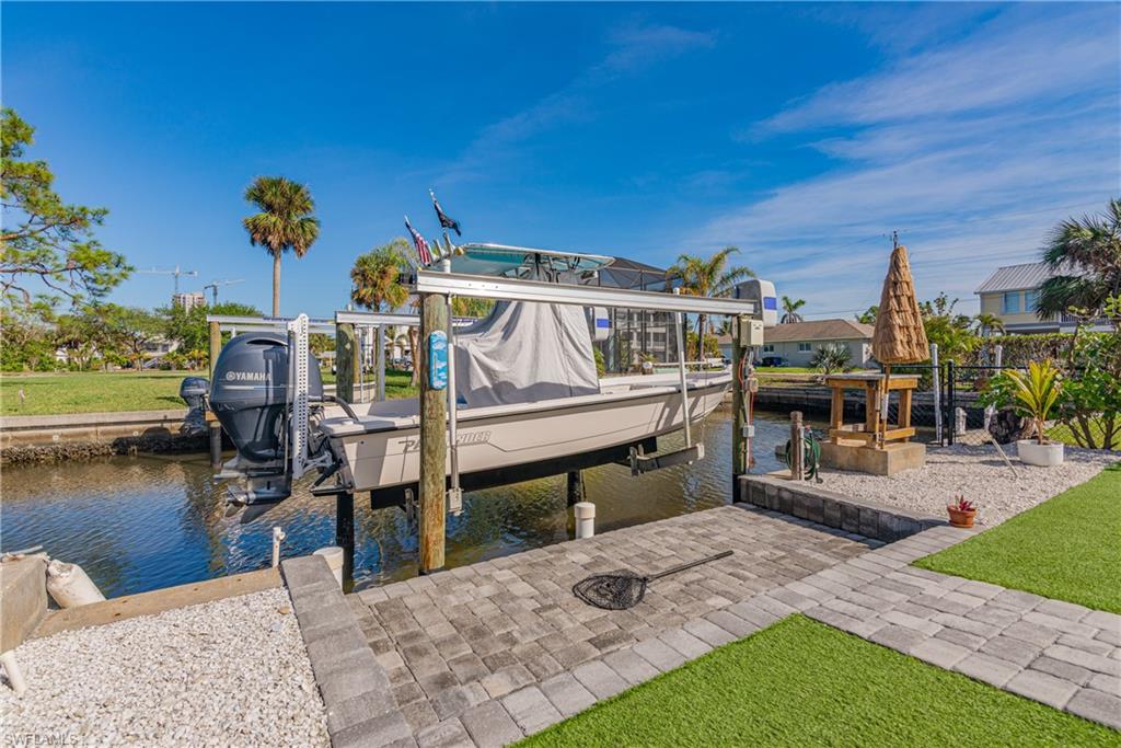 MOVE IN READY GULF ACCESS HOME FOR ONLY $425k!!!!! Estero Bay Shores is a one-of-a-kind community! Come see why this truly is a boater's dream location. This cozy beach style home comes with an electric boat lift and direct gulf access! The Estero Bay Shores community has no HOA restrictions and truly is a hidden gem in SW Florida. Two miles East of New Pass/Lover's Key and the Gulf of Mexico. Enjoy easy water access to Spring Creek and Estero Bay, literally 5-10 minutes from the open Gulf waters! Huge screened in lanai overlooking the canal with a completely fenced in yard. Seller spent most nights relaxing inside the screened patio area and enjoying the sunsets. Low maintenance landscaping with artificial turf out back and crushed shell out front. Many recent upgrades to this home and completely remodeled in 2022. Improvements from the 2022 remodel include all new plumbing, water heater, electric, AC system, tile floors, cabinets, appliances, spray foam insulation and more! Come check out this beautiful home in this friendly and quaint community. Seller's flood policy is transferable according to the insurance agent (additional info can be provided by the listing agent upon request).