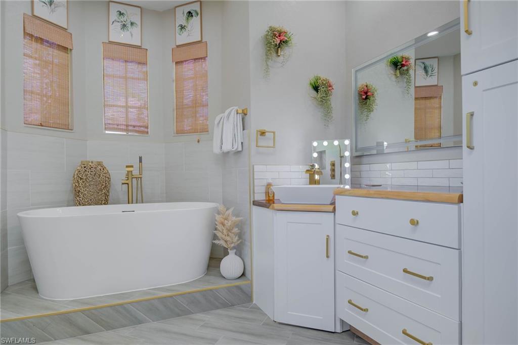 Welcome Home! This beautifully maintained salt water pool home offers the perfect blend of comfort, style and modern upgrades. Step outside to your oversized screened lanai featuring a heated salt water pool, built-in spill over spa, lighted waterfall and elegant travertine tile. An ideal setting for entertaining or simply unwinding. Set on a fenced 1.59 acre lot, this property provides both privacy and plenty of space to enjoy the outdoors. Inside, you'll find brand-new wood like paint tile flooring throughout, all new light fixtures and fans, and a stunning custom master bathroom complete with a luxurious soaking tub and designer tilework. Recent updates ensure peace of mind and convenience, including brand new appliances with oversized washer and dryer, updated plumbing, new reverse osmosis system, new water heater, new pool equipment, and an entire new septic system. Every detail has been thoughtfully updated, making this home truly move-in ready. Don't miss the opportunity to own this exceptional property!