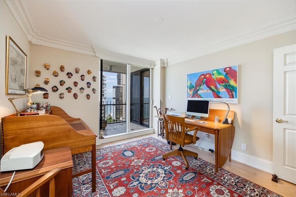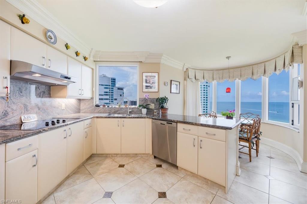 Welcome to this breathtaking Gulf-front residence, perched on the 17th floor of the prestigious Park Shore Tower. Walls of glass fill the space with natural light and frame panoramic views of the coastline. This expansive residence offers a bright, open layout designed for both elegant entertaining and everyday comfort. The kitchen boasts stunning views and is outfitted with granite countertops, stainless steel appliances, and elegant lighting fixtures. The spacious primary suite is a private oasis, featuring a spa-inspired bath wit tiled walk-in shower, soaking tub, bidet, and a customized walk-in closet. Step onto your private balcony to savor your morning coffee while taking in serene views and coastal breezes. The thoughtfully designed floor plan includes a guest suite with an en-suite bath and a third bedroom or office with a private bathroom, which can also function as a powder room for guests. At the end of the day, unwind on the south-facing lanai and watch the sun dip below the Gulf horizon—your front-row seat to spectacular sunsets. Additional highlights include under-building parking, storage, and access to a host of upscale amenities at Park Shore Tower: 24-hour security, a welcoming lobby, fitness center, and a newly updated pool area with a beachfront clubhouse. Just a short stroll away, enjoy the charm and energy of Venetian Village, with its sparkling lights, dining, and boutique shopping. Waterside Shops, Old Naples, and Mercato are also just minutes away. This exceptional residence blends timeless elegance with a relaxed, move-in-ready lifestyle—your perfect coastal sanctuary awaits.