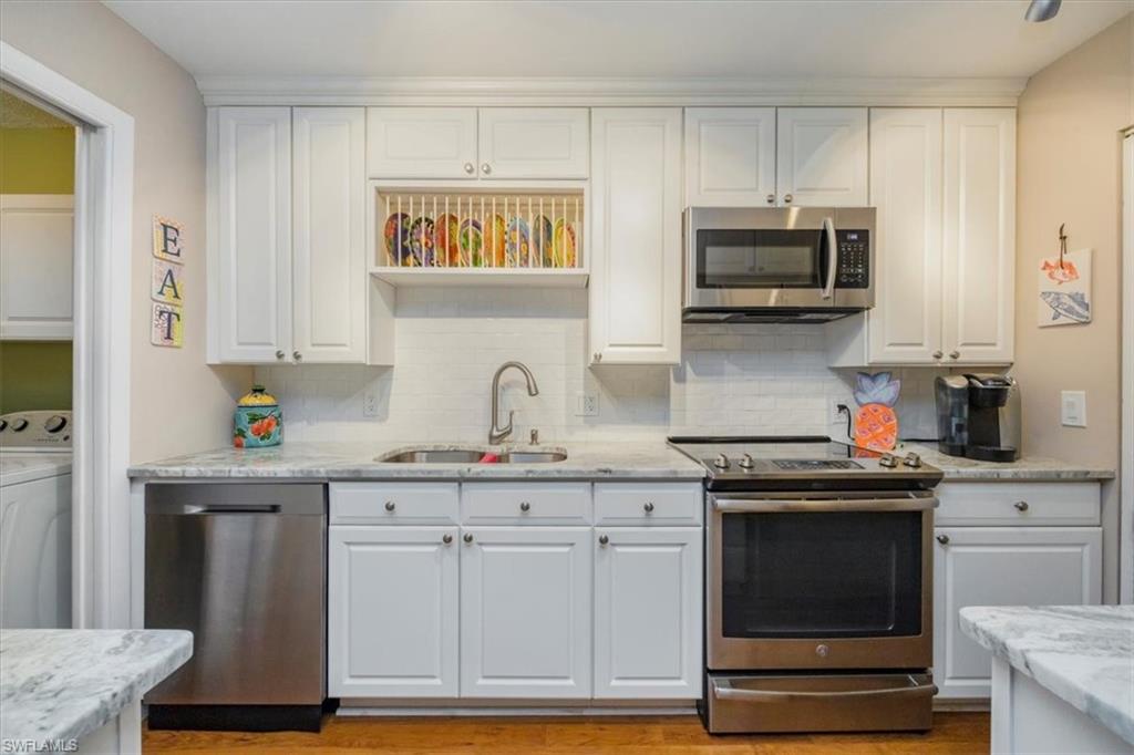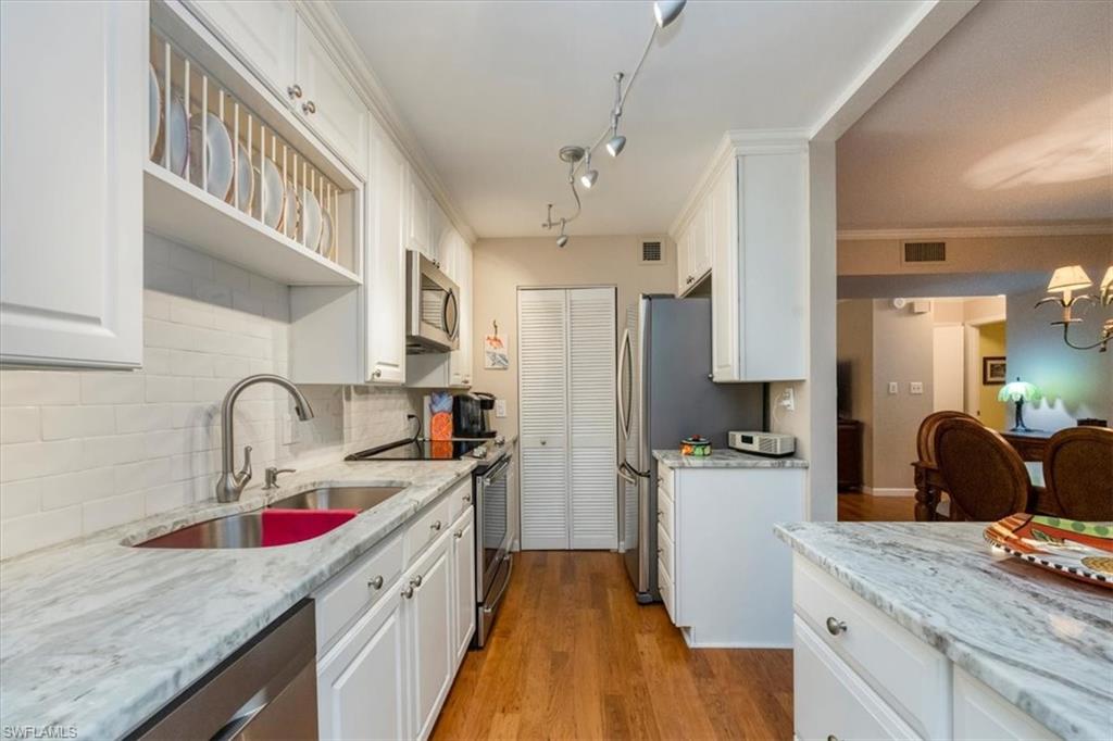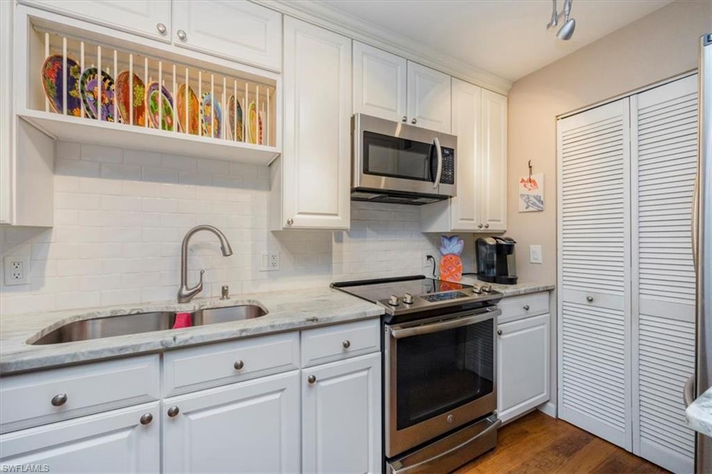 Welcome to Hidden Lake Villas, where resort-style living meets an unbeatable Naples location! This beautifully updated 2-bedroom, 2-bath ground floor condo is less than a mile from the Gulf’s white-sand beaches, vibrant shops, and popular restaurants. Enjoy peace of mind with impact-resistant windows and doors, electric shutters, a brand-new roof and new AC in 2021. The charming kitchen is appointed with stainless steel appliances, granite countertops, and white shaker cabinetry. Enjoy the spacious screened lanai overlooking the tranquil lake. Additional features include crown molding, plantation shutters, and a guest bedroom with a convenient Murphy bed. Hidden Lake Villas offers an active lifestyle with tennis, social activities, gas grills, a clubhouse with fitness room, library, and function space, plus a 37' x 52' geo-thermal heated pool. Residents also have the option to join the Park Shore Association for exclusive beach access at Raymond Lutgert Park. Ideally located in the heart of Naples, this condo is the perfect blend of comfort, convenience, and coastal living.