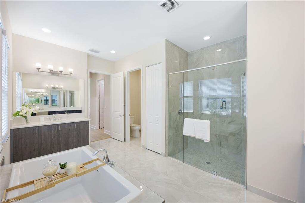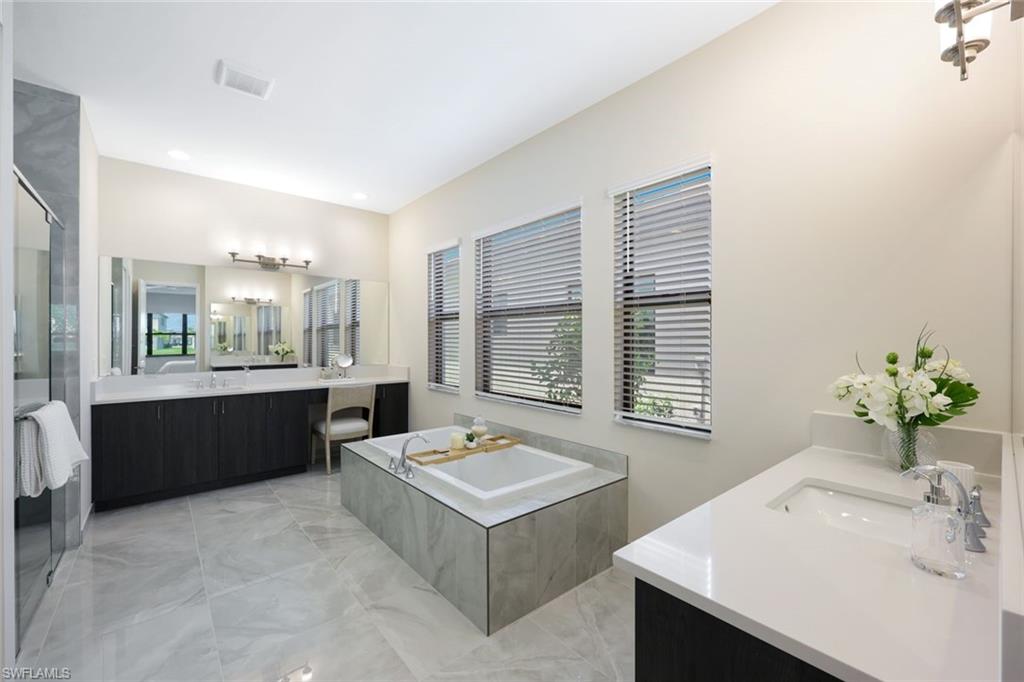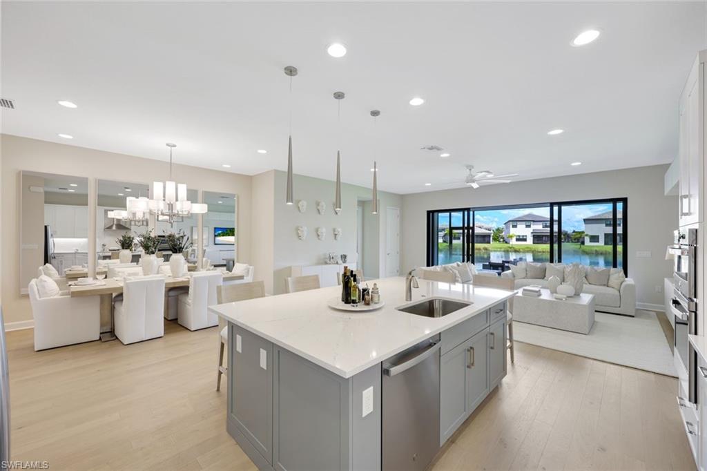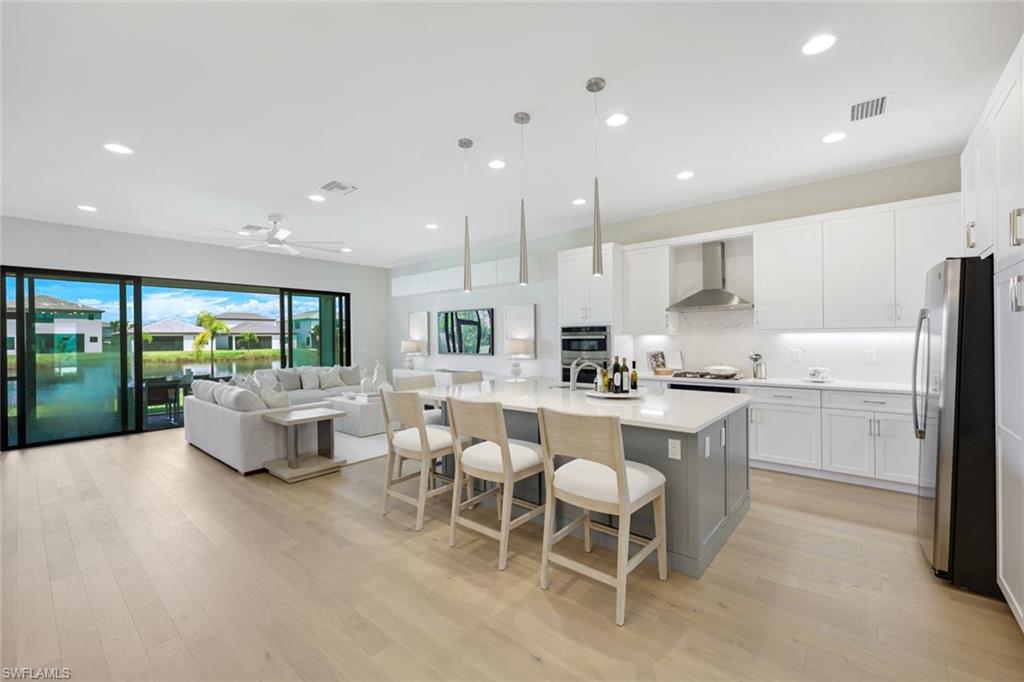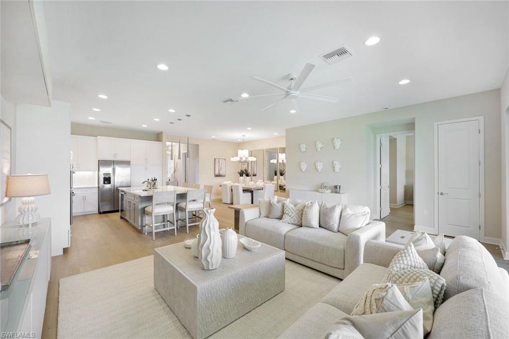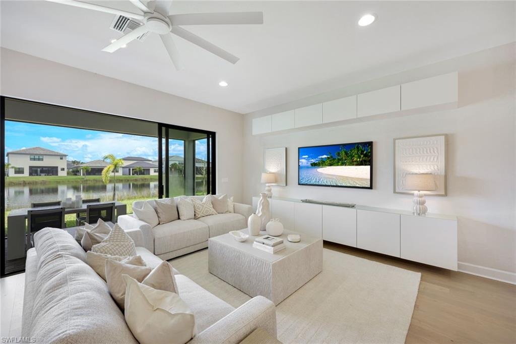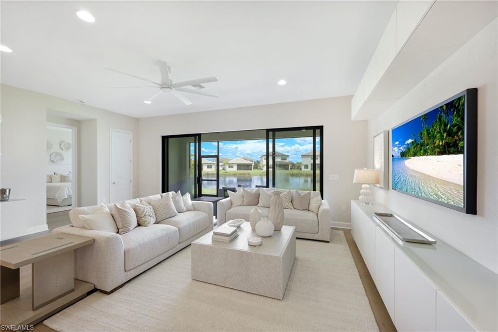 New construction available for Immediate Occupancy! This Furnished "Biscayne" home with Lake Views offers Impact Resistant Windows throughout and has 3 Bedrooms plus 4 Baths, and a 2-Car Garage, an open kitchen with stainless steel GE Appliances and Quartz Countertops. The master bedroom offers a coffered ceiling and spacious closets. Other features include: Glass Entry Door, Wood Flooring in Main areas and Master Bedroom, extended width of driveway and more! RiverCreek is Estero’s hottest new gated community and features numerous amenities for everyone including a 12,000 square foot Clubhouse with Resort–style pool, event room, fitness center, indoor sports court, tennis, pickleball, basketball and more!