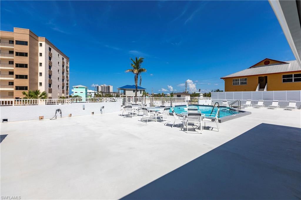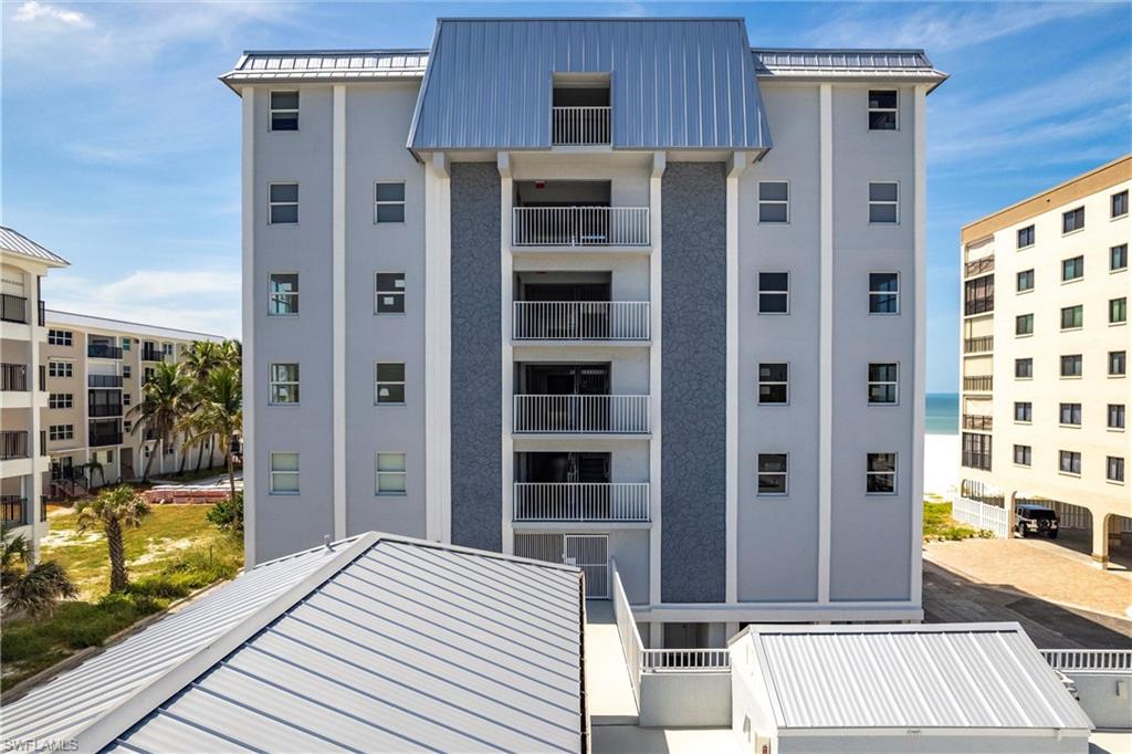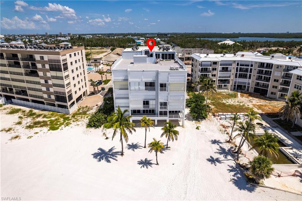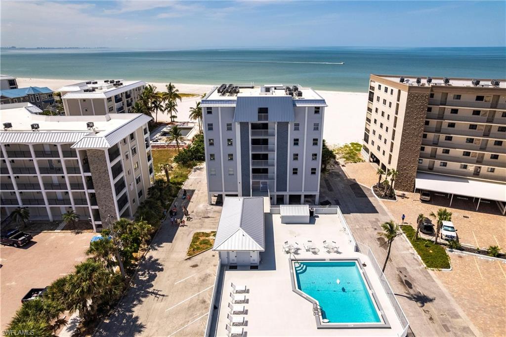 Live Your Beachfront Dream! Step into the perfect opportunity to remodel and create your own coastal masterpiece — right in the heart of Fort Myers Beach on the sparkling Gulf of Mexico. Wake up each morning to the sight and sound of waves, with panoramic views of pristine sand and endless ocean. Just a half-mile stroll or quick trolley ride brings you to vibrant local attractions including Lani Kai Island Resort, Margaritaville, and Times Square. The beach is buzzing again, with beloved local favorites open and ready to welcome you! This fully remediated unit is your blank canvas, ready for you to design your dream waterfront oasis. Enjoy peace of mind with brand-new ductwork, A/C unit, electrical, plumbing, hurricane-rated windows and doors, and fresh drywall — plus all glass is eco-friendly “turtle glass” to protect our cherished sea turtles. Inside, the open-concept layout flows seamlessly from the living area to the kitchen, complemented by a pantry, storage closet, two spacious bedrooms, and two bathrooms. The master bathroom boast a large walk-in closet or storage room to suite your needs. Your assigned covered parking space sits conveniently under the building. The boutique-style building, with just 24 residences, offers charming amenities: mailboxes on the main floor, a pool on the same level as your unit, and a community room perfect for gatherings. Structurally refreshed to the latest codes prior to 2022, it blends safety with style. From your home, step directly onto the sand for a morning walk, or sip coffee while soaking in breathtaking ocean views. Flexible rental options allow 30- to 60-day leases up to 6 times per year, and yes — your furry companion is welcome! The beach is calling. The opportunity is here. All that’s missing is your vision.