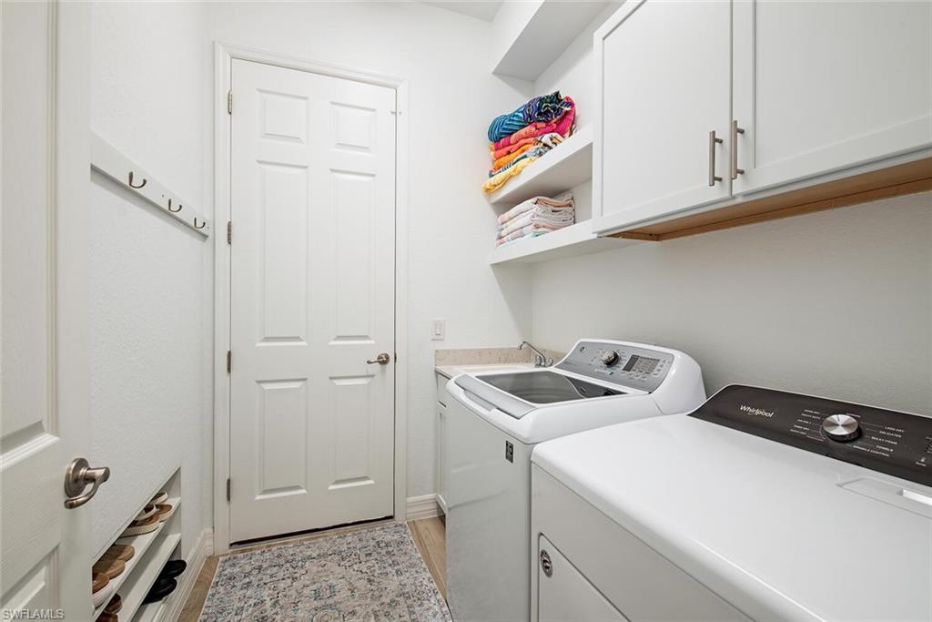 Welcome to your dream home nestled in the sought-after LaMorada community! This stunning and immaculate residence offers 2,884 square feet of living space including 4 bedrooms, 4 bathrooms and a spacious 2nd floor bonus room with a full bath, perfect for guests or entertaining. As you step outside, take in the breathtaking lake views from your private lanai, which sets the stage for exceptional outdoor living. Dive into relaxation with your serene pool and spa, or cook up a feast in the convenient outdoor kitchen complete with additional cooktop, all while savoring the tropical landscape. Inside, the heart of the home awaits you—a dream island kitchen boasting quartz countertops and stainless-steel appliances including a 5-burner gas cooktop. Elegant details abound, with wood-look tile floors, crown molding, 8’ tall doors and volume tray ceilings up to 10’9” that elevate the overall ambiance of this inviting space. Recent improvements include fresh interior paint throughout, new light fixtures, a brand-new pool heater, a new saltwater system for the pool and the pool controls were upgraded with WiFi capability. Living in LaMorada means adopting a lifestyle filled with activities and amenities including a covered poolside restaurant and bar. The luxurious 13,000 square foot clubhouse includes a state-of-the-art fitness center, a culinary arts center for cooking classes and wine tastings, a theater, community room, a spa treatment room and a library room. Outside there is a resort-style pool with lap lanes and three sun shelves as well as a variety of recreational options like tennis, pickleball, and bocce. Plus, you’re just a short 5-minute drive from Founder’s Square, where shopping and dining options abound. Located within a short drive of Logan Landings, Mercato, Naples' vibrant 5th Avenue and its pristine beaches, this property truly offers the best of both worlds—a serene retreat with immediate access to the lively heart of Naples. There are no CDD fees in LaMorada. Don’t miss your chance to call this exceptional property your home!
