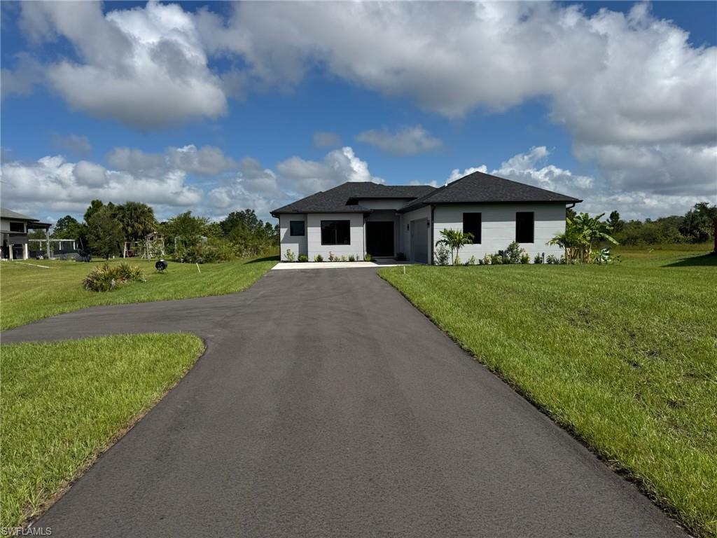 *PRICED TO SELL FAST* Home built in the area of Golden Gate Estates on a 1.14ac 100% upland lot, features 3 bedrooms + Den, 2 bath, & 2 car garage! Living area of 1,656 sq.ft and a grand total of 2,398 sq.ft. Upgrades include porcelain plank tile throughout, crown molding, quartz countertops, stainless steel appliances, and solid wood cabinets! The kitchen has 2 pantries. The living room and master suite boast tray ceilings. Master wing features an oversized bedroom, 1 spacious closet, double vanity, and glass door enclosed shower. The outside of this home will not disappoint either with a beautiful landscape, auto sprinkler system, and a summer kitchen in the large lanai. Impact resistant windows/doors! Your brand new home will be ready in July 2025! Pictures are from another same model home.