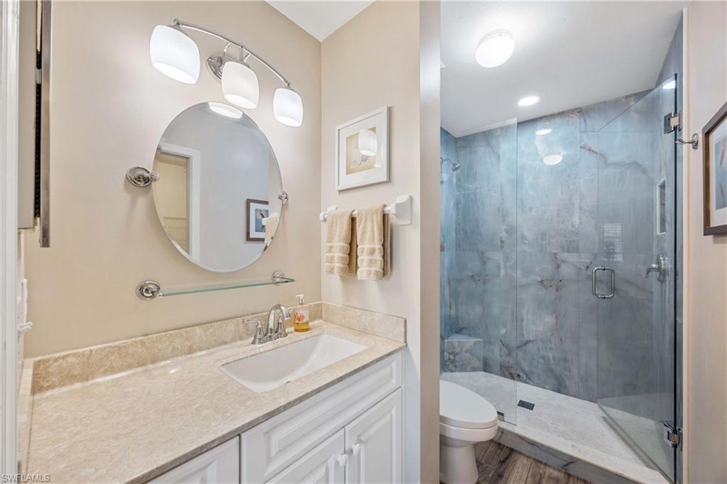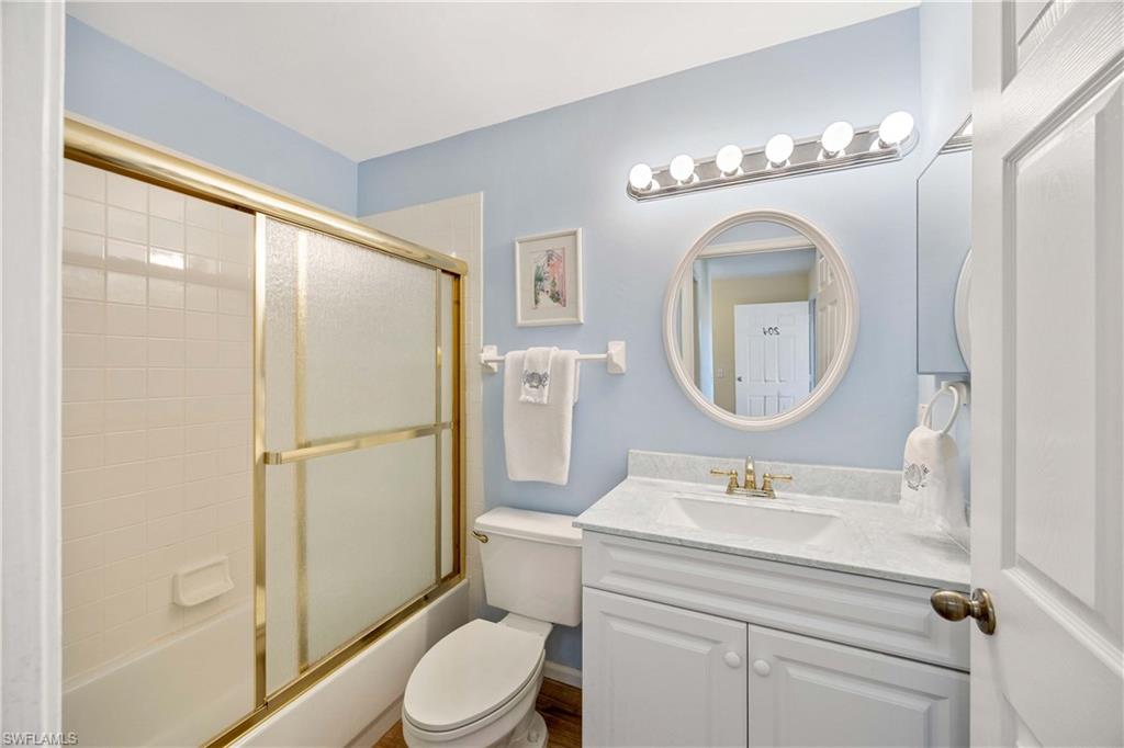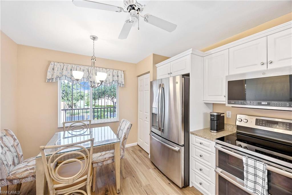 Step into effortless Florida living in this stylishly updated and fully furnished condo, where a FULL GOLF MEMBERSHIP is included. From the moment you walk in, you’ll feel at home in this bright and open space designed for both comfort and entertaining. The remodeled kitchen is a dream for any home chef, featuring quartz countertops, custom cabinetry, and stainless steel appliances. The open-concept layout flows seamlessly into the living and dining areas, creating a warm, welcoming vibe throughout. Wake up to serene lake views from the sun-filled lanai, the perfect spot to enjoy morning coffee or evening drinks. The primary suite is your private escape with a beautifully updated bath boasting cultured marble countertops. Need room for guests? The versatile den comes equipped with a Murphy bed to comfortably accommodate visitors. Enjoy peace of mind with all new plumbing (polybutylene piping replaced) and an upgraded electrical panel—no big-ticket updates needed here. Located in Glen Eagle Golf & Country Club, one of Naples’ most sought-after communities, you’ll enjoy an unbeatable amenity package: championship golf, resort-style pool, bocce, tennis, fitness center, dining, a full golf simulator, and a packed social calendar. You’re also just a short drive to Olde Naples, the beach, shopping, and dining hotspots. Whether you're looking for a seasonal retreat or full-time residence, this condo offers the ideal blend of lifestyle and location. Just bring your golf clubs — paradise awaits.