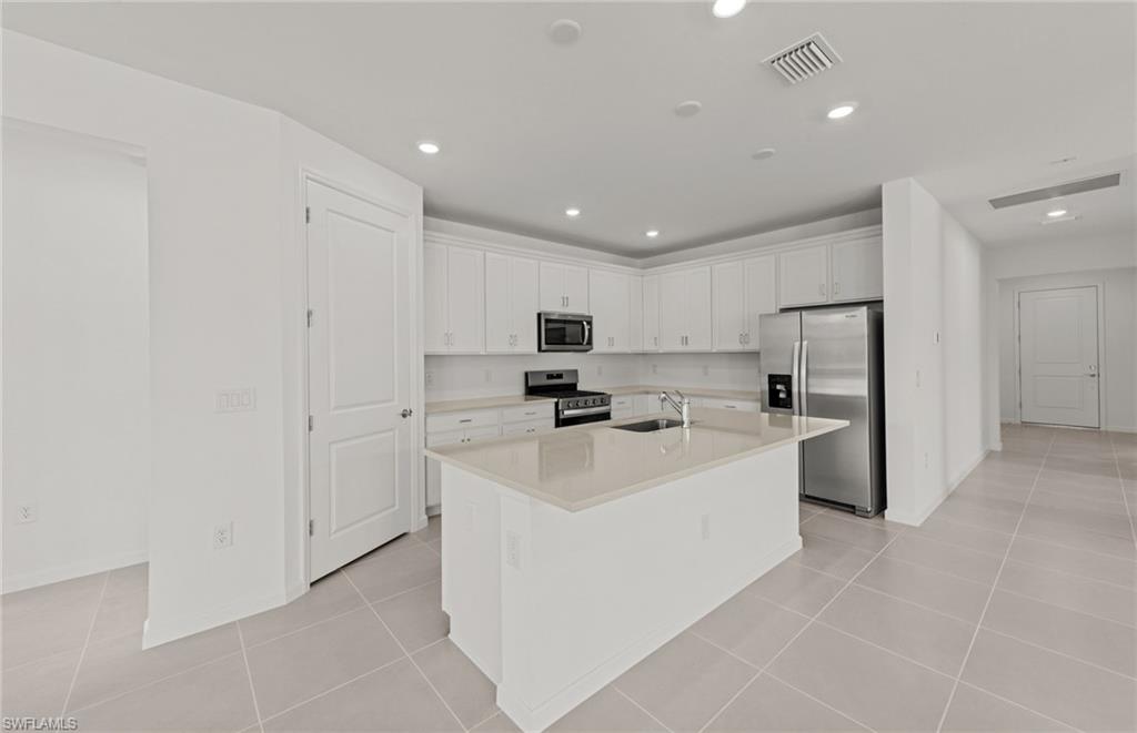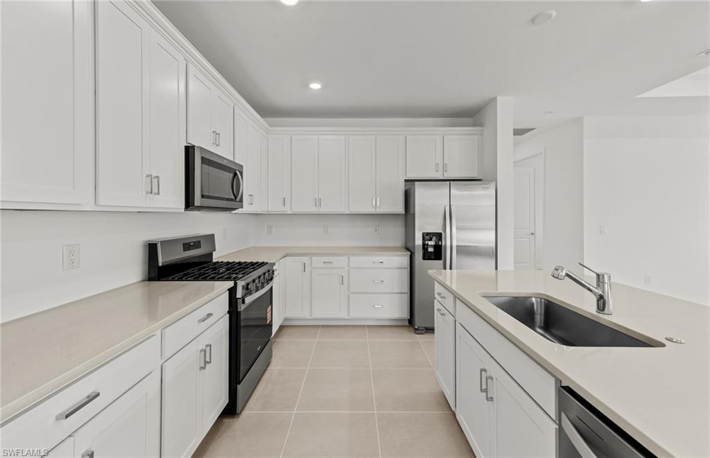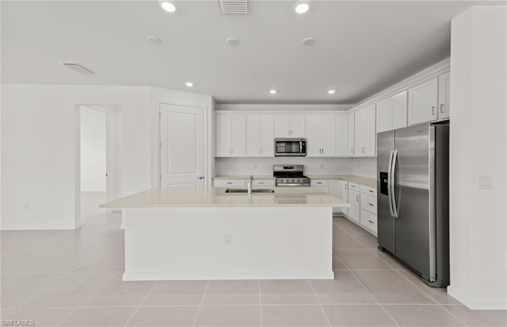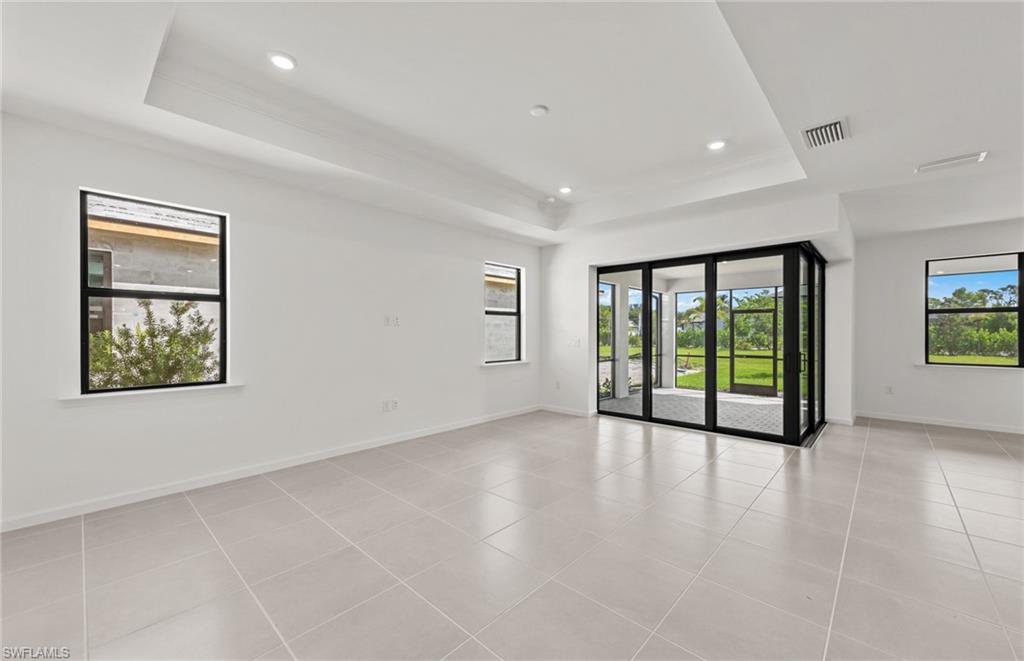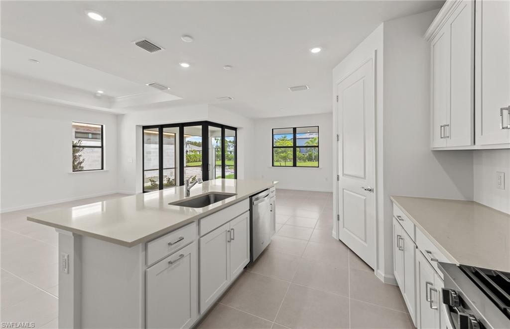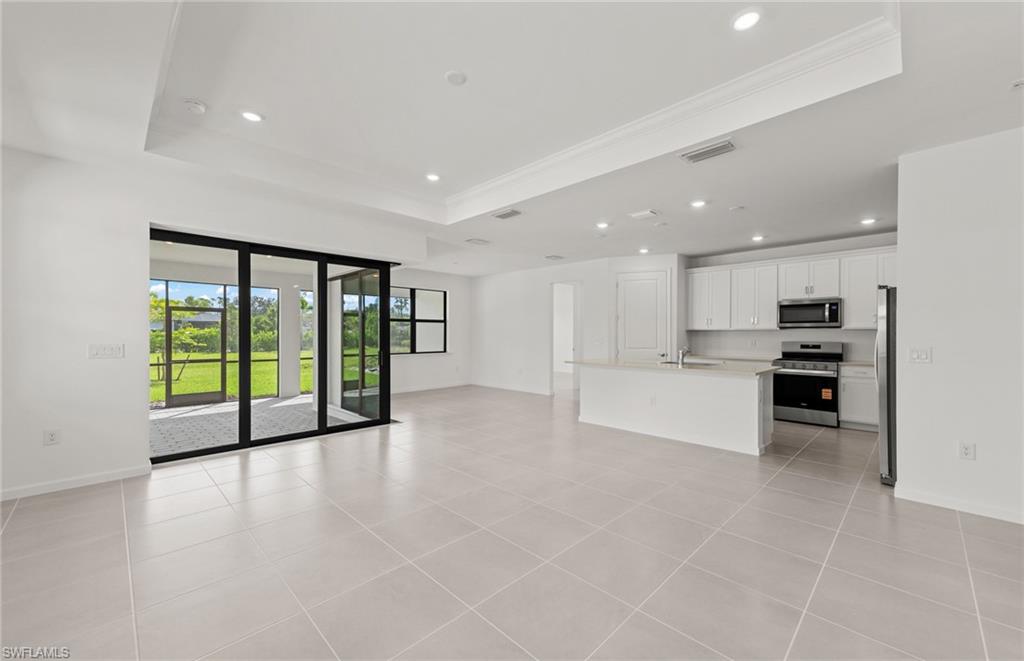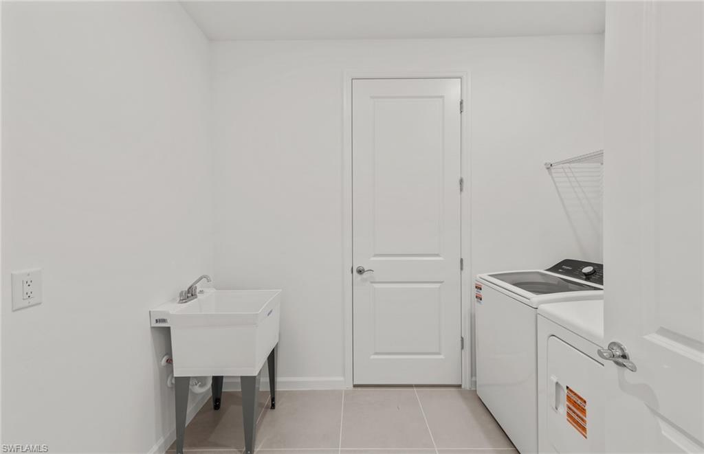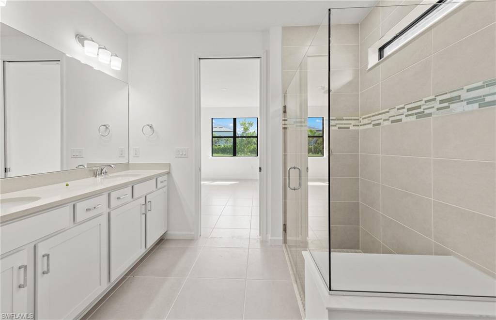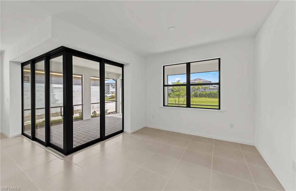 Welcome to the Mystique, a thoughtfully designed 3-bedroom, 2-bath home featuring a spacious den at the entry and a 2-car garage. This home is filled with high-end upgrades, including a stunning zero corner sliding glass door, 8' interior doors, and 22x22 tile flooring throughout. The gathering room is enhanced with a tray ceiling, while the laundry room includes a convenient sink. The kitchen showcases white cabinetry paired with sleek gray quartz countertops. In the owner’s suite, enjoy an upgraded shower with heavy glass doors and tile that extends to the ceiling. Additional highlights include a tile roof and impact-resistant windows for peace of mind. Located in Bonita Del Sol, this community offers something for everyone, with plans for 248 future homes, a community pool, walking path, low HOA fees, and no CDD—all in a prime Bonita Springs location close to shopping, dining, beaches, and more. Photos are from a furnished model. Options for this home may vary.