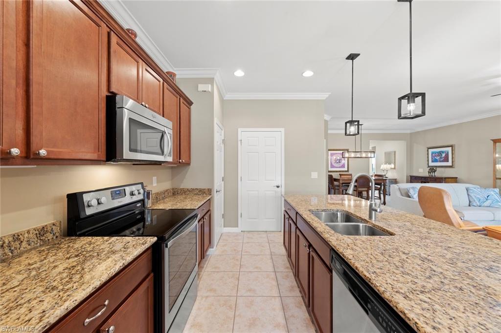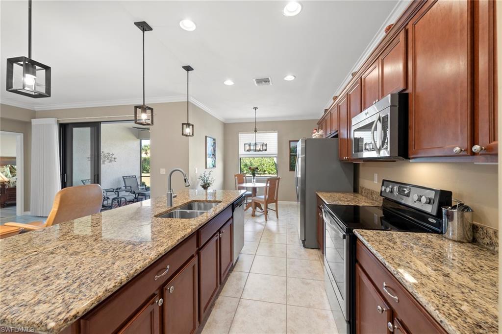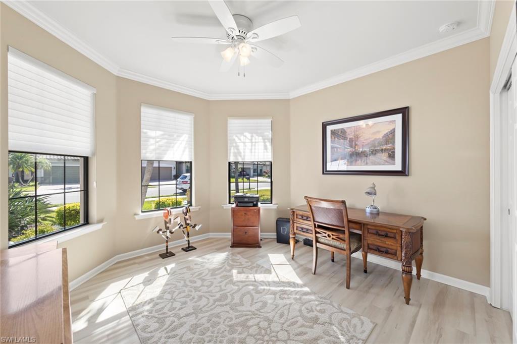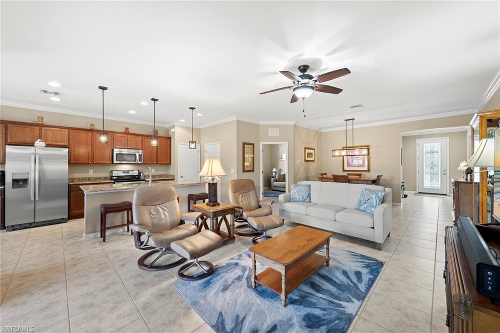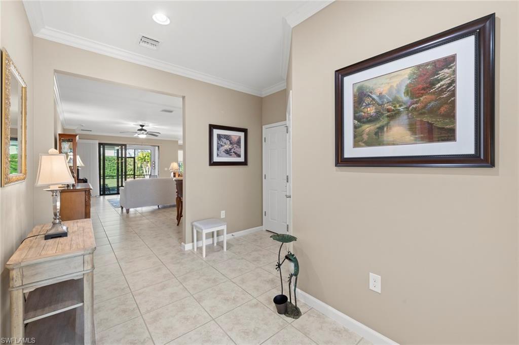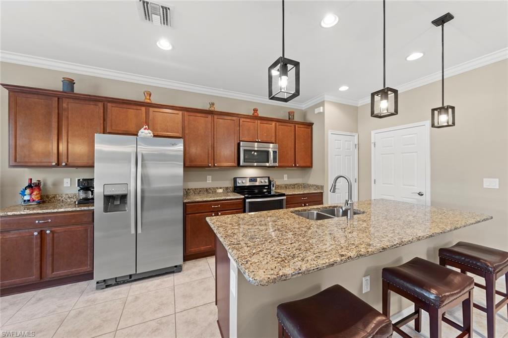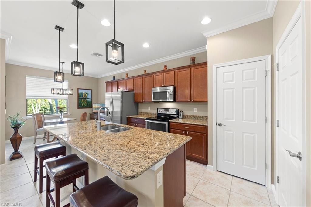 LOCATION LOCATION LOCATION! No flood zone, Impact windows , and Located in the sought-after gated community of The Preserve at Corkscrew. This Immaculate home was built by Pulte builders and offers an open great room with 3 bedrooms + den, 2 bathrooms, and 1,912 square feet of thoughtfully designed living space. The home has been freshly painted inside and out and boasts upgraded lighting fixtures, luxury vinyl tile flooring in the bedrooms and den, and crown molding throughout the main living areas and primary suite. The kitchen features granite countertops, stainless steel appliances, an expansive island, and rich wood cabinetry with elegant crown molding. A spacious primary suite offers a serene retreat, an ensuite bath with dual vanities, a soaking tub, and a glass-enclosed shower. Additional highlights include a newer A/C, impact windows and doors, epoxy-coated garage floors with a 4-foot extension, and a screened front door enclosure. The home’s screened lanai and large backyard provide the perfect space for outdoor relaxation, while new landscaping enhances the curb appeal. Residents of Preserve at Corkscrew enjoy low HOA fees and a wealth of resort-style amenities, including a clubhouse, community pool and spa, exercise room, pickleball, tennis, basketball, and more. Beyond the amenities, Preserve at Corkscrew offers a prime Estero location, placing residents just minutes from shopping, dining, and entertainment at Coconut Point, Miromar Outlets, and Gulf Coast Town Center. Nature lovers and beachgoers will enjoy easy access to nearby state parks, golf courses, and pristine Gulf beaches. With quick access to I-75 and Southwest Florida International Airport, commuting and travel are a breeze. Whether you seek an active lifestyle or a tranquil retreat, this beautifully upgraded home in Preserve at Corkscrew offers the best of both worlds!