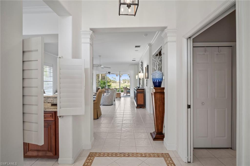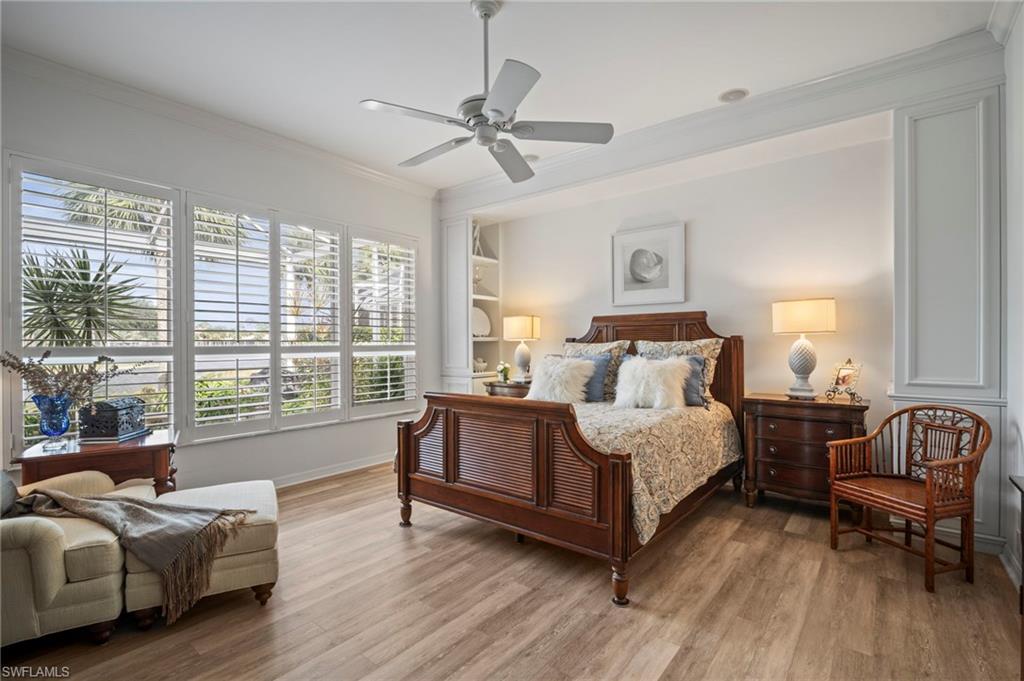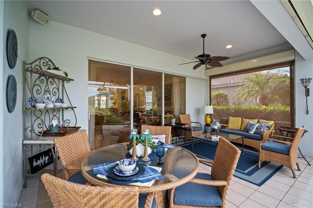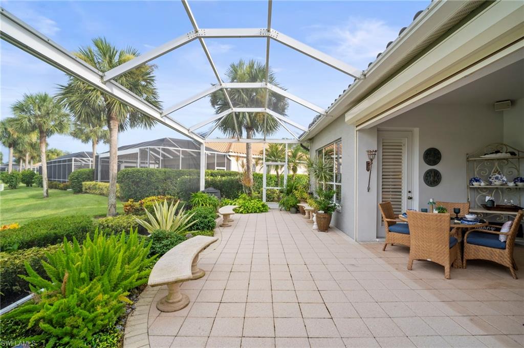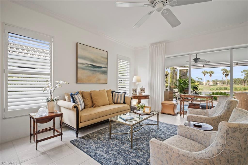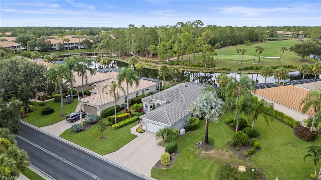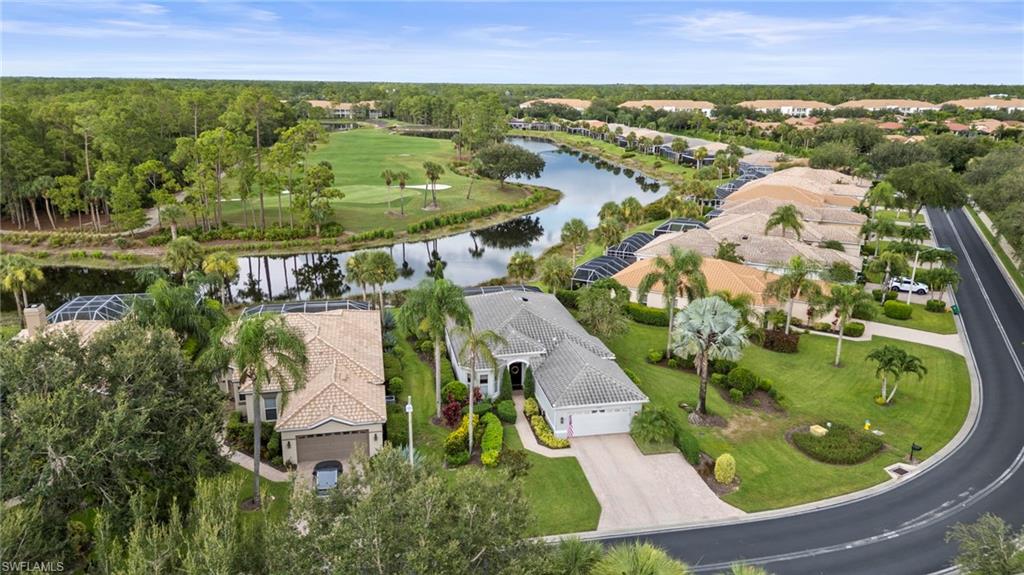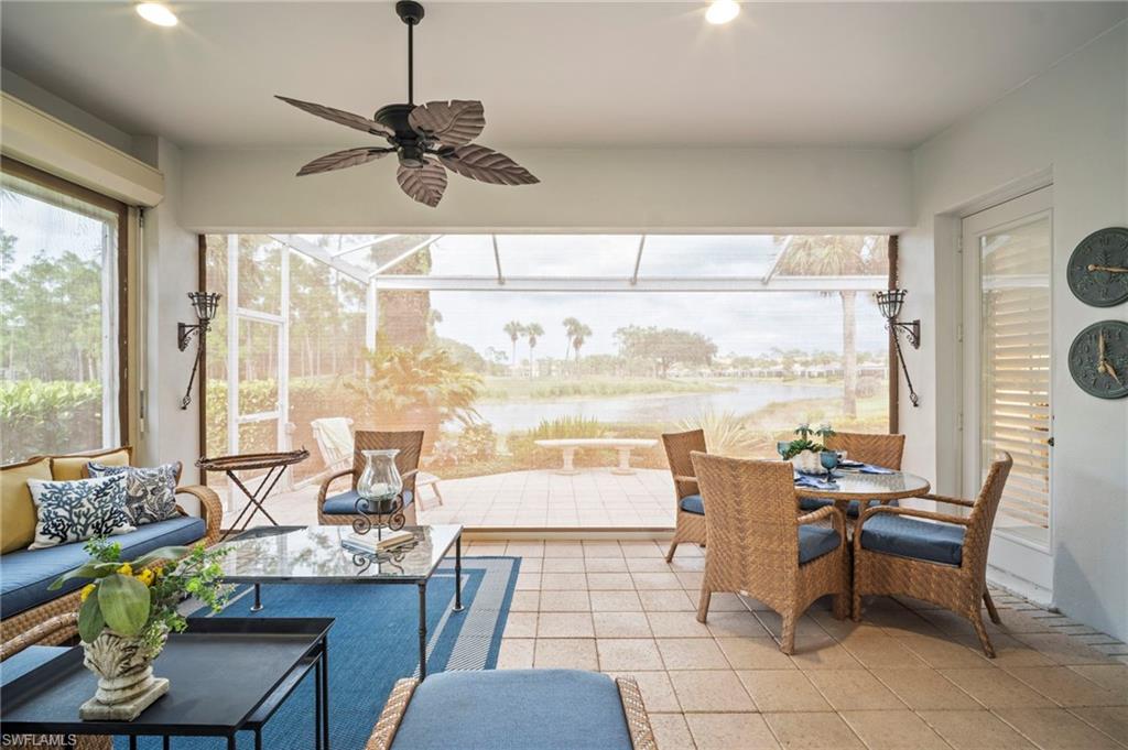 This is the sought after AUGUSTA floorplan. We call it VILLA BELVEDERE (“beautiful view”) with the spectacular and unequalled “Million Dollar “ view of the meandering lake waters and golf course . Here on your LANAI is where you will enjoy incredible sunrises over the 12th hole while sipping your morning coffee. The BREAKFAST NOOK in KITCHEN features a custom designed banquette with extra storage space as well. GUEST BATH is updated with custom cabinetry topped with Carrara marble and white Subway tiled Shower . Toilet fitted with LUXE Bidet MASTER BEDROOM features on either side of the bed custom built-in bookshelves and cabinets . CALIFORNIA CLOSET in MBR maximizes every inch of space . MASTER BATHROOM has custom cabinets topped with Travertine Marble (not granite) A wall of Travertine forms the counter to ceiling height backsplash . The bathroom contains a soaking tub and tiled glass enclosed shower . Toilette fitted with LUXE Bidet. OFFICE/DEN contains an endless amount of cabinet space and display bookshelves . A custom made file cabinet allows for a slide out printer shelf and slide out paper shredder . HOME TECH Service contract for appliances is transferable and includes Dishwasher, Garbage disposal, Refrigerator, Range, Washer & Dryer, Microwave, Hot Water Heater, AC. Extended warranty expires 2028. Full house sound system with ceiling speakers in Den, MBR, LR, and Lanai. FRONT DOOR is equipped with a Phantom Screen which allows for cross ventilation. Landscape Architect designed LANAI GARDEN features custom made Garden Benches and automatic irrigation system. The LANAI has a Motorized retractable Hurricane screen effective up to winds of 150 mph. Rain or shine, you can enjoy the lanai year 'round. These screen shutters retain about 75% of the air conditioning. Power outages are a thing of the past, thanks to the newly installed "$20,000 WHOLE HOUSE GENERAC GENERATOR