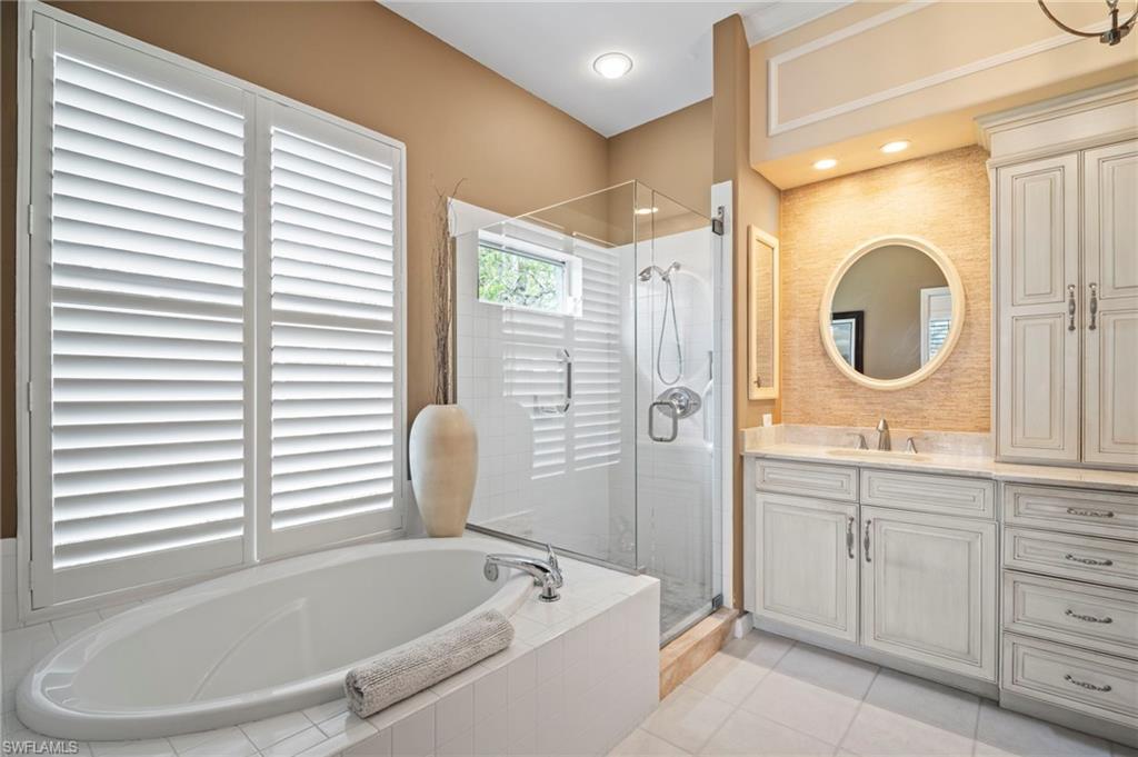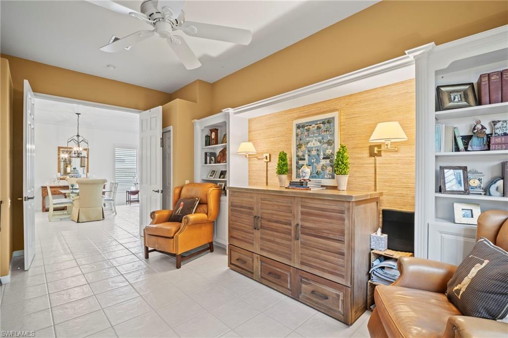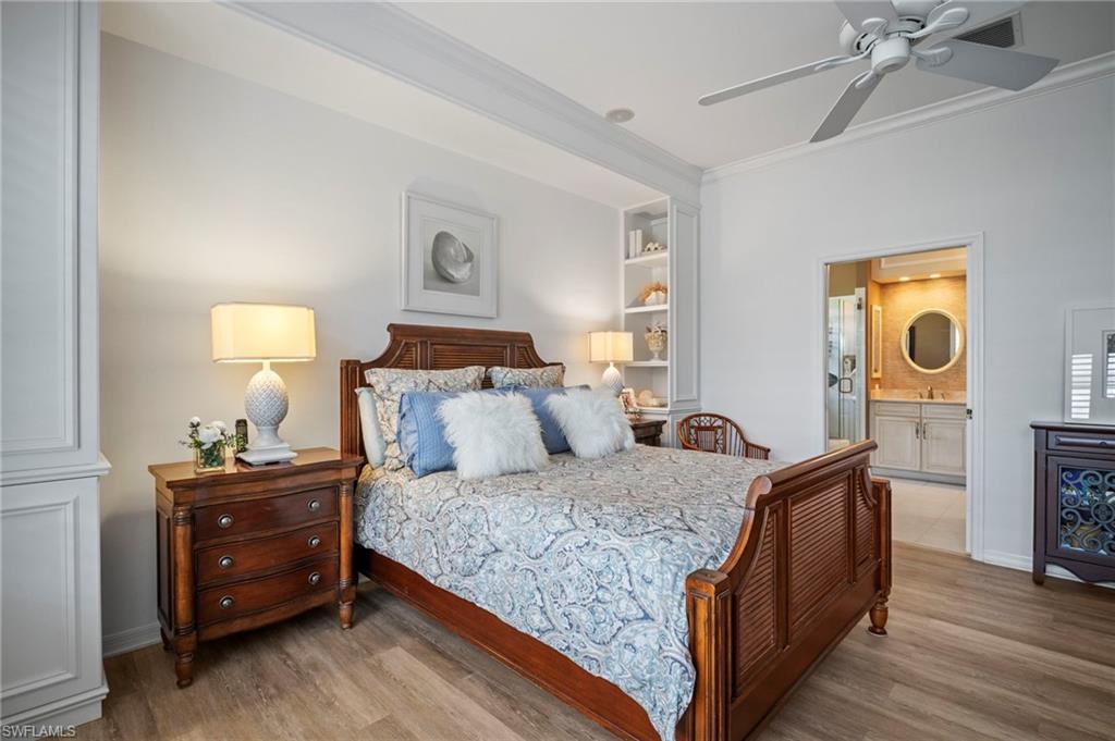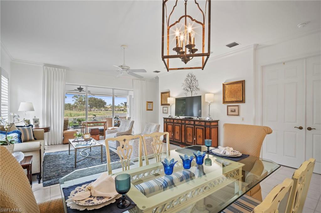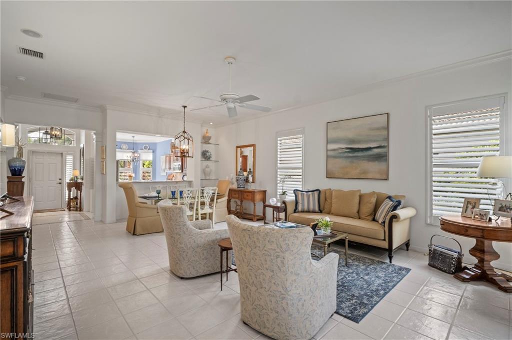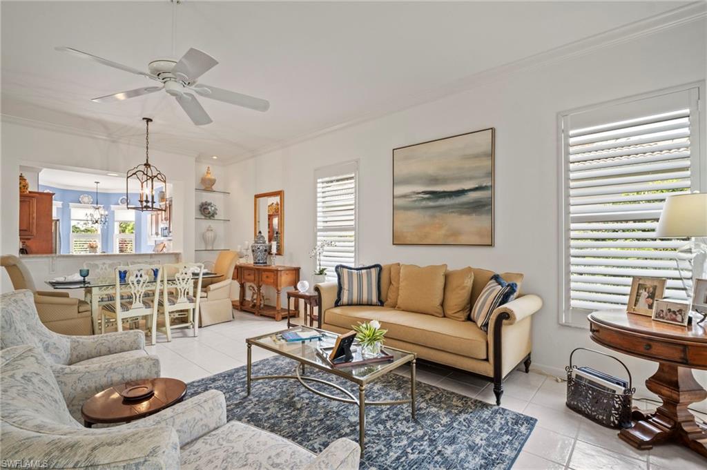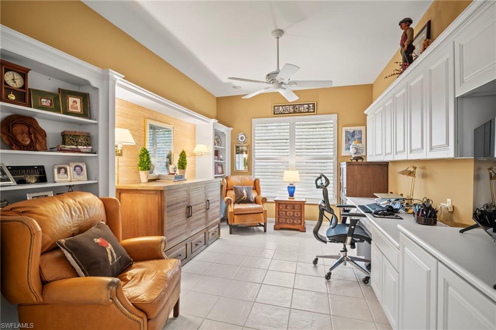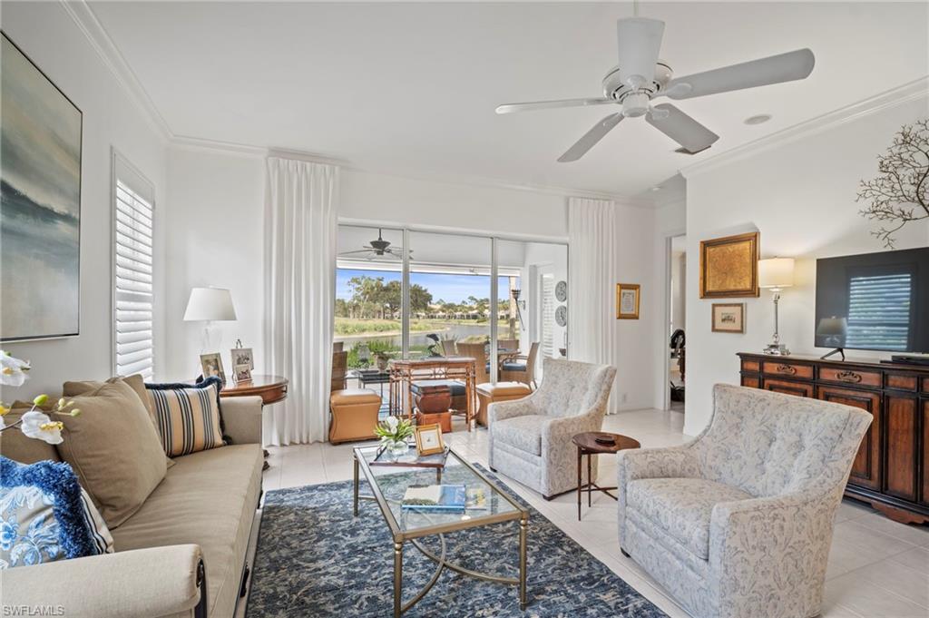 This is the sought after AUGUSTA floorplan. We call it VILLA BELVEDERE (“beautiful view”) with the spectacular and unequalled “Million Dollar “ view of the meandering lake waters and golf course . Here on your LANAI is where you will enjoy incredible sunrises over the 12th hole while sipping your morning coffee. The BREAKFAST NOOK in KITCHEN features a custom designed banquette with extra storage space as well. GUEST BATH is updated with custom cabinetry topped with Carrara marble and white Subway tiled Shower . Toilet fitted with LUXE Bidet MASTER BEDROOM features on either side of the bed custom built-in bookshelves and cabinets . CALIFORNIA CLOSET in MBR maximizes every inch of space . MASTER BATHROOM has custom cabinets topped with Travertine Marble (not granite) A wall of Travertine forms the counter to ceiling height backsplash . The bathroom contains a soaking tub and tiled glass enclosed shower . Toilette fitted with LUXE Bidet. OFFICE/DEN contains an endless amount of cabinet space and display bookshelves . A custom made file cabinet allows for a slide out printer shelf and slide out paper shredder . HOME TECH Service contract for appliances is transferable and includes Dishwasher, Garbage disposal, Refrigerator, Range, Washer & Dryer, Microwave, Hot Water Heater, AC. Extended warranty expires 2028. Full house sound system with ceiling speakers in Den, MBR, LR, and Lanai. FRONT DOOR is equipped with a Phantom Screen which allows for cross ventilation. Landscape Architect designed LANAI GARDEN features custom made Garden Benches and automatic irrigation system. The LANAI has a Motorized retractable Hurricane screen effective up to winds of 150 mph. Rain or shine, you can enjoy the lanai year 'round. These screen shutters retain about 75% of the air conditioning. Power outages are a thing of the past, thanks to the newly installed "$20,000 WHOLE HOUSE GENERAC GENERATOR