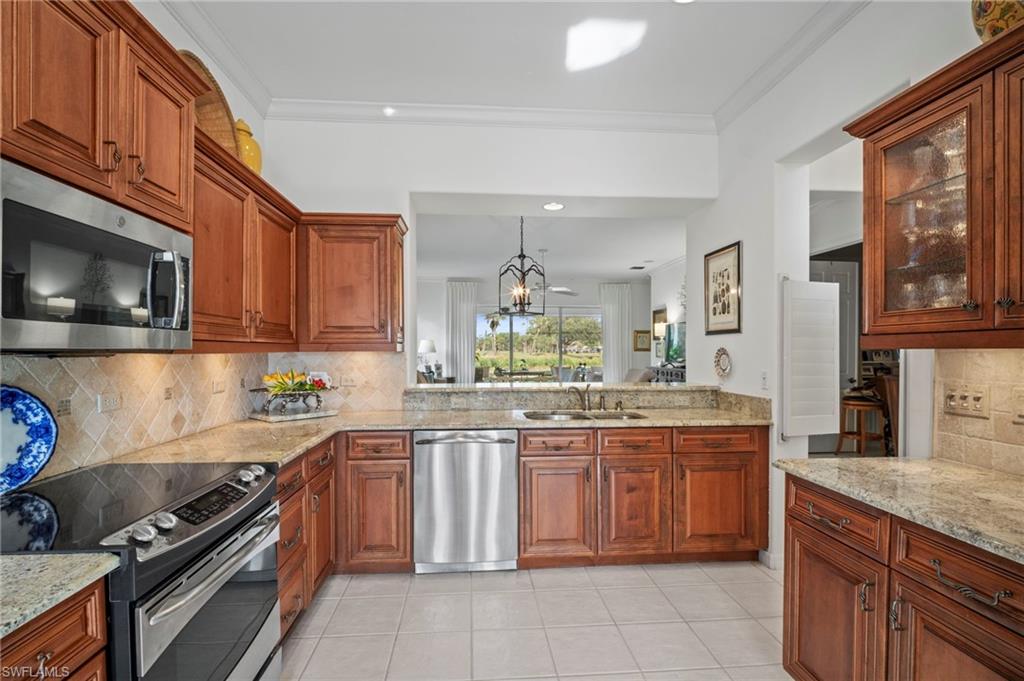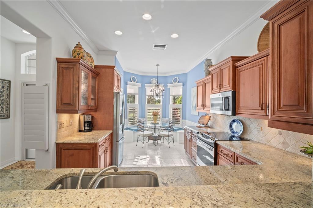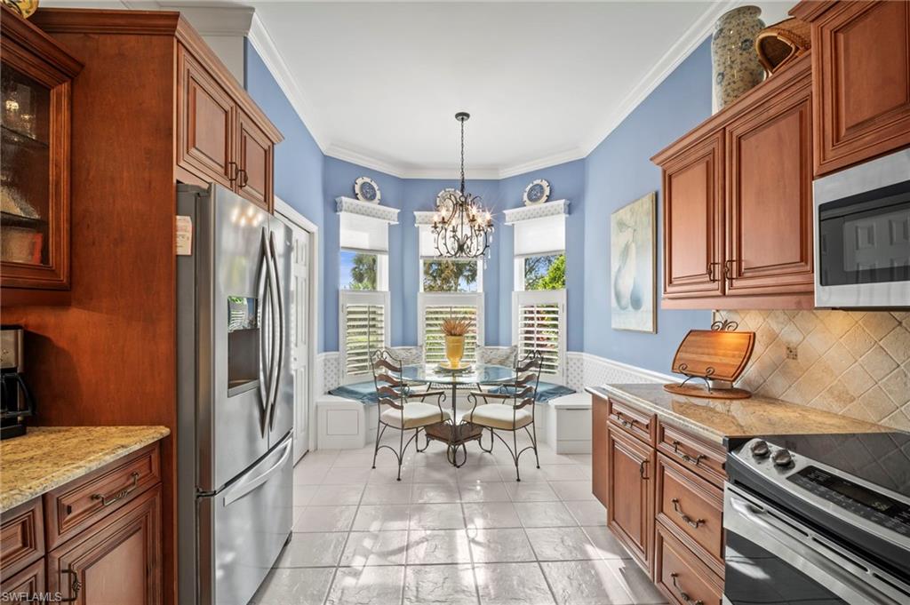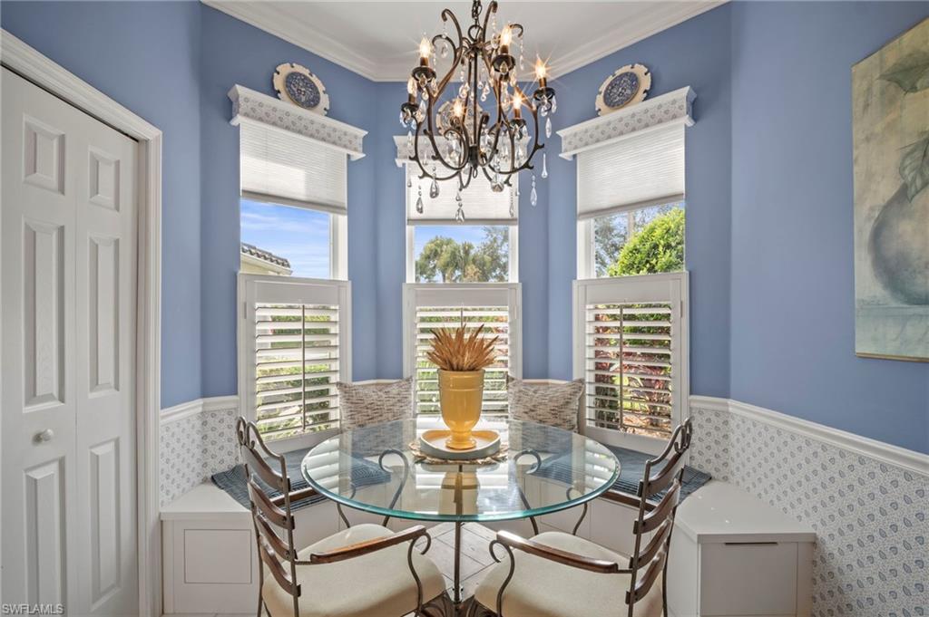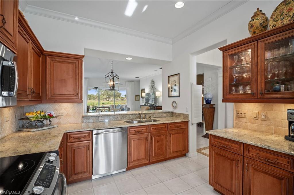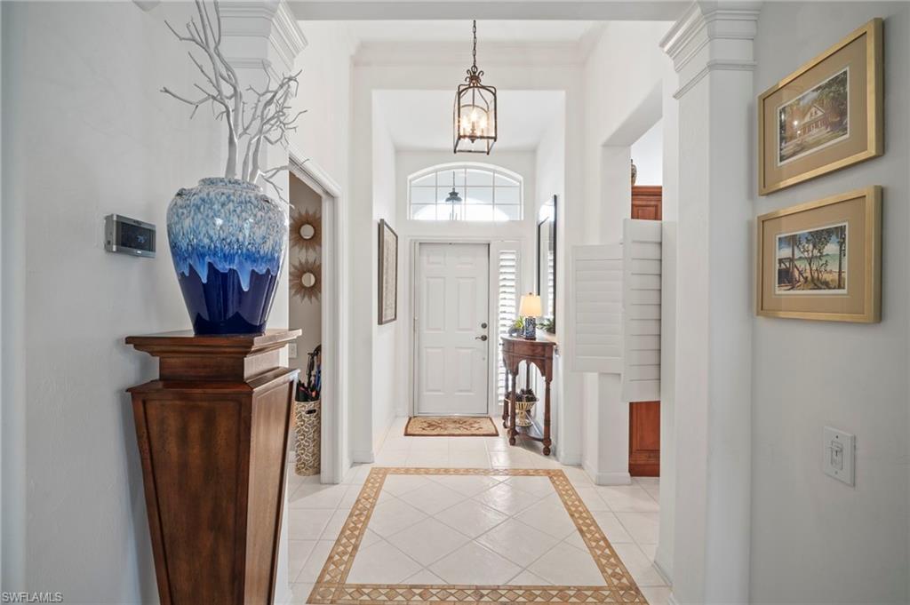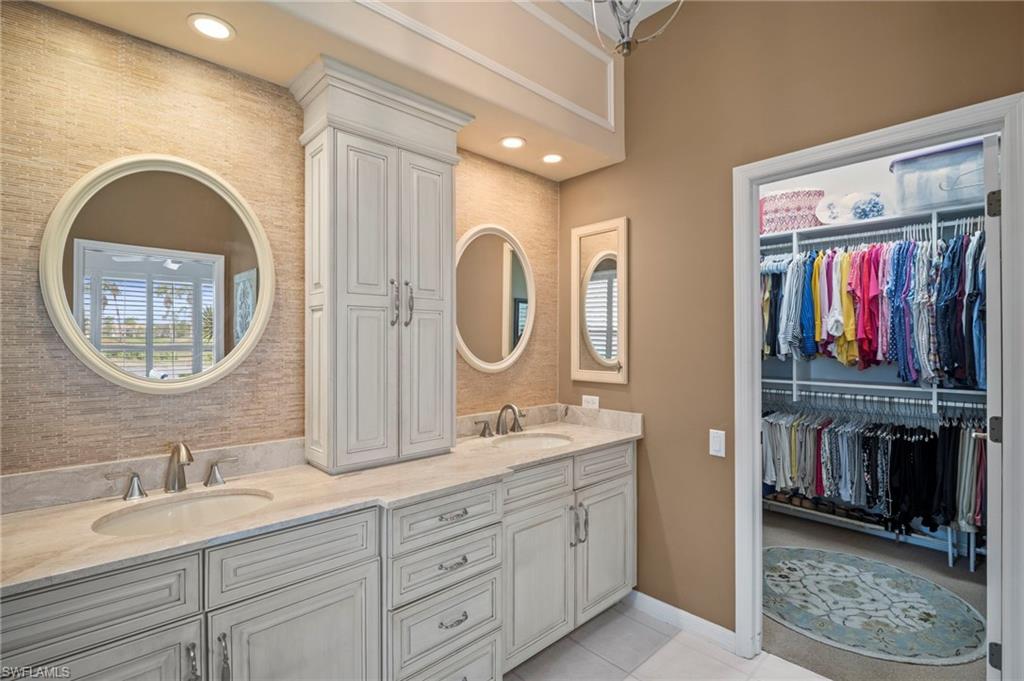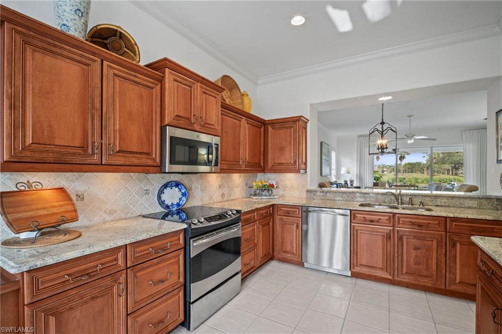 This is the sought after AUGUSTA floorplan. We call it VILLA BELVEDERE (“beautiful view”) with the spectacular and unequalled “Million Dollar “ view of the meandering lake waters and golf course . Here on your LANAI is where you will enjoy incredible sunrises over the 12th hole while sipping your morning coffee. The BREAKFAST NOOK in KITCHEN features a custom designed banquette with extra storage space as well. GUEST BATH is updated with custom cabinetry topped with Carrara marble and white Subway tiled Shower . Toilet fitted with LUXE Bidet MASTER BEDROOM features on either side of the bed custom built-in bookshelves and cabinets . CALIFORNIA CLOSET in MBR maximizes every inch of space . MASTER BATHROOM has custom cabinets topped with Travertine Marble (not granite) A wall of Travertine forms the counter to ceiling height backsplash . The bathroom contains a soaking tub and tiled glass enclosed shower . Toilette fitted with LUXE Bidet. OFFICE/DEN contains an endless amount of cabinet space and display bookshelves . A custom made file cabinet allows for a slide out printer shelf and slide out paper shredder . HOME TECH Service contract for appliances is transferable and includes Dishwasher, Garbage disposal, Refrigerator, Range, Washer & Dryer, Microwave, Hot Water Heater, AC. Extended warranty expires 2028. Full house sound system with ceiling speakers in Den, MBR, LR, and Lanai. FRONT DOOR is equipped with a Phantom Screen which allows for cross ventilation. Landscape Architect designed LANAI GARDEN features custom made Garden Benches and automatic irrigation system. The LANAI has a Motorized retractable Hurricane screen effective up to winds of 150 mph. Rain or shine, you can enjoy the lanai year 'round. These screen shutters retain about 75% of the air conditioning. Power outages are a thing of the past, thanks to the newly installed "$20,000 WHOLE HOUSE GENERAC GENERATOR