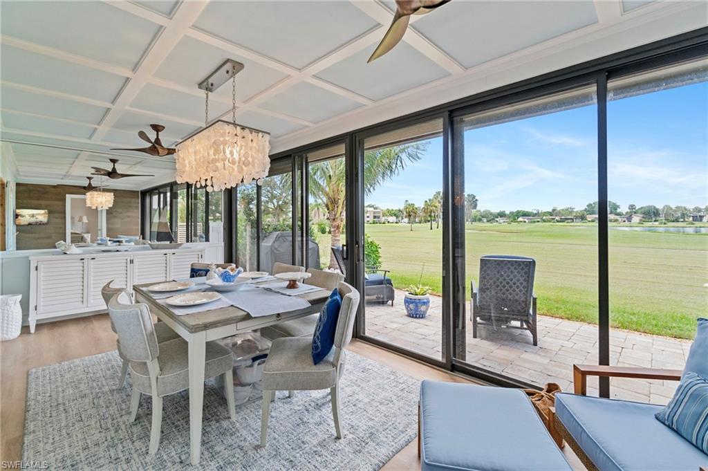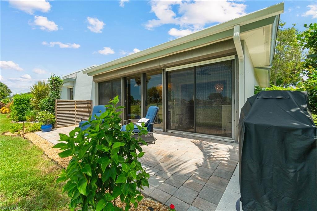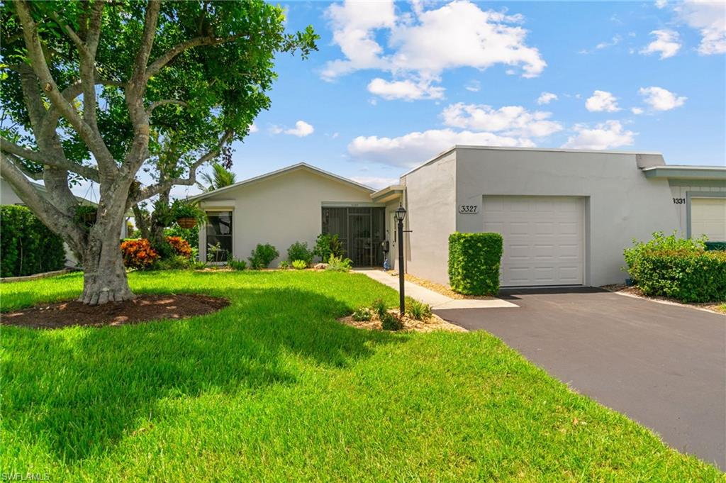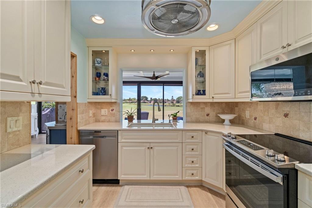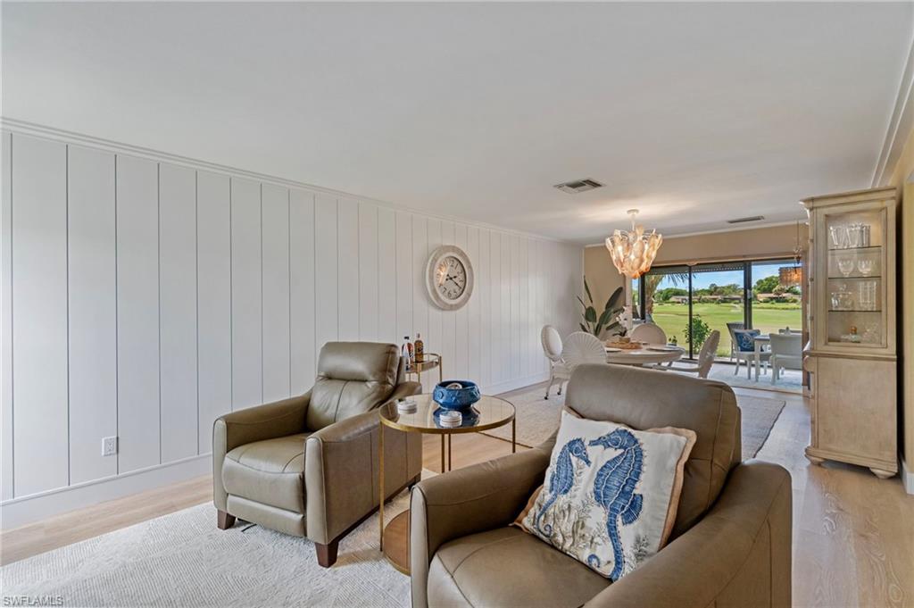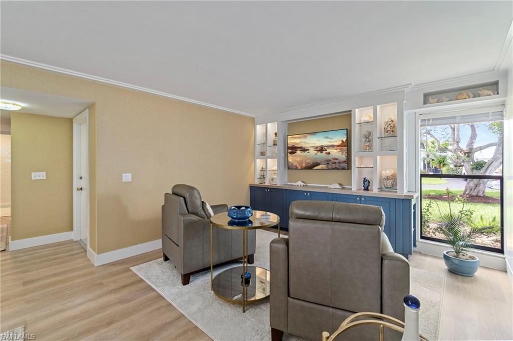 REMODELED VILLA – LAKE VIEWS – LOW FEES! Enjoy panoramic views of the lake and golf course from this beautifully decorated 2BR/2BA villa with Florida room, offering the feel of a single-family home. Completely remodeled, the bright kitchen features quartz countertops and updated appliances. This home showcases exquisite craftsmanship with custom woodwork throughout—from detailed ceiling and wall accents to thoughtfully designed built-in shelving and storage. The pantry includes custom shelving for maximum functionality, while the closets are finished with elegant built-ins that combine beauty and organization. The floors and bathrooms have been completely remodeled, with both bathrooms equipped with custom walk-in bathtubs, making this home perfect for accessibility needs. Additional upgrades include automatic hurricane shutters, a newer roof, new front garage door, and a beautiful paver patio. The Florida room provides extra square footage (not included under air), while lush tropical landscaping surrounds the property. With very low fees and a prime Naples location, this villa is a rare opportunity not to be missed.THIS PROPERTY QUALIFIES FOR A 1% LENDER INCENTIVE IF USING PREFERRED LENDER, FHA AND VA LOANS ACCEPTED. INQUIRE FOR MORE DETAILS**