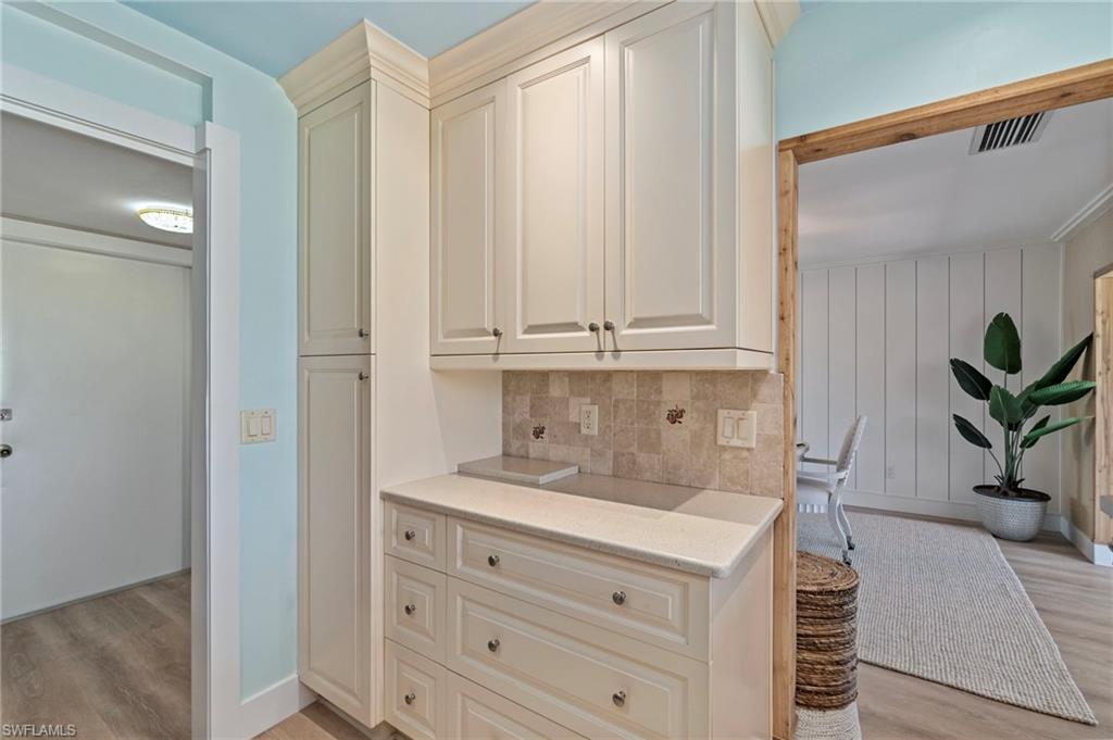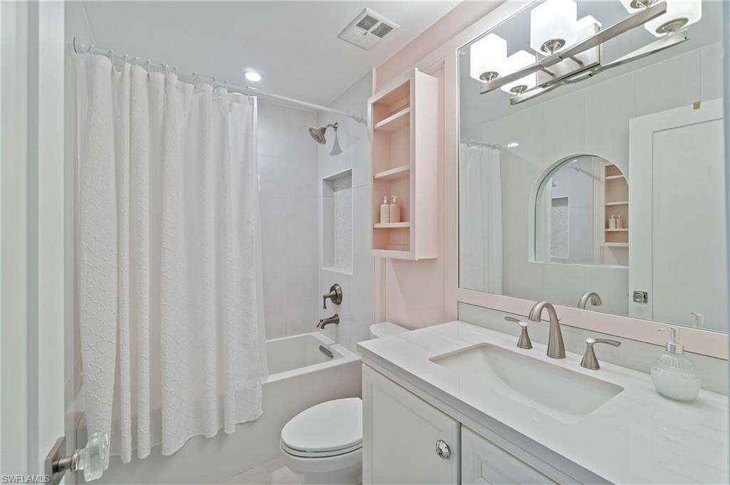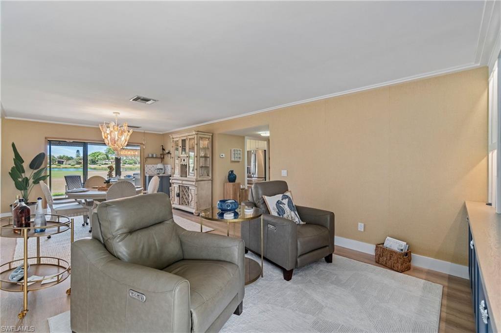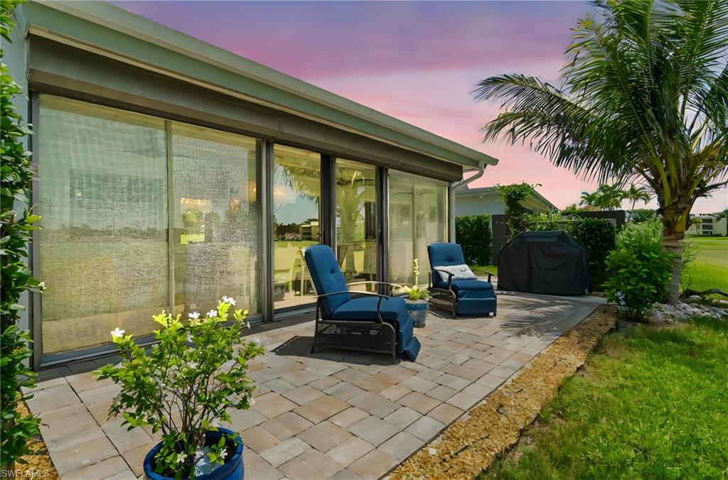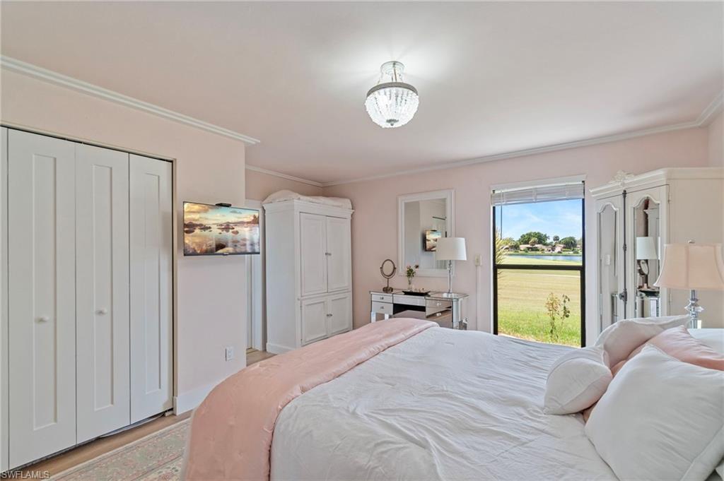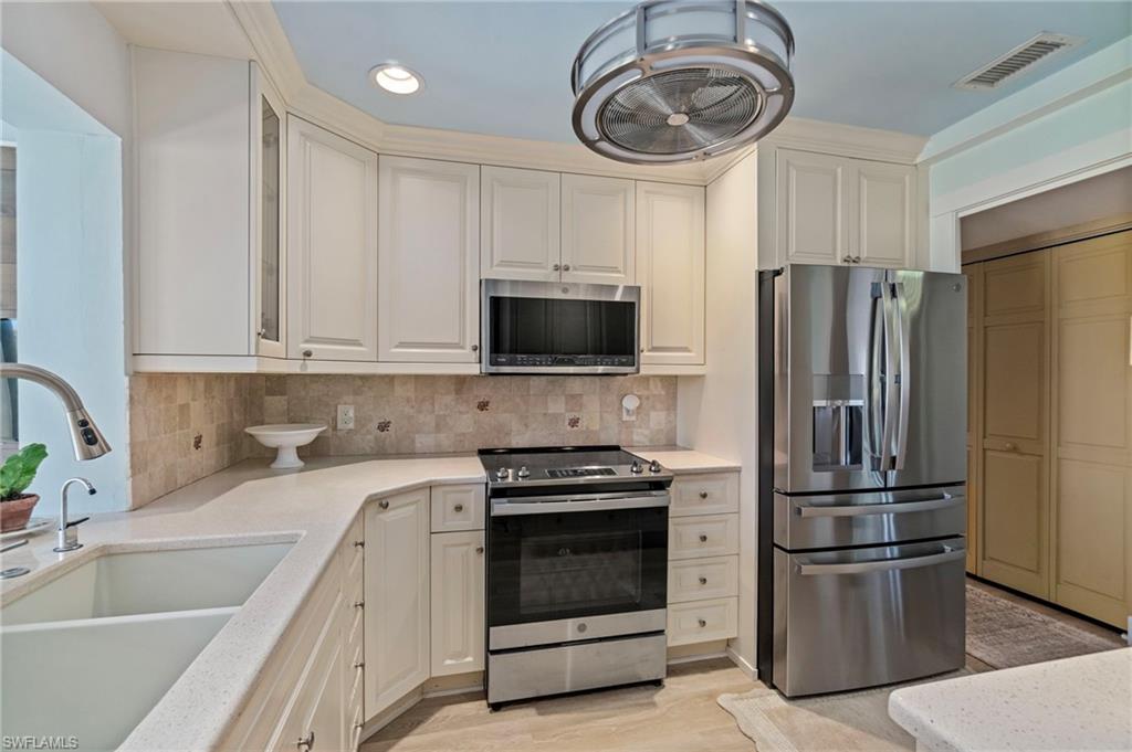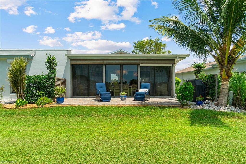 REMODELED VILLA – LAKE VIEWS – LOW FEES! Enjoy panoramic views of the lake and golf course from this beautifully decorated 2BR/2BA villa with Florida room, offering the feel of a single-family home. Completely remodeled, the bright kitchen features quartz countertops and updated appliances. This home showcases exquisite craftsmanship with custom woodwork throughout—from detailed ceiling and wall accents to thoughtfully designed built-in shelving and storage. The pantry includes custom shelving for maximum functionality, while the closets are finished with elegant built-ins that combine beauty and organization. The floors and bathrooms have been completely remodeled, with both bathrooms equipped with custom walk-in bathtubs, making this home perfect for accessibility needs. Additional upgrades include automatic hurricane shutters, a newer roof, new front garage door, and a beautiful paver patio. The Florida room provides extra square footage (not included under air), while lush tropical landscaping surrounds the property. With very low fees and a prime Naples location, this villa is a rare opportunity not to be missed.THIS PROPERTY QUALIFIES FOR A 1% LENDER INCENTIVE IF USING PREFERRED LENDER, FHA AND VA LOANS ACCEPTED. INQUIRE FOR MORE DETAILS**
