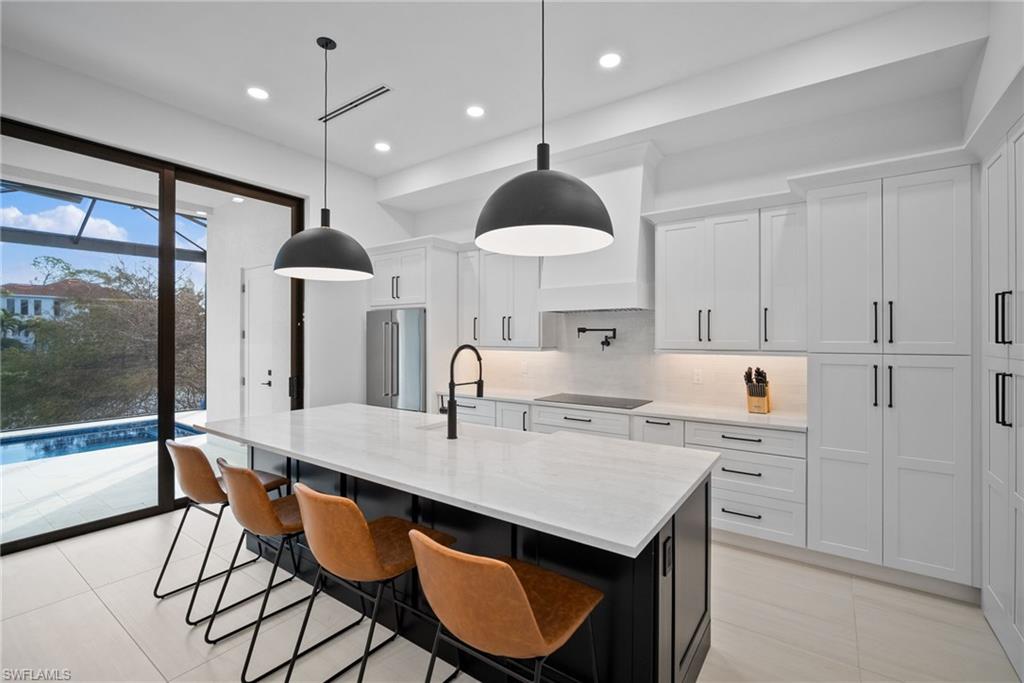 Ultra luxury NEWLY custom built, spacious, open floor plan and designer decorated exquisite home in a heart of fabulous Bonita Springs, Florida. 5 bedroom, 5 full bathrooms, 2 half baths, two laundry rooms (one upstairs and one downstairs) on the interior of the home. While exterior, outdoor living is a fantastic entertainment, relaxation area, which offers fully equipped outdoors kitchen, with screened in lanai/patio and the balcony upstairs, heated pool and jacuzzi. Impact windows and doors through out this one of a kind home, that faces beautiful lake with a zen creation fountain. Property is centrally located in a boutique, private, but yet very exclusive Serrano community which has a Gulf Of Mexico access through Imperial River. Therefore if you are a kayak, paddle board lover or fan of fishing, this is a paradise and a perfect set up for you. This newly built home is situated only 15 minutes away from the top ranked beaches in the country, fine dinning, luxury shopping, as well as only 20 mins away from SouthWest Florida International Airport.