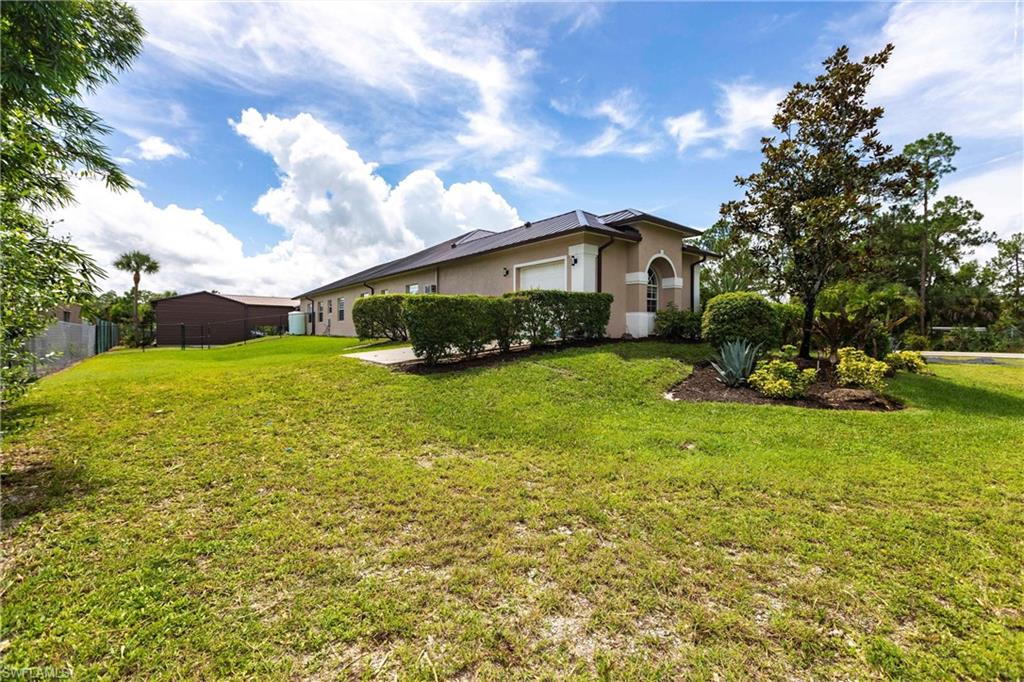 A home and property that can not be duplicated for this price!! A beautifully renovated 3,600 SF home featuring; 5 large bedrooms plus home office, 4 bathrooms, dining room, huge kitchen with walk-in pantry, family room, media room with home theater equipment, newer salt water pool, extra large covered lanai, 2021 metal roof, whole house RO water system, 10 - 12 foot high ceilings with crown molding, Travertine tile throughout, Hurricane impact doors and sliders, 3-car garage with new epoxy floor, and so much more! This special 2.81 acre property has endless possibilities for a large family - related living - entertaining - small business owner who needs parking and storage for equipment - RV and boat storage - cleared and fenced land for adding a guest house or horses. Move-in ready! Easy access off Everglades Blvd and only 2 streets north of Golden Gate Blvd.