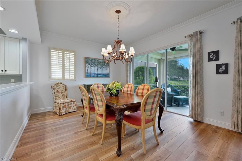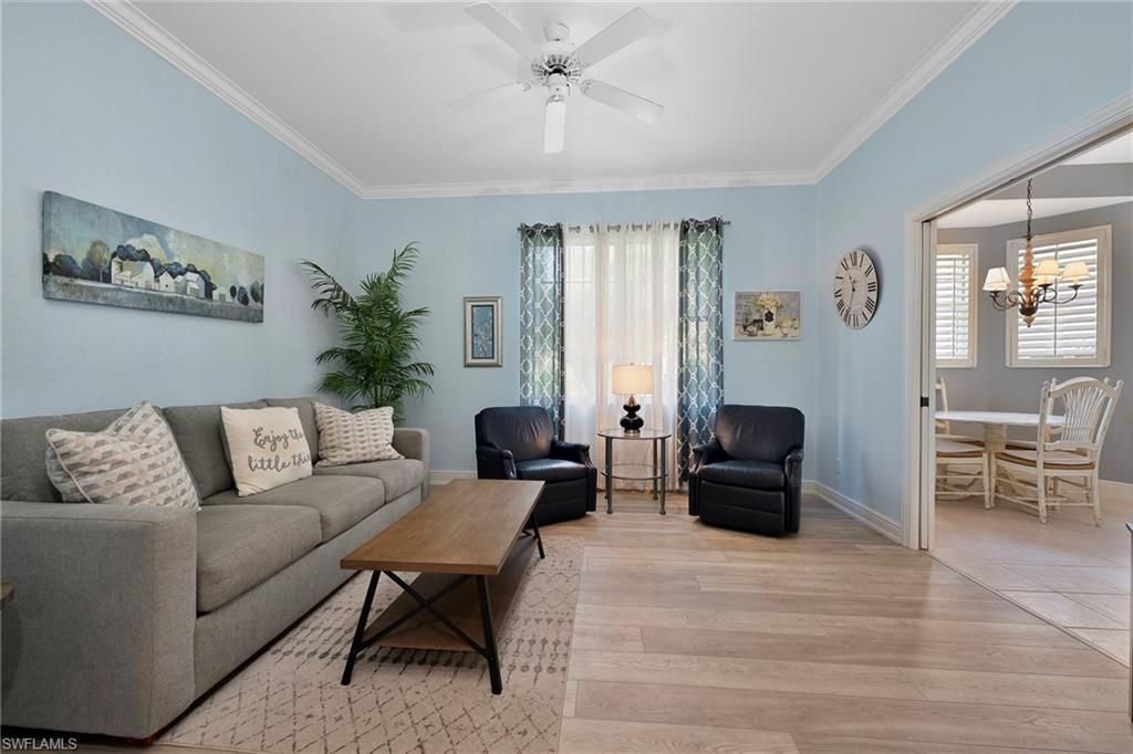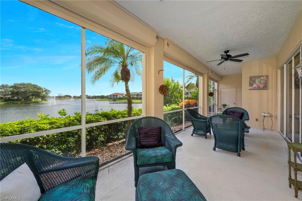 Vintage Reserve in Vineyards – Immaculate first-floor coach home featuring two bedrooms plus a den, two full baths, and a two-car garage. Situated in a prime cul-de-sac location, this desirable end unit offers panoramic lake views and an oversized lanai—perfect for relaxing or entertaining. Notable upgrades include crown moldings, wainscoting, and plantation shutters, adding elegance and charm throughout. The property also features a new roof (2020) and electric hurricane shutters for enhanced peace of mind. Vintage Reserve is a gated community with lush landscaping and its own clubhouse offering a library, pool, and spa, along with ample guest parking. Conveniently located near Vineyards Country Club and Vineyards Community Park, the neighborhood provides easy access to beaches, shopping, medical facilities, and I-75. Membership at the Vineyards Country Club is optional and offers a wealth of amenities, including 36 holes of championship golf, 12 Har-Tru tennis courts, pickleball, bocce, a resort-style pool and spa, an outdoor bar, and a new wellness and spa facility featuring a fitness center, café, halotherapy salt room, massage and salon services, and a saltwater lap pool.