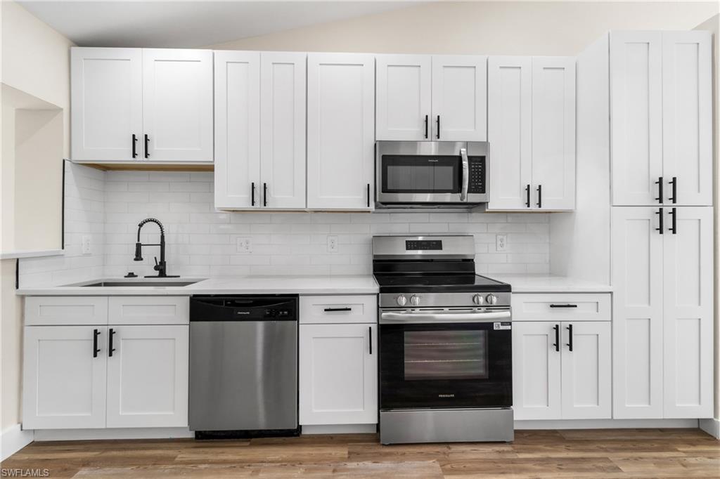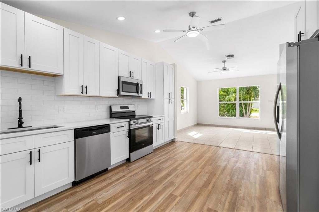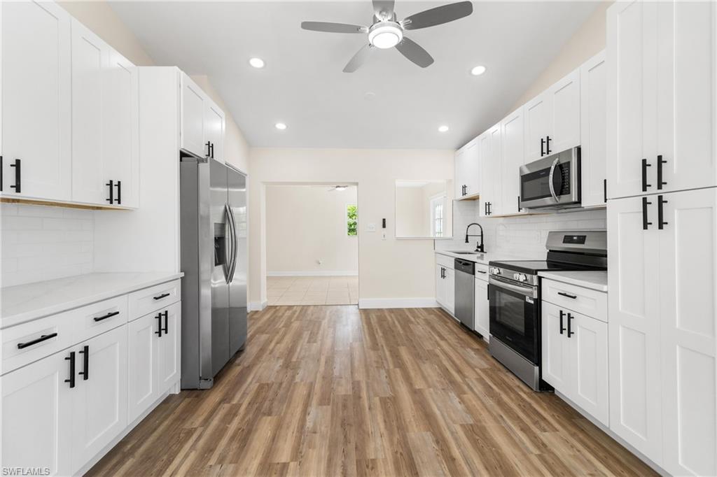 Don’t miss this rare opportunity to own a fully remodeled, move-in ready home in Naples for under $435,000. Located in a quiet, residential neighborhood just minutes from downtown, beaches, shopping, and dining, this single-family home offers exceptional value with no HOA fees or restrictions. Built in 1997 and recently updated, this 3-bedroom, 2-bathroom home features 1,451 square feet of bright, open living space with a fresh, modern feel throughout. The open-concept floor plan creates a seamless flow from the living and dining areas into a beautifully renovated kitchen, complete with quartz countertops, new cabinetry, and stainless steel appliances. The primary bedroom offers a private retreat with its own en-suite bathroom and ample closet space. The split-bedroom layout provides privacy and flexibility, making it perfect for families, guests, or a home office. Both bathrooms have been updated with new vanities and fixtures, reflecting the clean, stylish look found throughout the home. Outside, enjoy a large fenced-in backyard—perfect for kids, pets, or a future garden. The oversized driveway offers plenty of parking for multiple vehicles, boats, or recreational gear. With no HOA, you have the freedom to make this property truly your own. Whether you’re a first-time buyer, downsizing, or searching for a primary residence in sunny Southwest Florida, this property checks all the boxes. Affordable, fully updated, and ideally located—5309 Warren Street is ready to welcome you home. Schedule your private showing today and take advantage of this incredible opportunity to own in Naples for under $435,000.