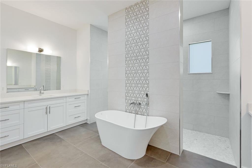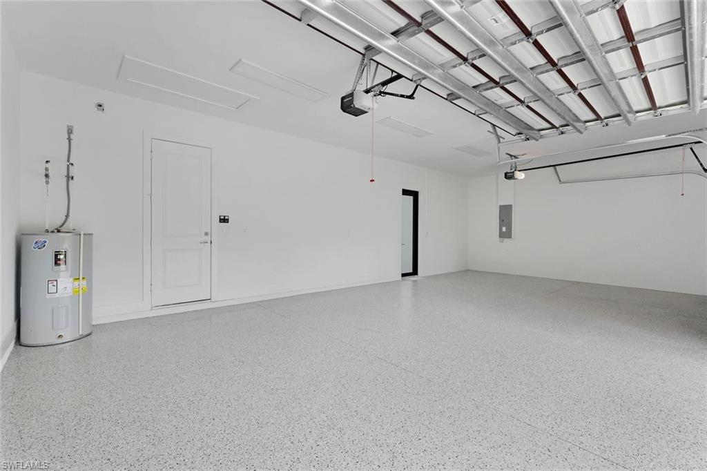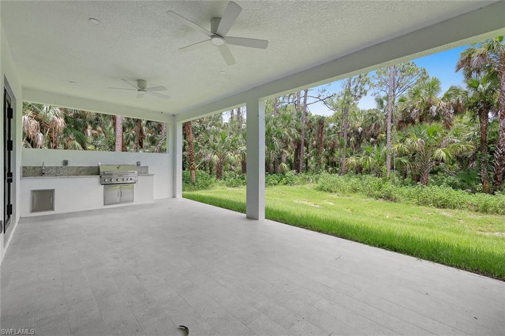A stunning brick paver driveway welcomes you to this elegant home, complete with a spacious 3-car garage featuring a sleek epoxy finish. Step through the double impact glass doors into soaring high ceilings and a bright, open layout. The gourmet kitchen boasts two-tier cabinetry, stainless steel appliances with hood, quartz countertops, a large island, and a smart refrigerator with built-in screen. The luxurious master suite offers his-and-hers closets, dual vanities, a soaking tub, and an oversized walk-in shower with floor-to-ceiling tile. Entertain with ease on the expansive covered lanai, featuring a granite outdoor kitchen with built-in grill and still plenty of room for a pool! Situated on 100% uplands in an X flood zone, this property offers peace of mind.