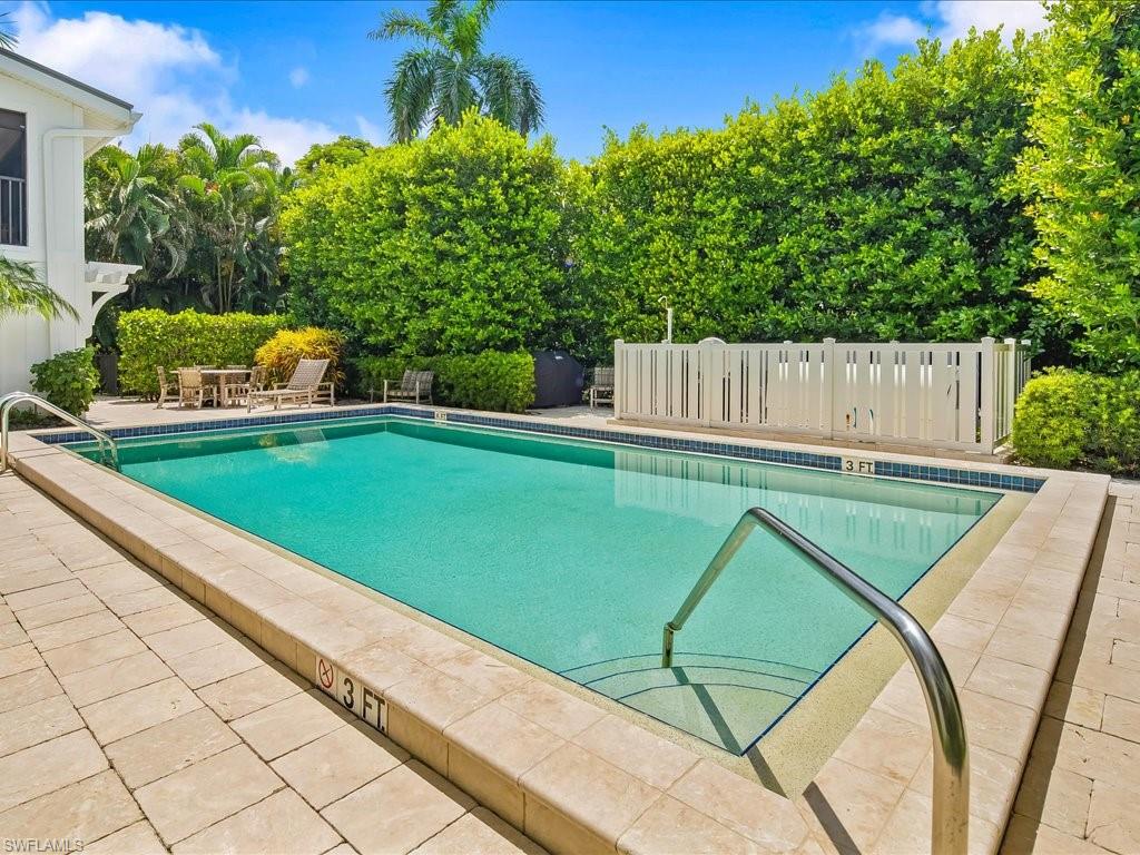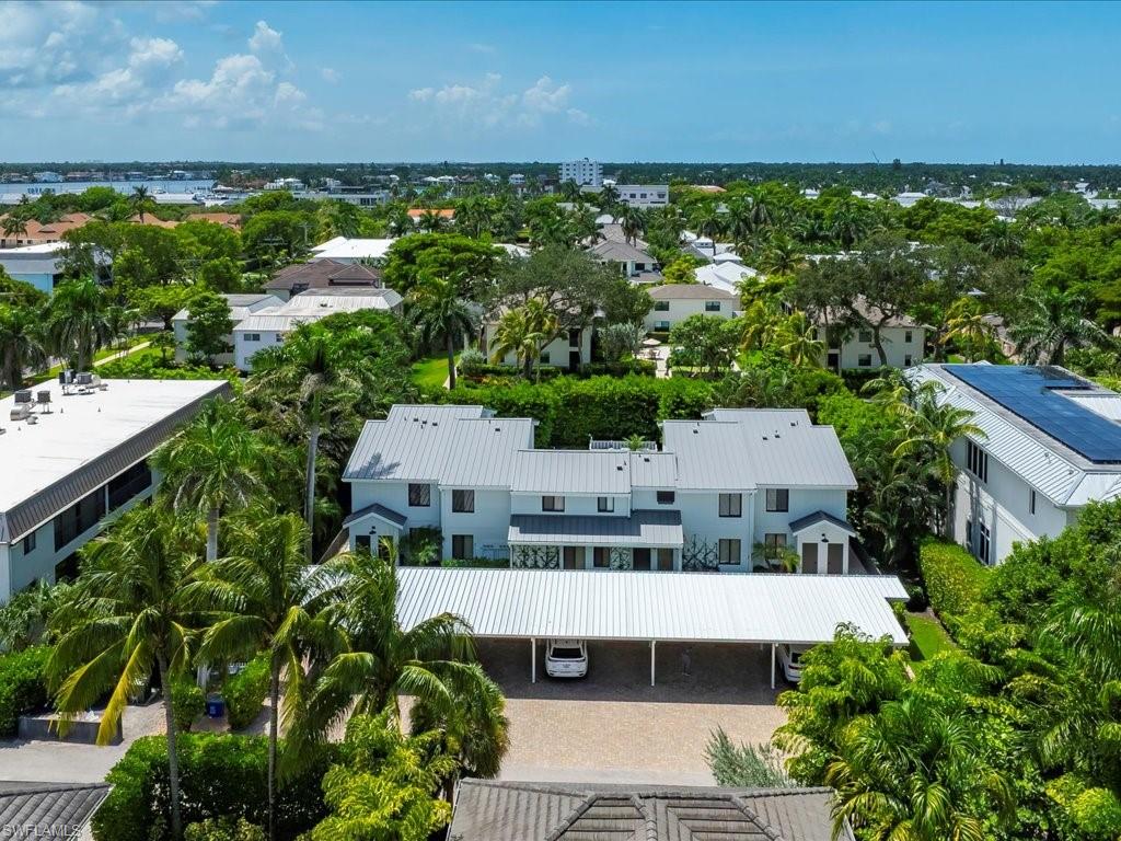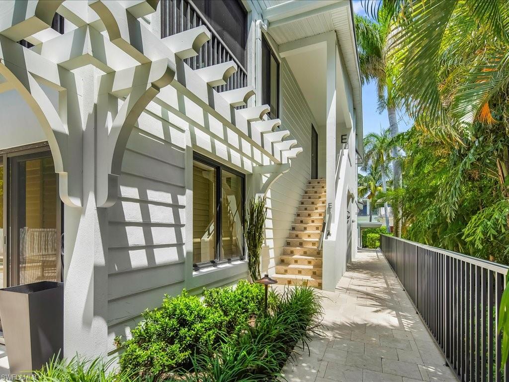 Tropical Charm in the Heart of Olde Naples: Welcome to Unit E at Olde Towne Place—a rarely available gem in a charming five-unit boutique complex just steps from Naples' most iconic attractions. Nestled high and dry in a lush, tropical setting, this 2-bedroom, 2-bath residence offers 1,156 square feet of light-filled, second-level living with vaulted ceilings, a spacious lanai overlooking the pool, and impact-rated windows and doors throughout. Enjoy peace of mind with recent updates to the entire complex, including new Hardie-Board and stucco exteriors, refreshed carports, all-block construction, and vibrant landscaping. Inside, the space is freshly painted and move-in ready. Park easily with two covered spaces and set out on foot to explore everything Olde Naples has to offer—5th Avenue South, 3rd Street, Cambier Park, the beach, City Dock, Tin City, and world-class dining and shopping are all just blocks away. Pet-friendly, private, and perfectly positioned, this is the Florida lifestyle at its finest.