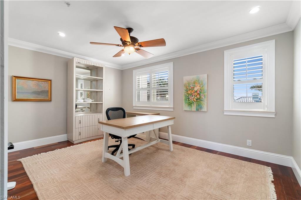 Beautifully renovated estate with breathtaking wide bay views in North Naples’ premier community of “Barefoot Beach”. A true boater and beach lover’s paradise, this home features deeded beach access only a 2-minute walk away and direct Gulf-access from your private dock with a brand-new boat lift. Every detail of this residence has been thoughtfully upgraded, including a new roof, elegant travertine and wood flooring, hurricane-impact windows and doors, and soaring coffered ceilings. Spanning 5,000 sq ft under air, this home offers 4 spacious bedrooms + a den, 4.5 bathrooms, a separate guest villa, dual laundry rooms, a private elevator and a ground-floor flex space. The outdoor space is truly an entertainer’s dream, offering sweeping bay views, an elevated pool and spa, an outdoor shower, and ample lounging areas—both covered and open. The oversized chef’s kitchen is a true masterpiece, featuring sleek quartz countertops, beautiful mahogany wood cabinetry, an induction cooktop, a breakfast bar, and an inviting eat-in area. The luxurious primary suite is a serene retreat, offering direct access to a private balcony overlooking the water—ideal for enjoying your morning coffee. A spacious office/sitting room, a fireplace, a wet bar with a built-in fridge, and a spa-like bathroom with dual vanities, a separate jetted tub, and a large frameless glass shower complete this tranquil sanctuary. The separate guest suite is perfect for hosting, offering 2 bedrooms, 2 bathrooms, and its own laundry facilities for added privacy. This is the epitome of coastal living. Optional membership to the exclusive "Club at Barefoot" provides access to tennis, two restaurants, beachside food and beverage service, and more. Conveniently located near fine dining, RSW Airport, Mercato, and Waterside Shops, and just 15 miles from the renowned Fifth Avenue in Naples, this home is a true gem in the heart of Barefoot Beach.