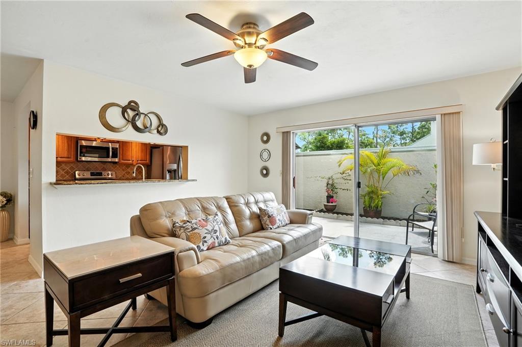 Discover the perfect blend of comfort, charm, and location in this furnished 2-bedroom, 2-bath condo with a VERSATILE DEN—ideally situated in the Kings Lake Community - just a few minute drive from Naples’ 5th Avenue, pristine beaches, and top-rated dining. Enjoy the ease of FIRST-FLOOR LIVING with a PRIVATE ENTRANCE, surrounded by lush vegetation for a serene, tropical feel. The unique and private - oversized OUTDOOR-PATIO instantly gives the home a single-family feel. Once inside, you will be amazed with the BRIGHT OPEN-CONCEPT main living and dining area , where numerous windows fill the space with abundant natural light. The kitchen features rich wood cabinetry, updated granite countertops, stainless steel appliances, and a trayed ceiling with recessed lighting. Both bedrooms feature updated ensuite baths, while the den serves perfectly as an ideal home office or cozy sitting area with views of the courtyard. Additional upgrades include raised panel doors, modern lighting, ceiling fans, and stylish tile flooring in the main living areas which enhance the home’s fresh, inviting feel. The OUTDOOR-PATIO offers generous space for outdoor dining, entertaining, or simply relaxing in your own private retreat. Three EXTERIOR STORAGE CLOSETS provide ample space for all your extras. Set in the charming "Camelot At Kings Lake Community" with a pool, spa, and dry sauna. The biggest standout feature is the scenic LAKESIDE SETTING—with a wide path surrounding it - perfect for walking, jogging, biking, or unwinding on one of the many benches while birdwatching. COVERED PARKING, plentiful guest spaces, and even a CAR WASH AREA add to the convenience of your new home!! BONUS: Community TENNIS/PICKLEBALL Courts - Palm trees, coastal breezes, and courtside fun awaits....