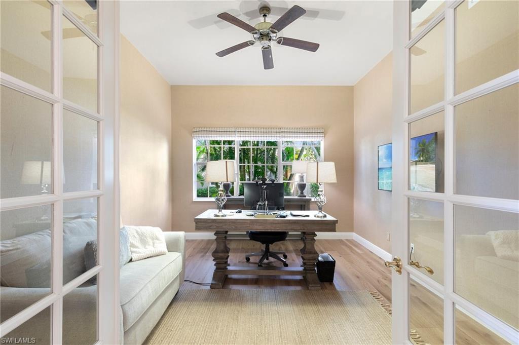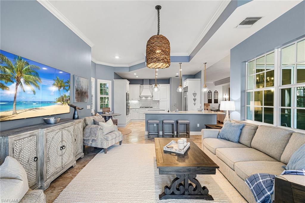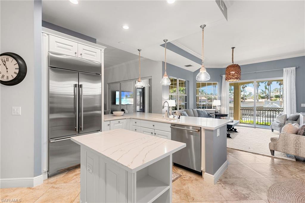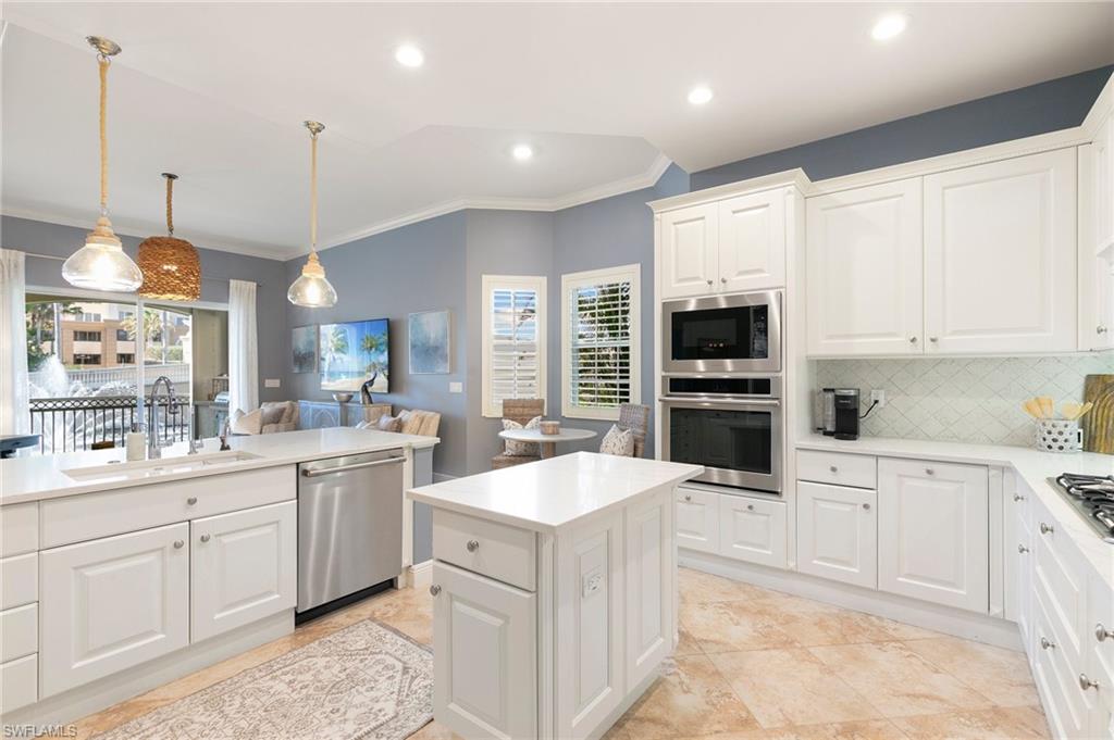 Live the Pelican Bay lifestyle in this exceptional 2,900 sq. ft. Gulf Bay–built coach home that truly lives like a single-family residence. Located in an exclusive, gated enclave of only 16 homes, this rare offering combines superior craftsmanship with unmatched privacy, all within one of Naples’ most prestigious communities. Just a short stroll to the Pelican Bay beach tram and steps from the community pool, you’ll have convenient access to private beachfront dining, white-sand shores, and Gulf waters. Inside, the remodeled gourmet kitchen is a showstopper, featuring a gas stove, stainless steel appliances, off-white cabinetry, and striking quartz countertops—perfectly positioned in an open-concept design that flows into the dining, living, and outdoor spaces. Soaring 11-foot ceilings and expansive windows frame water views from the main living areas and the luxurious primary suite. The primary retreat offers his-and-her walk-in closets, a spa-inspired bath with dual sinks, a soaking tub, and a walk-in shower. Two additional en-suite bedrooms ensure guest privacy, while the den/office—with French doors and abundant natural light—offers versatility for work or relaxation. Step onto the screened lanai to enjoy tranquil water and fountain views, complete with a gas fireplace, built-in grill, electric shutters, and generous seating for al fresco dining or quiet evenings under the stars. Recent updates, including new bedroom wood floors and a patio grill, enhance the home’s move-in-ready appeal. As a Pelican Bay resident, you’ll enjoy world-class amenities—private beaches, beachfront restaurants, tennis and pickleball, fitness center, bike paths, and more—all while being just minutes to Waterside Shops, Mercato, and downtown Naples. This is more than a home—it’s your gateway to luxury coastal living.